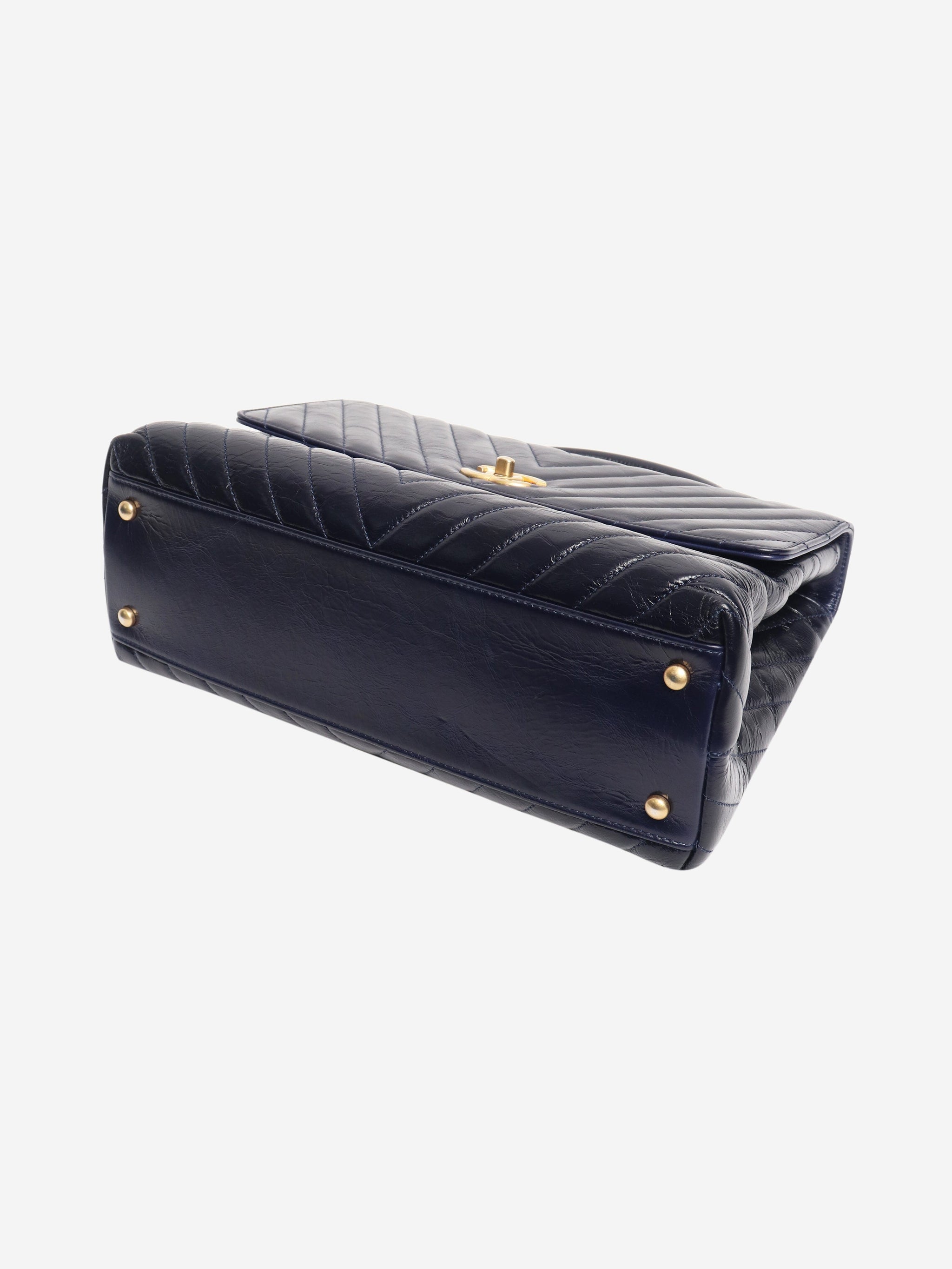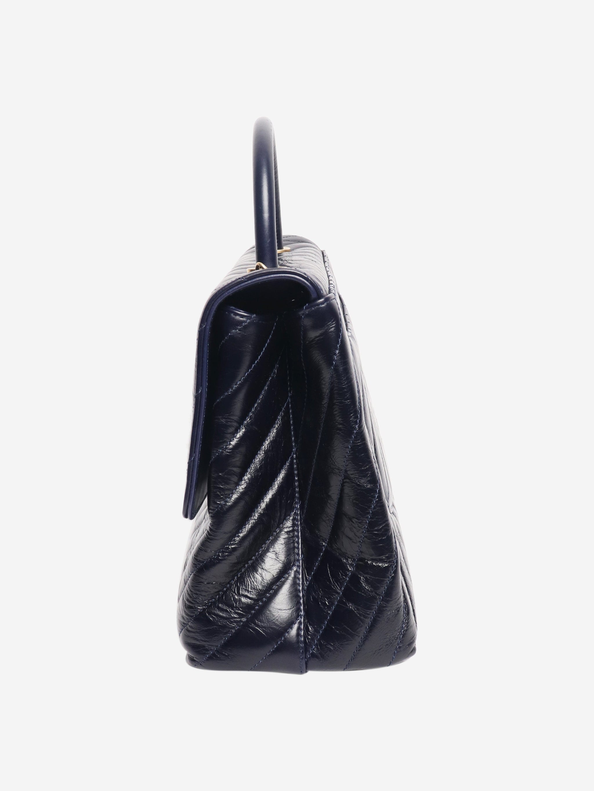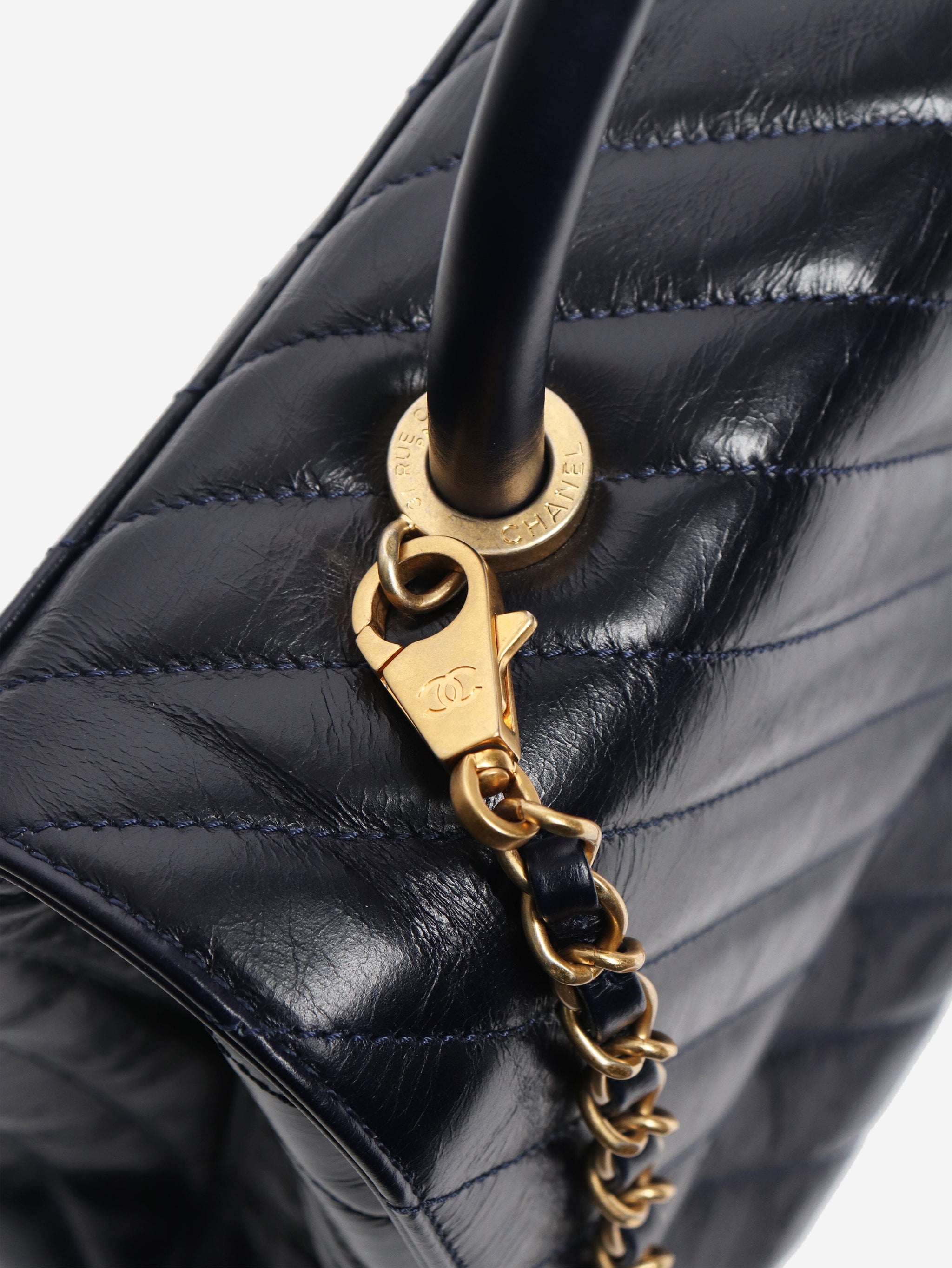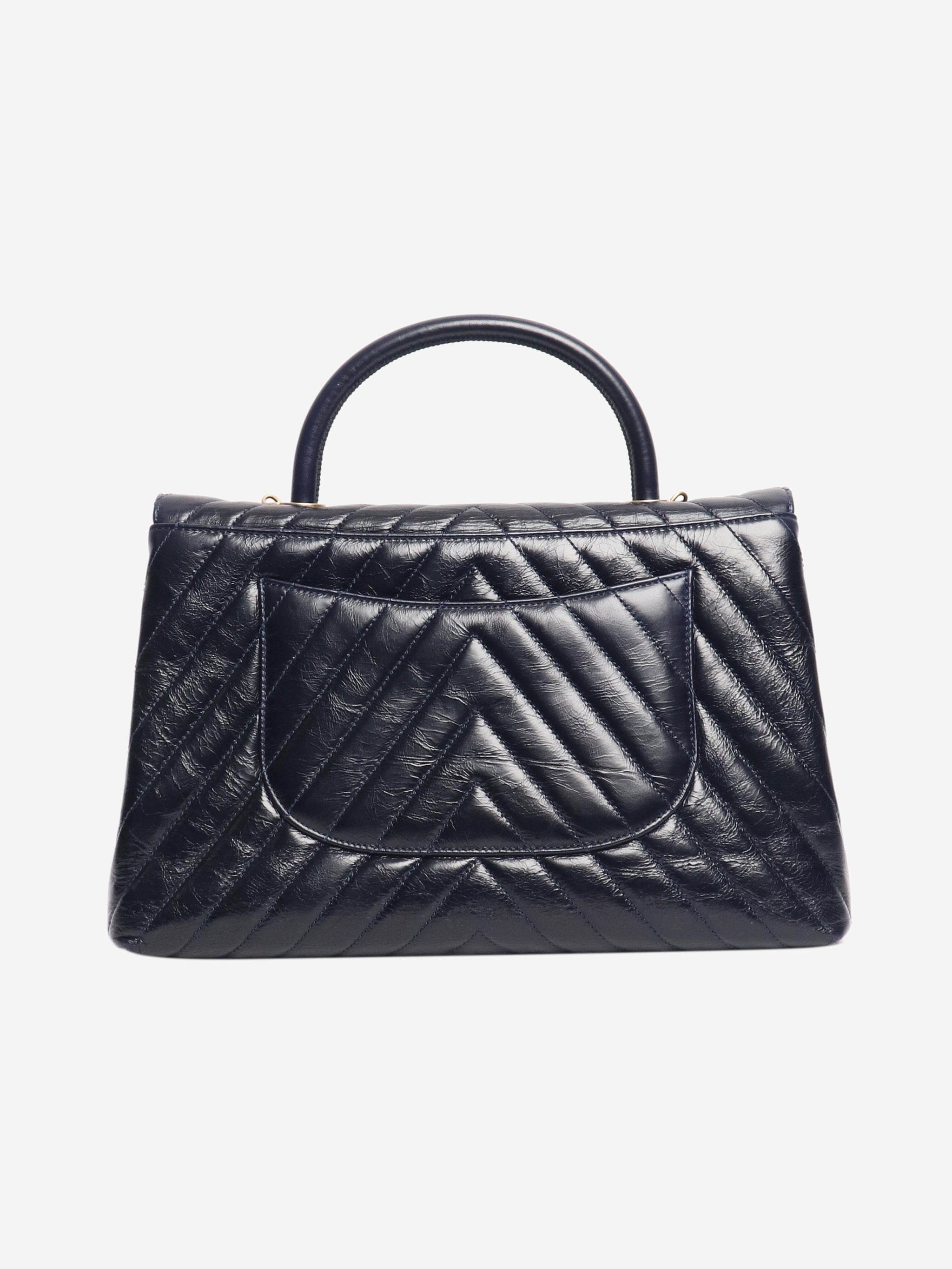 Dark blue 2017 lambskin chevron-quilted Coco Handle bag
