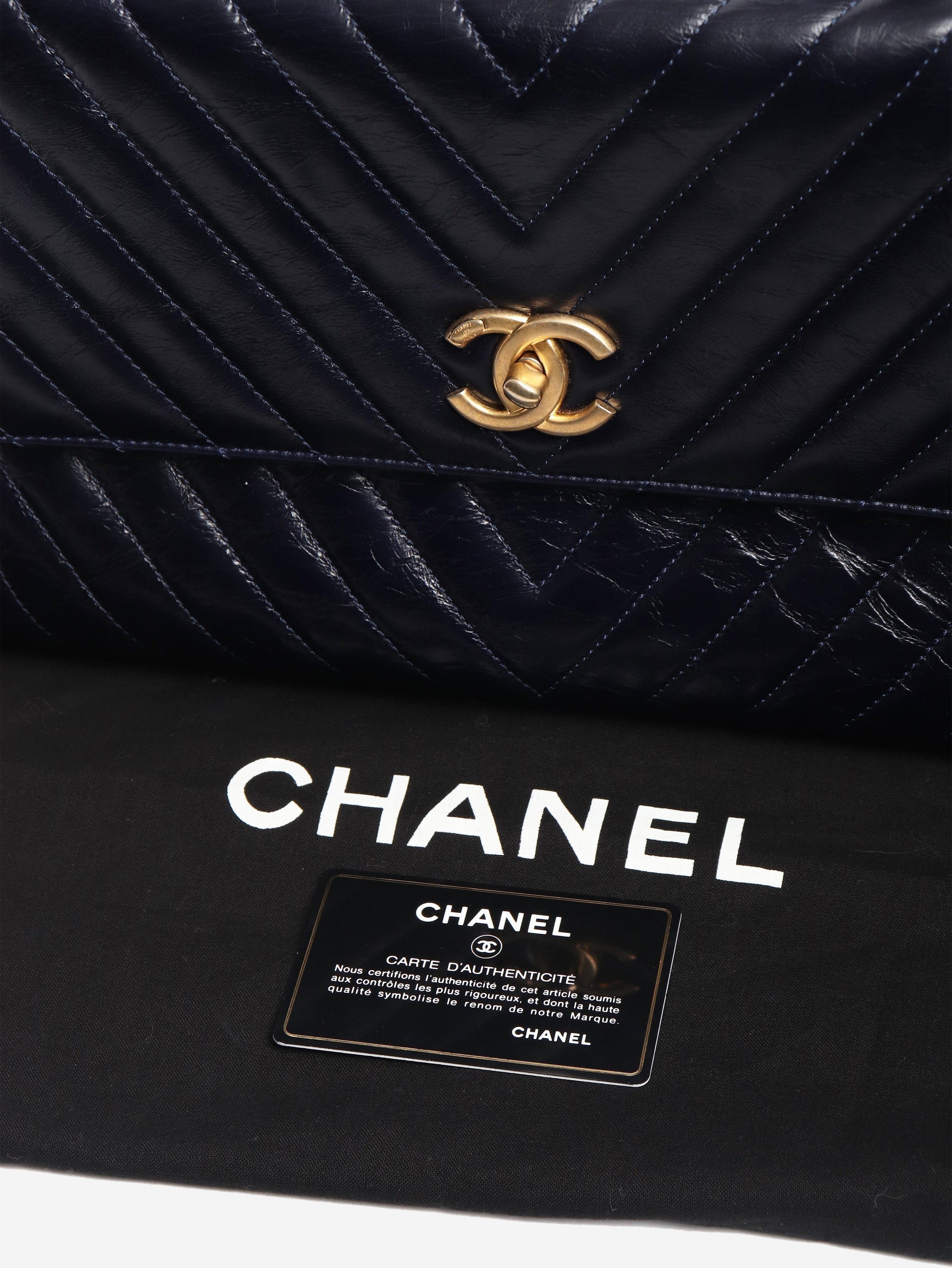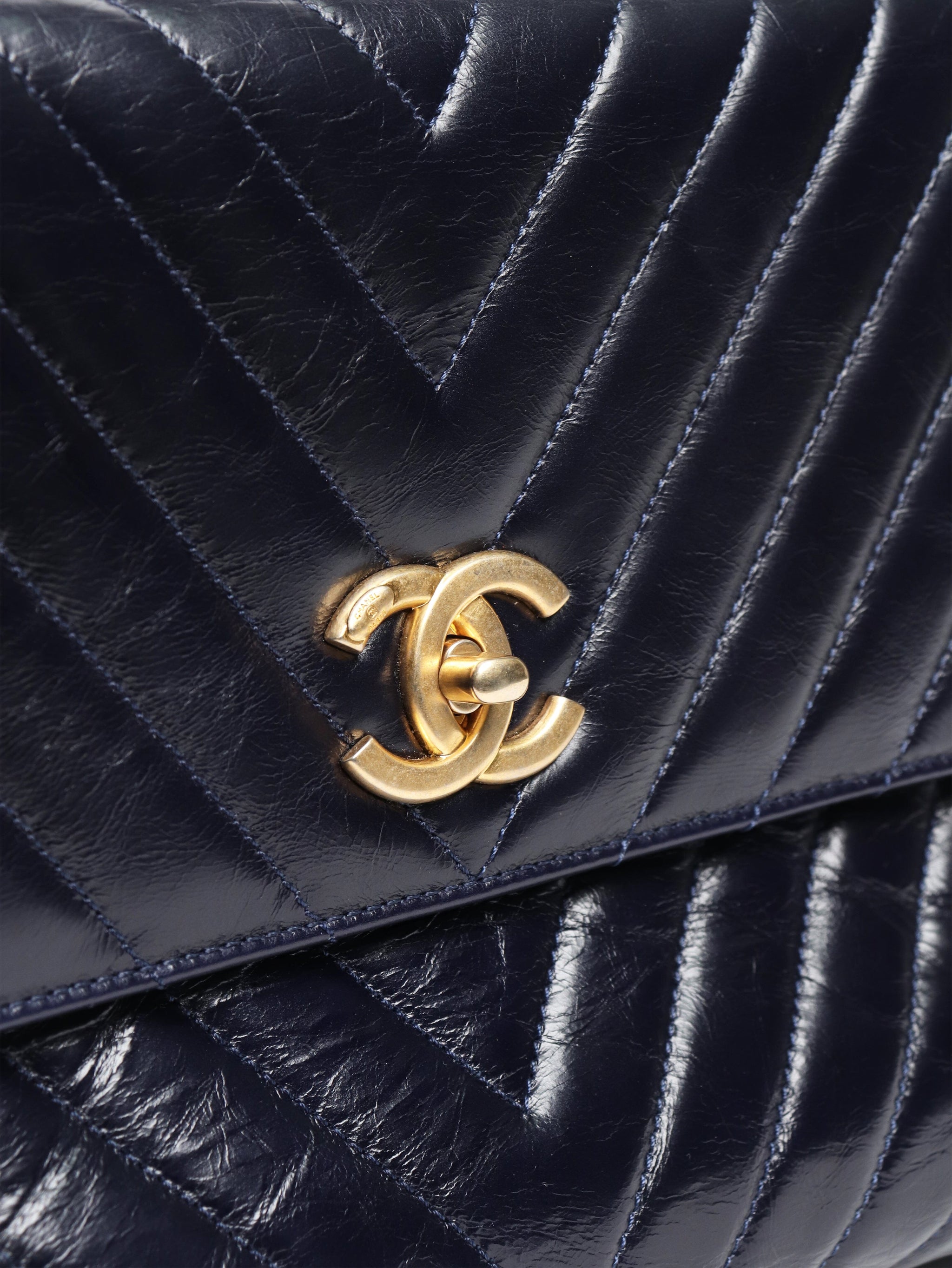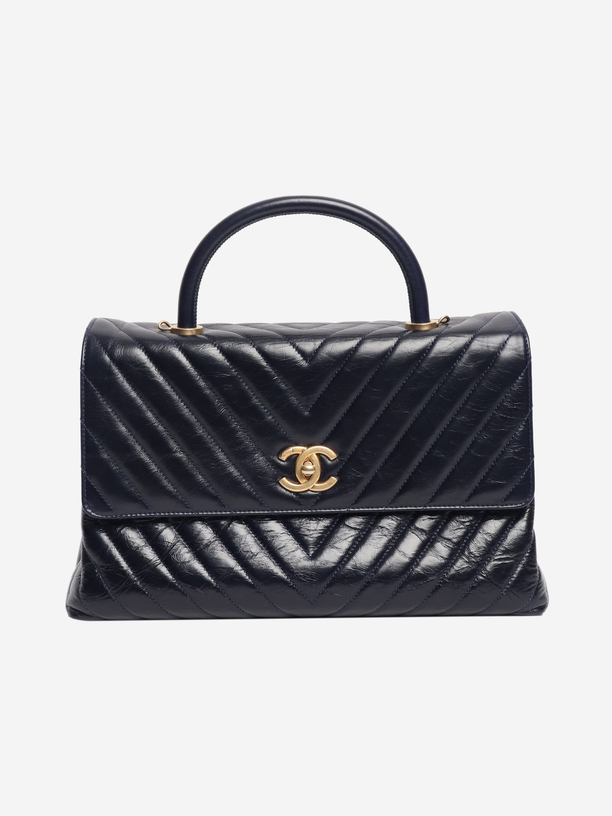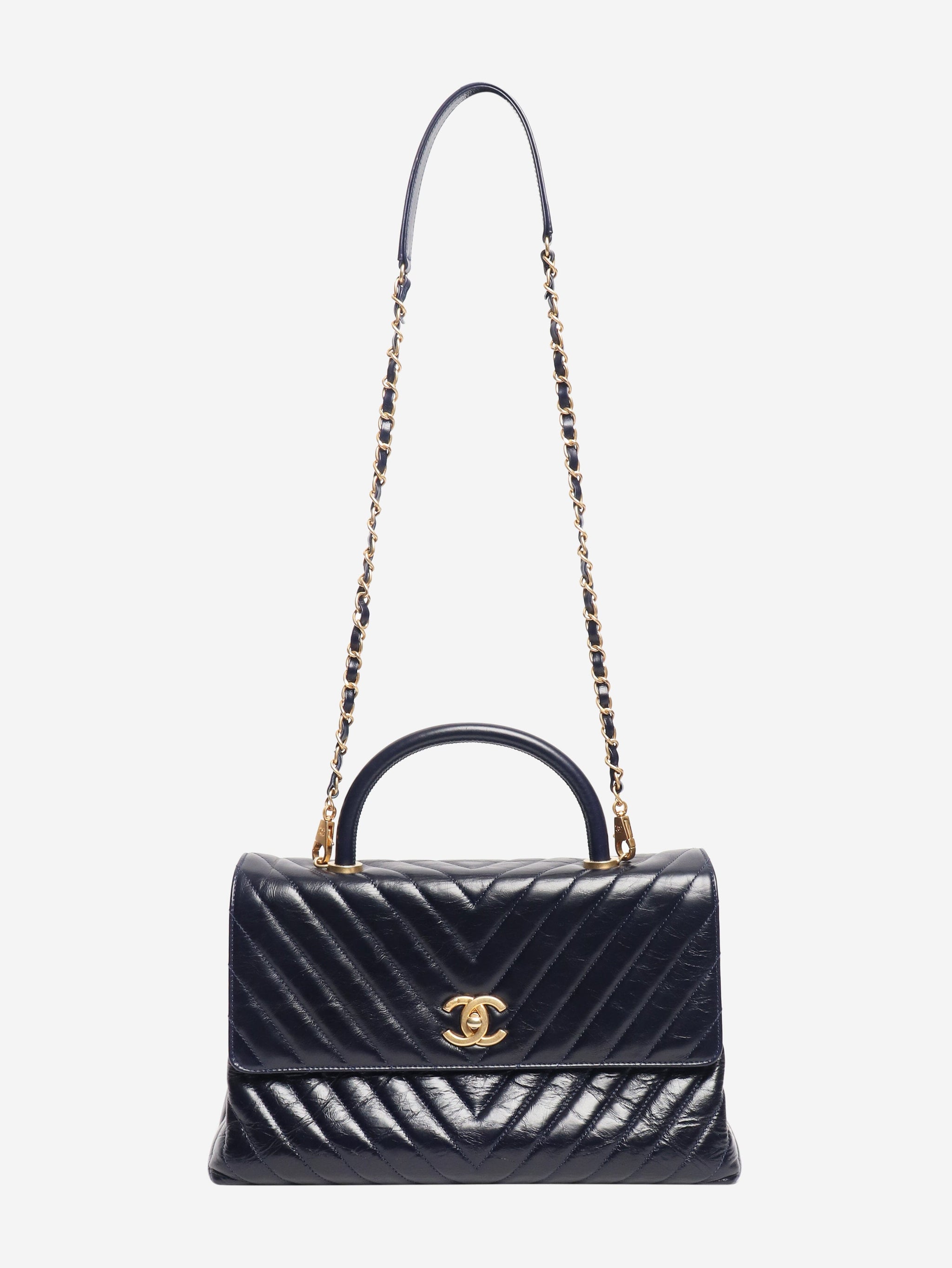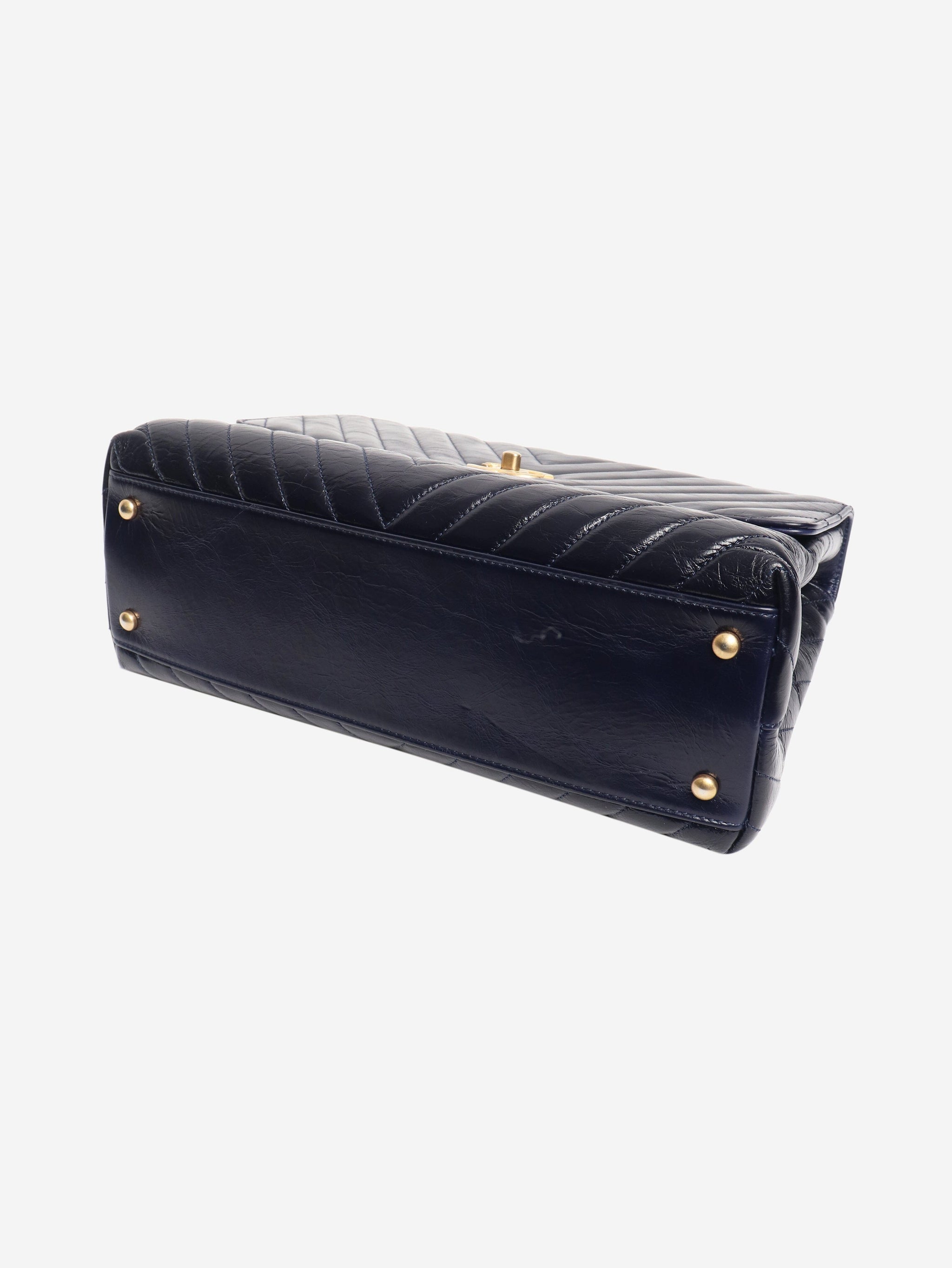 Dark blue 2017 lambskin chevron-quilted Coco Handle bag