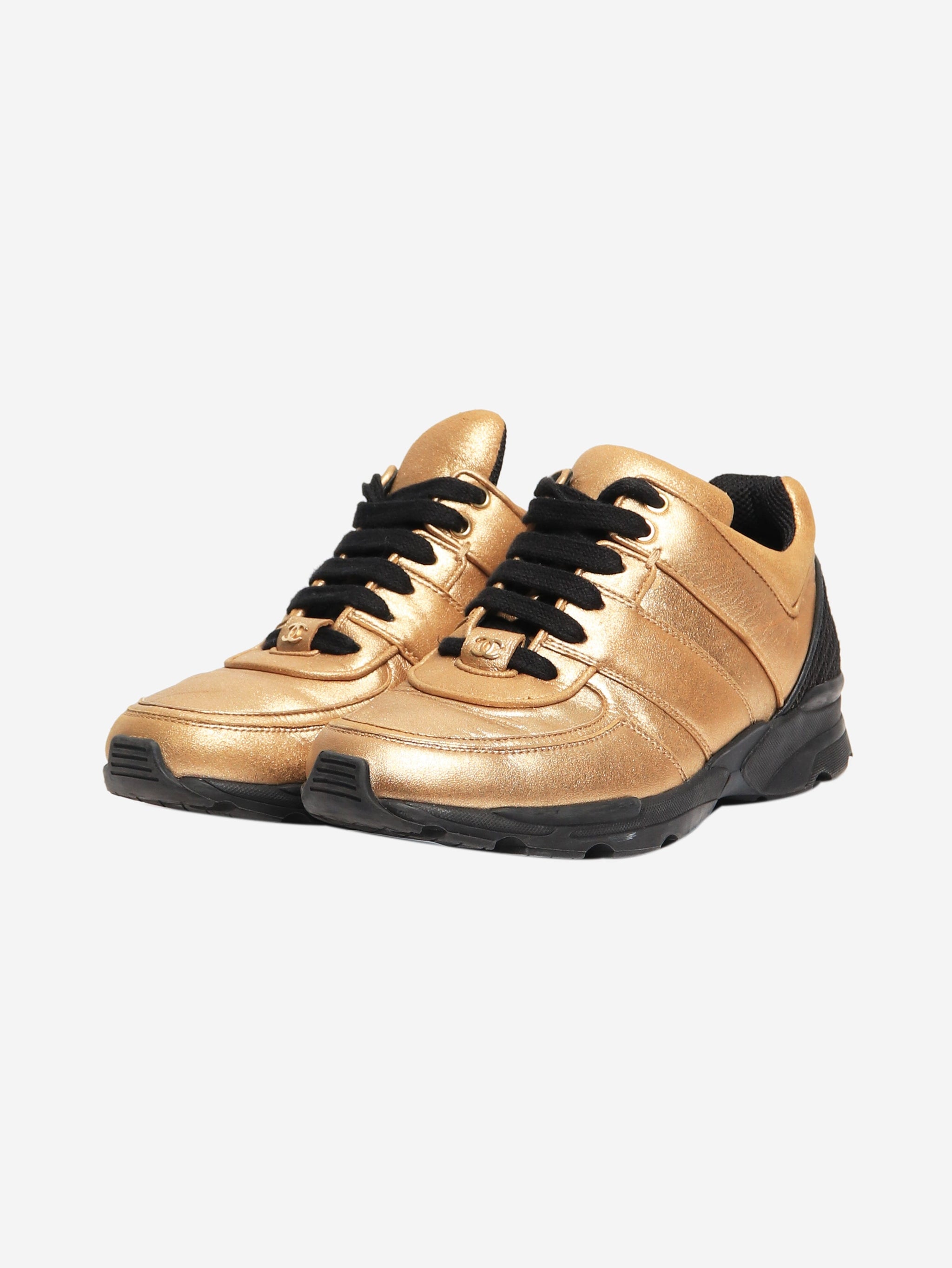 Gold metallic leather CC sneakers - size EU 38