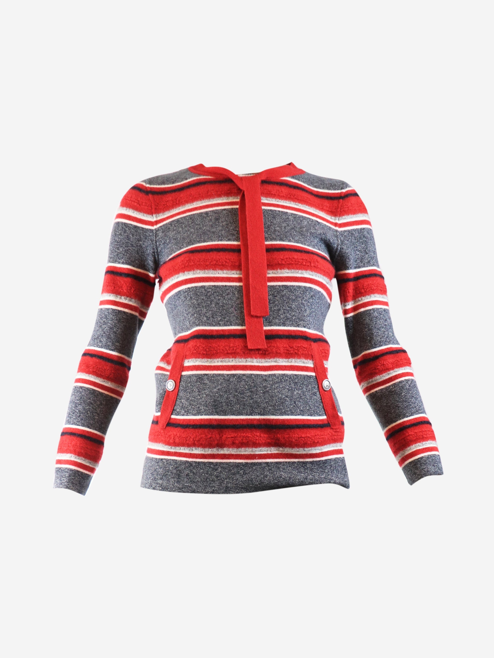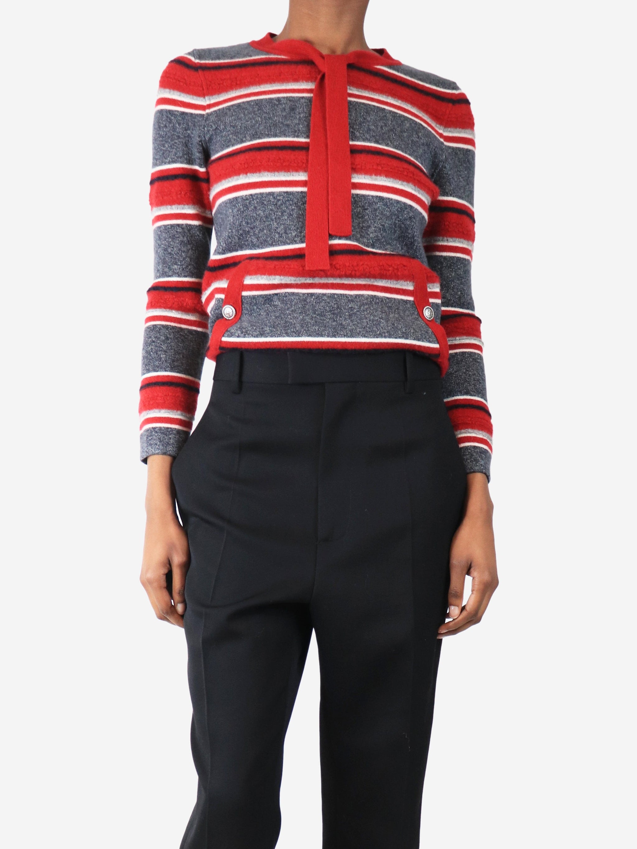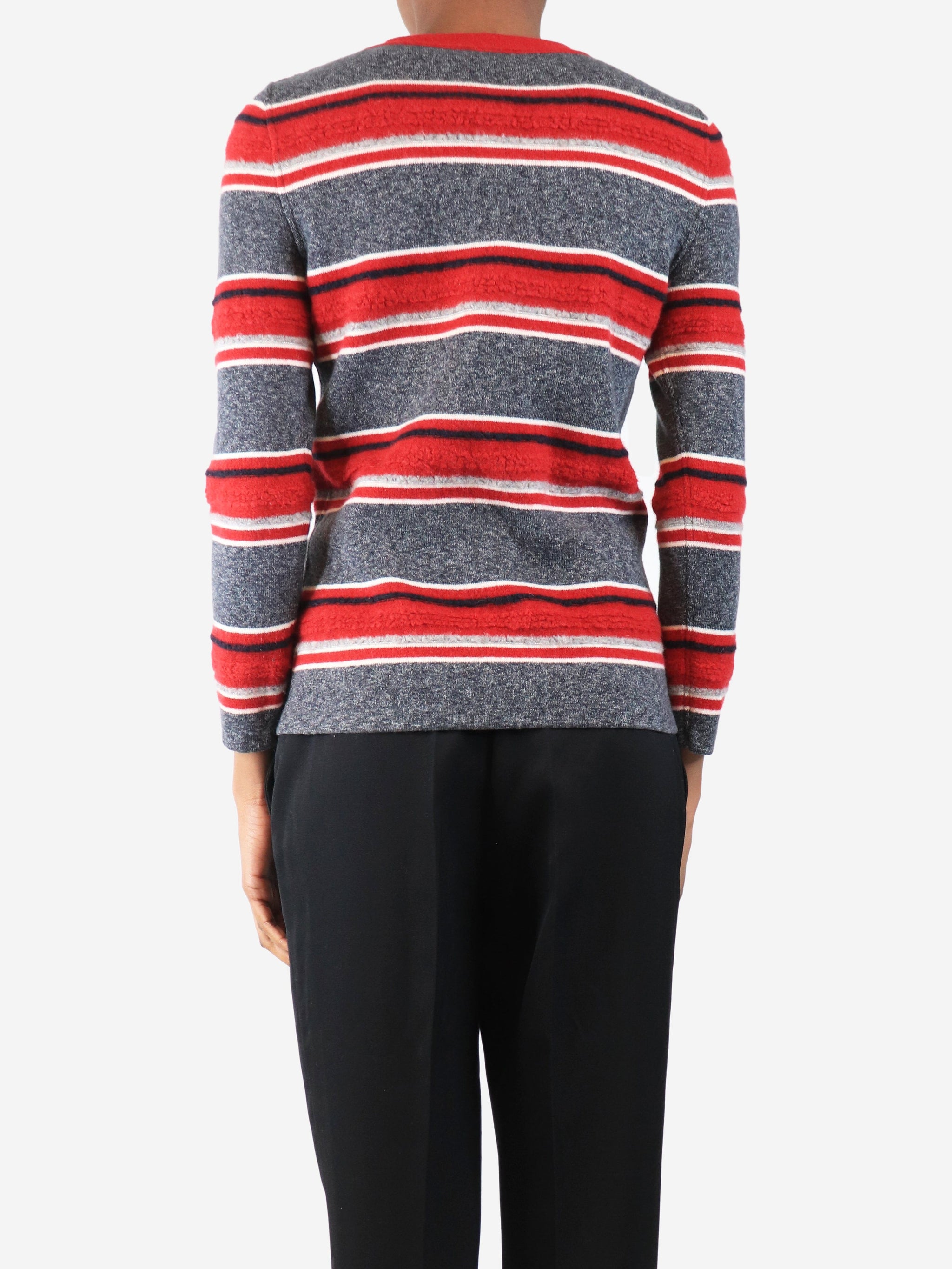 Grey and red cashmere striped jumper - size UK 8