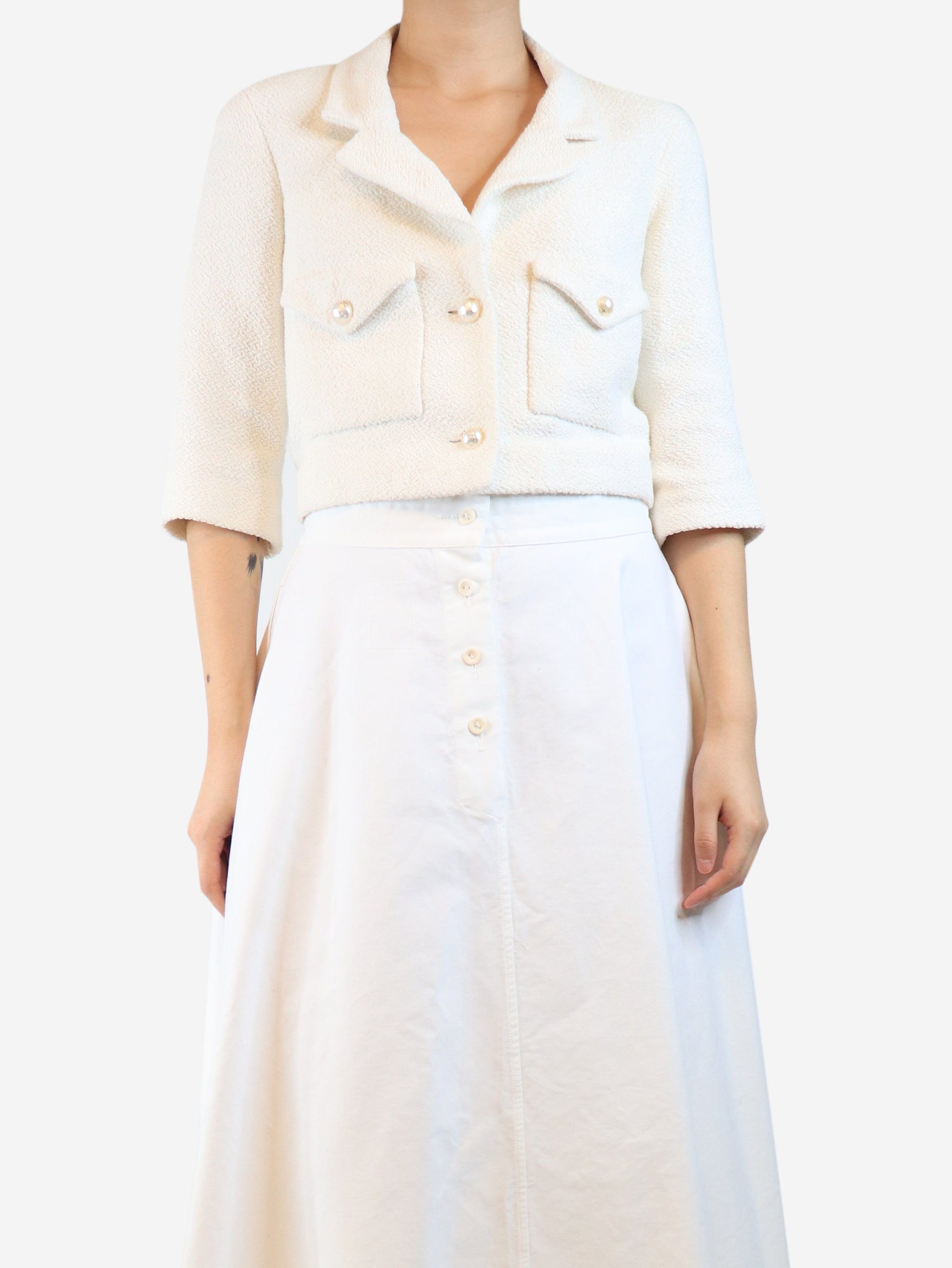 Ivory cropped boucle jacket - size UK 8