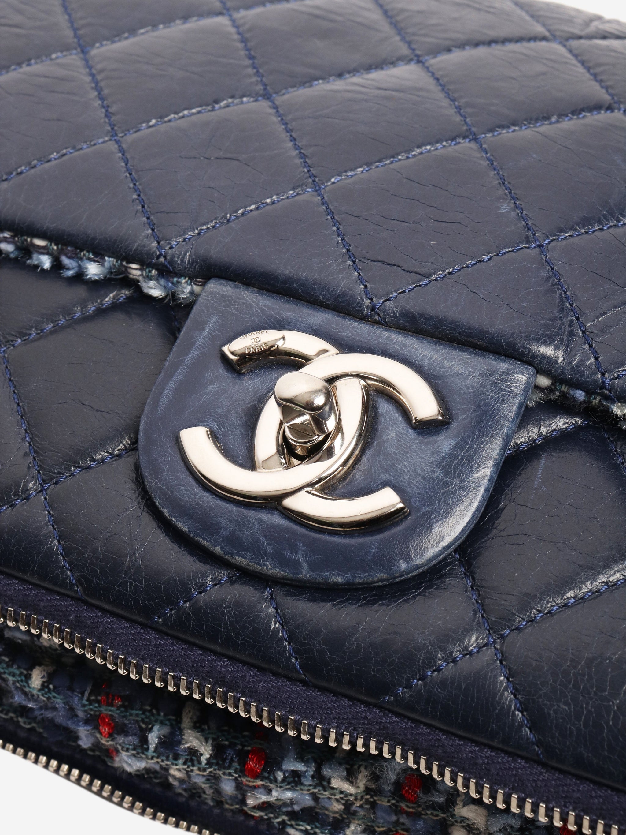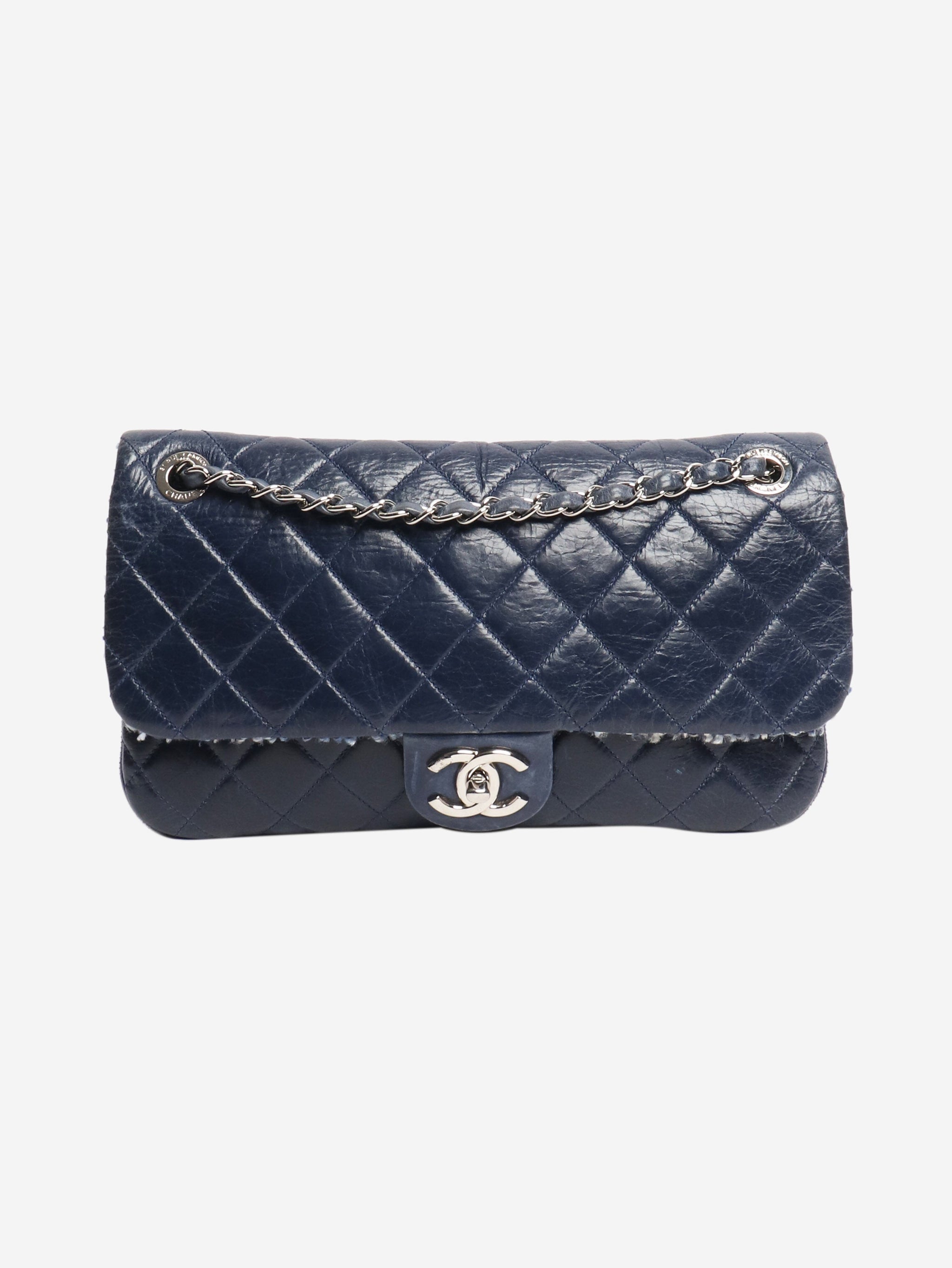 Navy 2014 lambskin and tweed shoulder bag