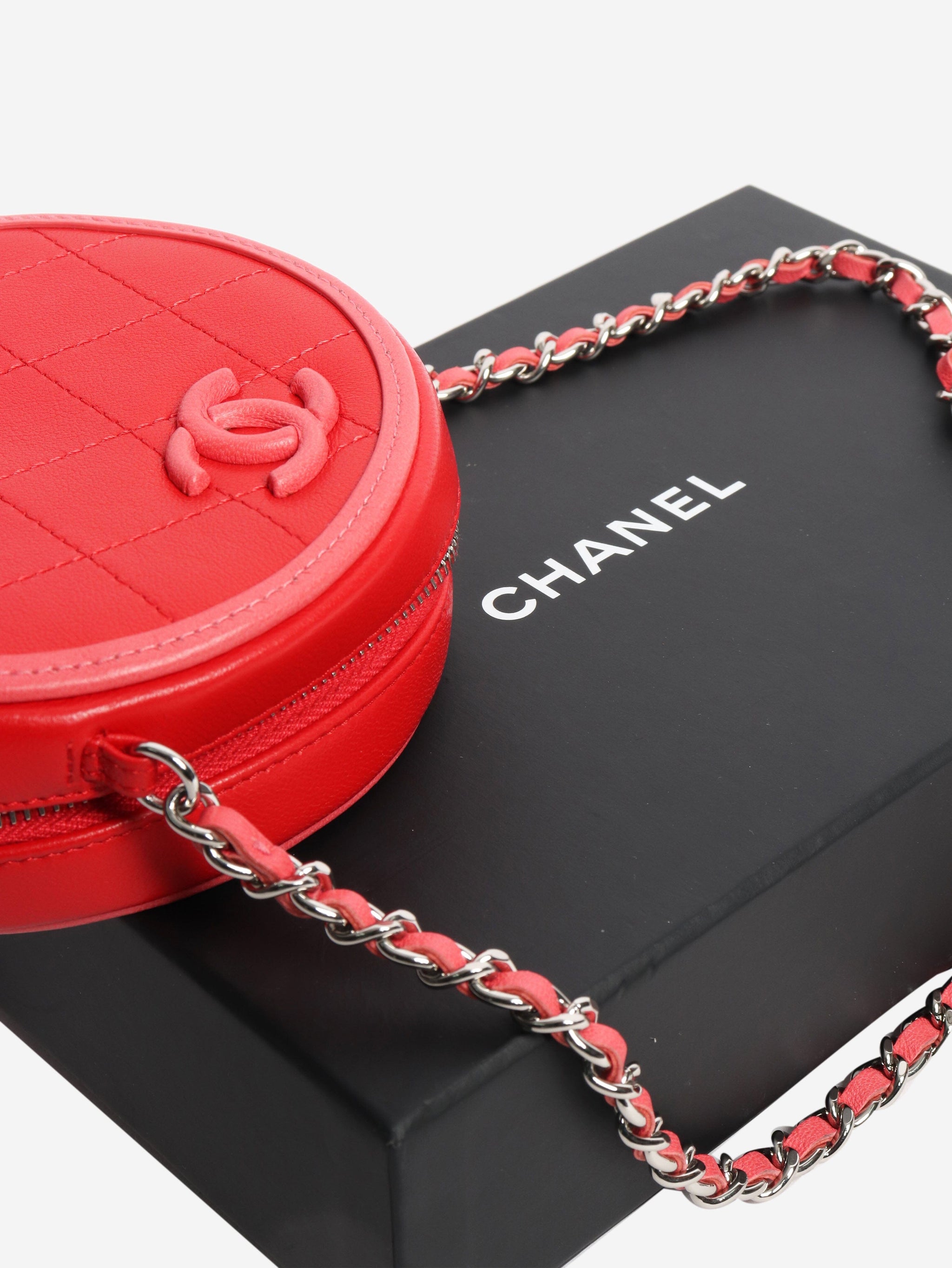 Red 2019 lambskin round crossbody bag