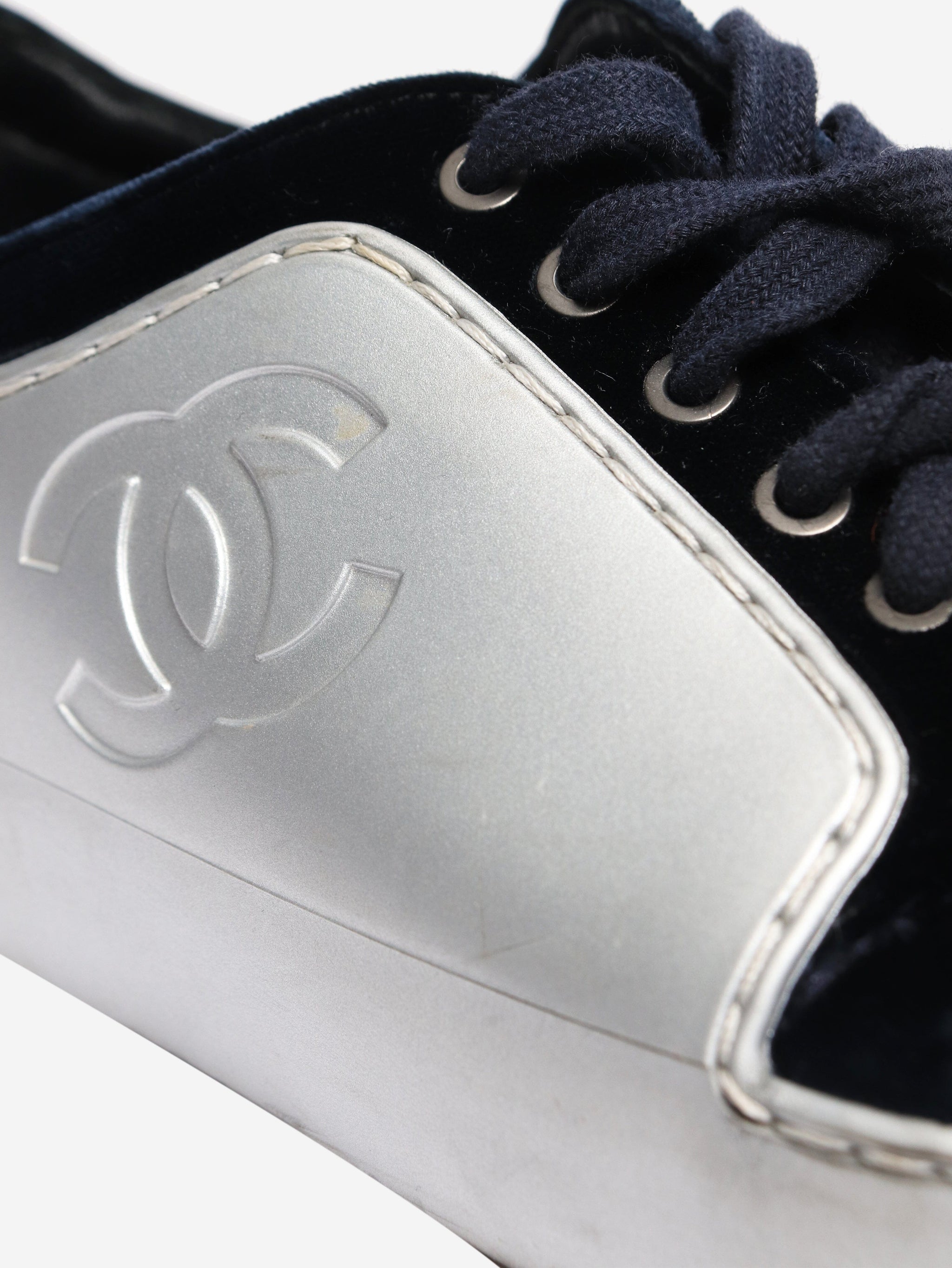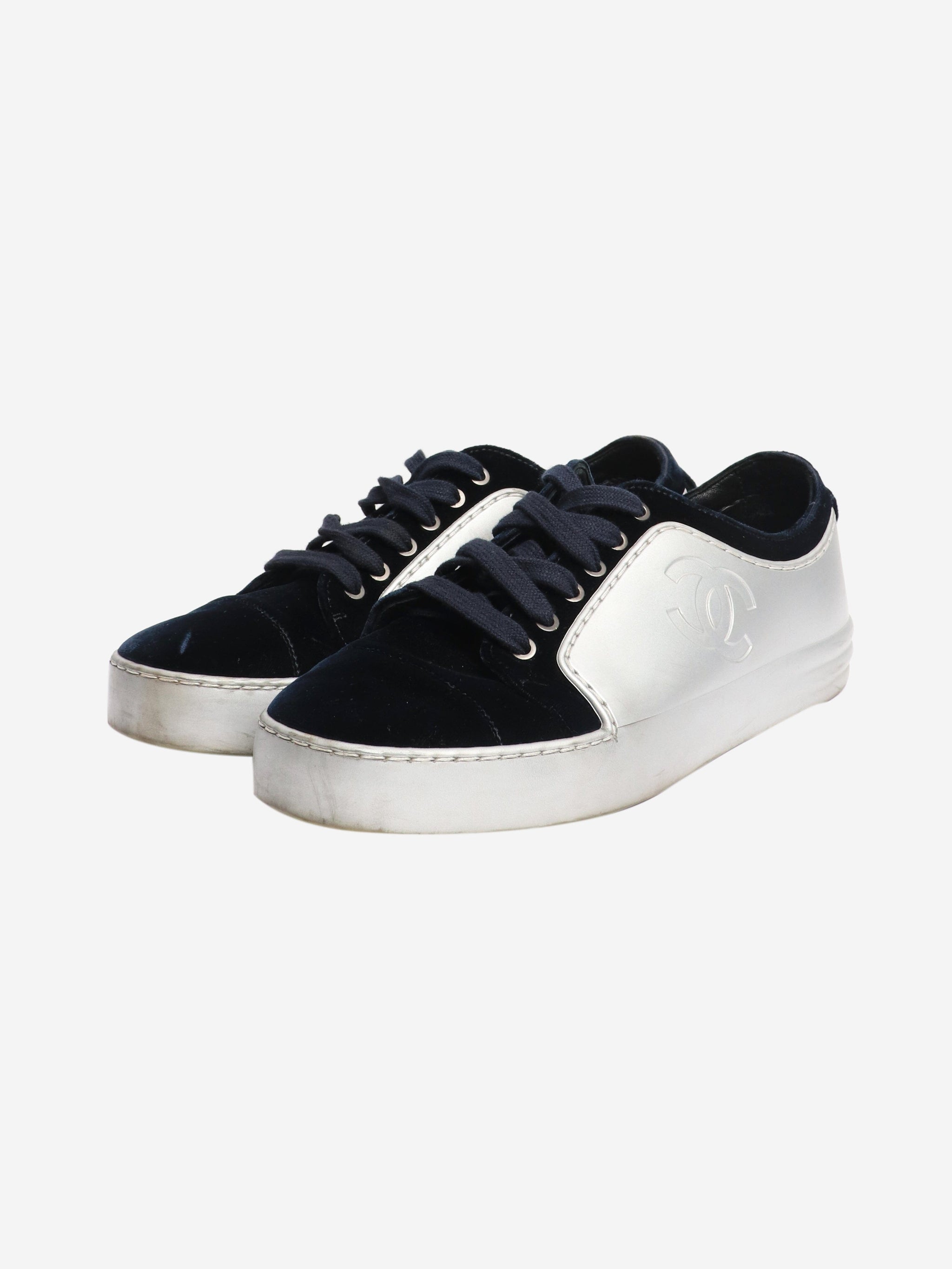 Silver and blue velvet-trimmed CC trainers - size EU 37