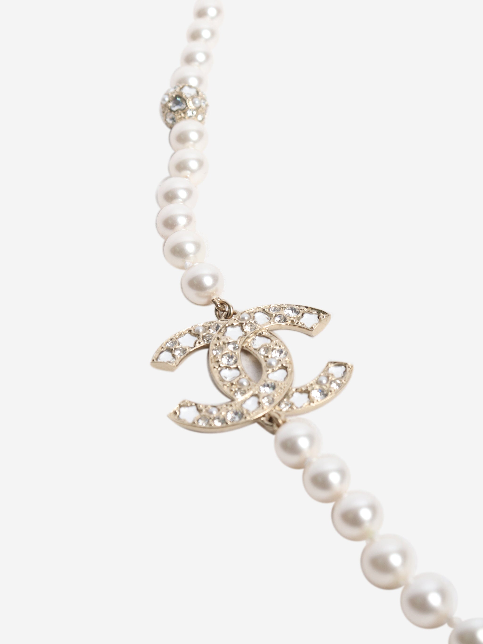 White pearl CC necklace