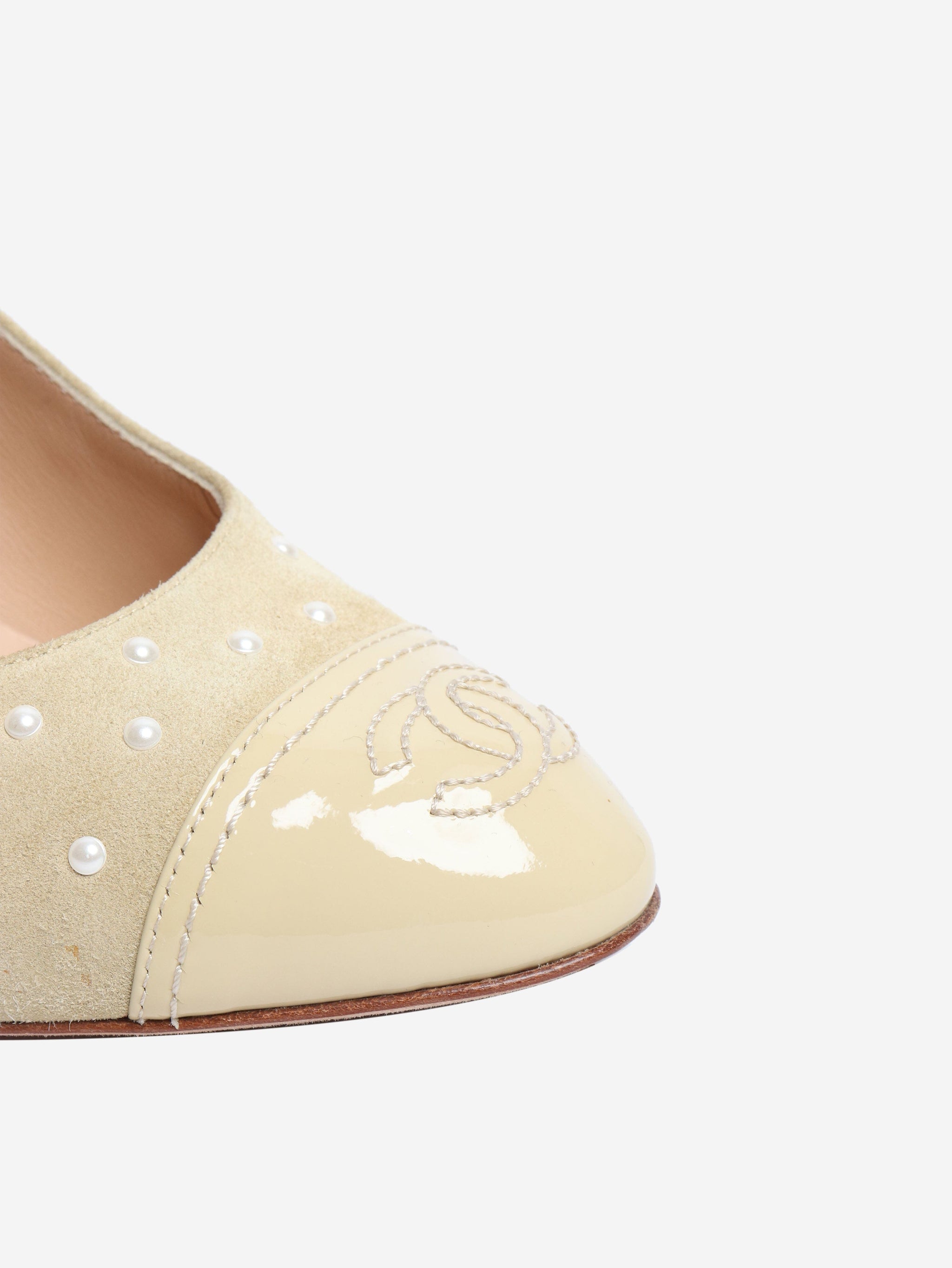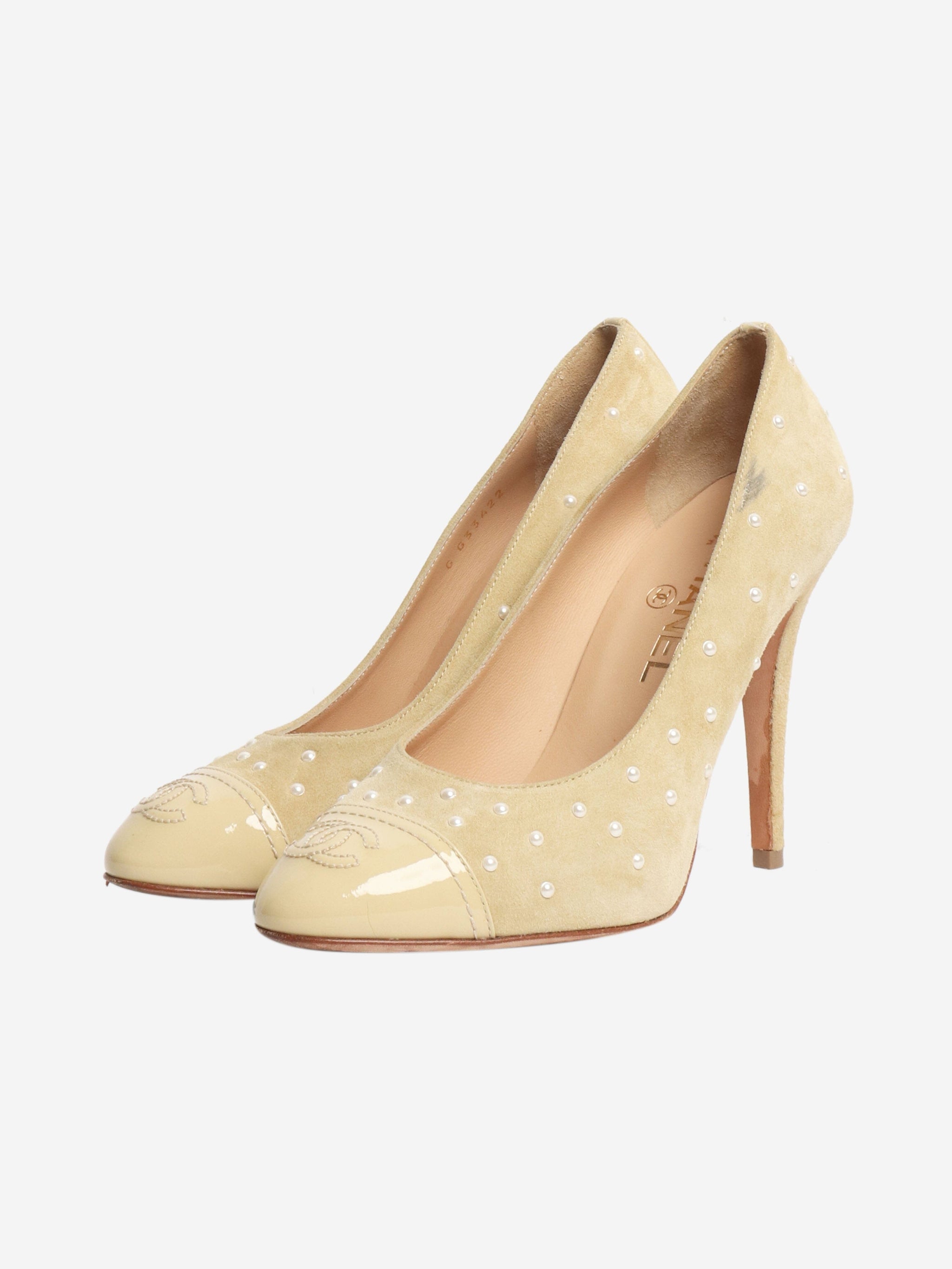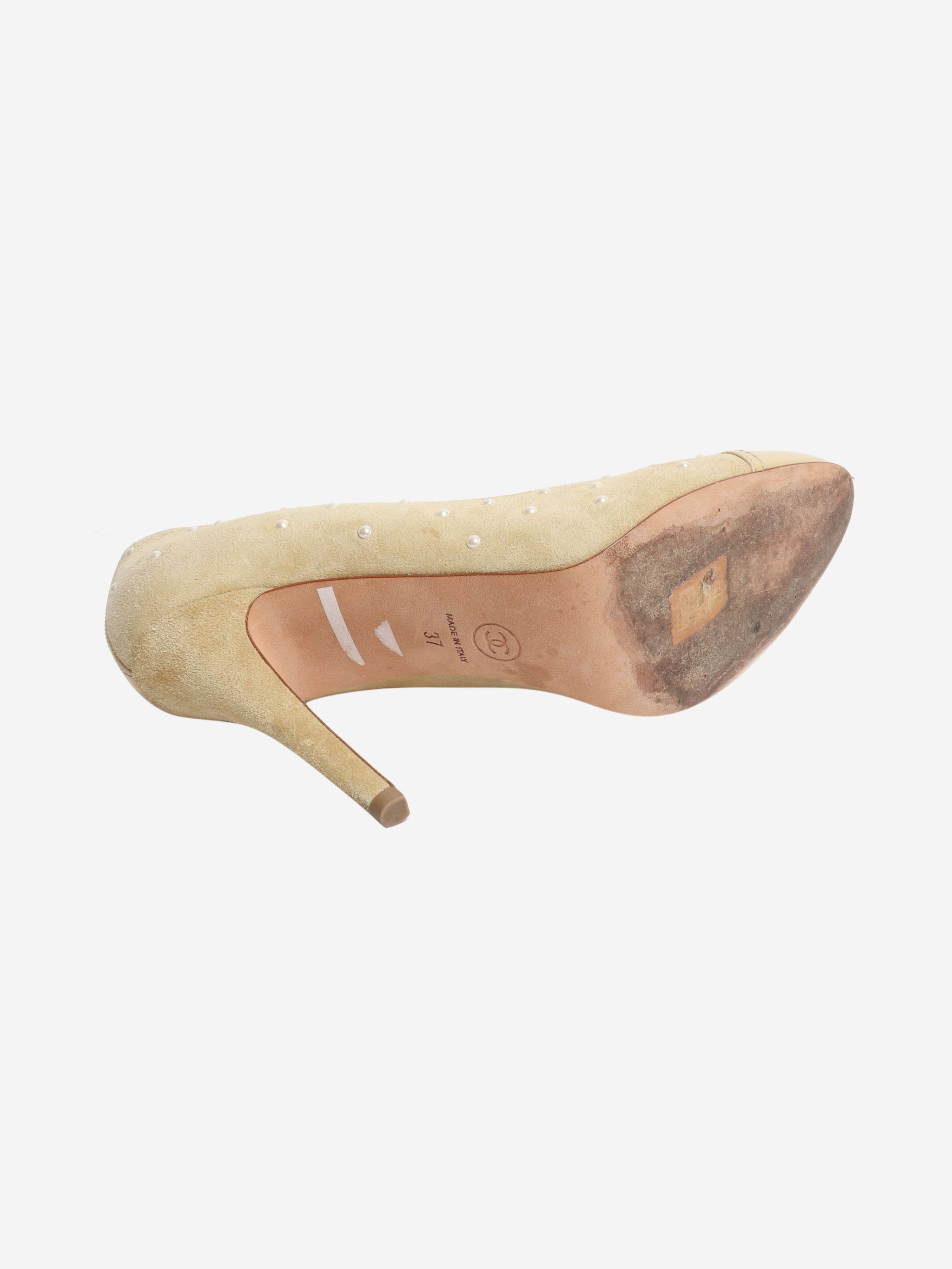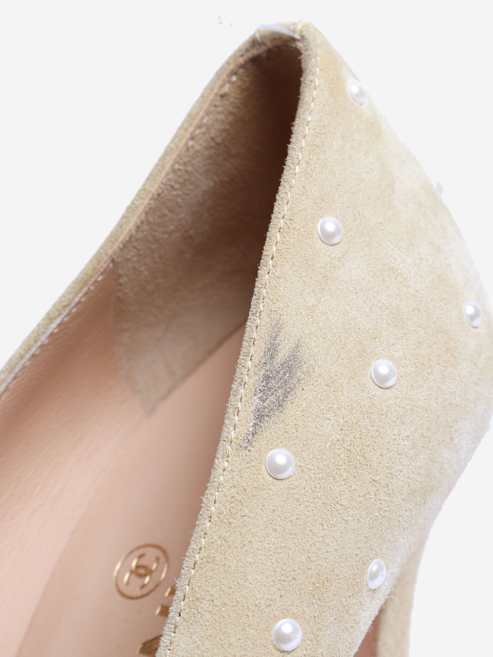 Yellow suede heels with pearls - size EU 37 (UK 4)