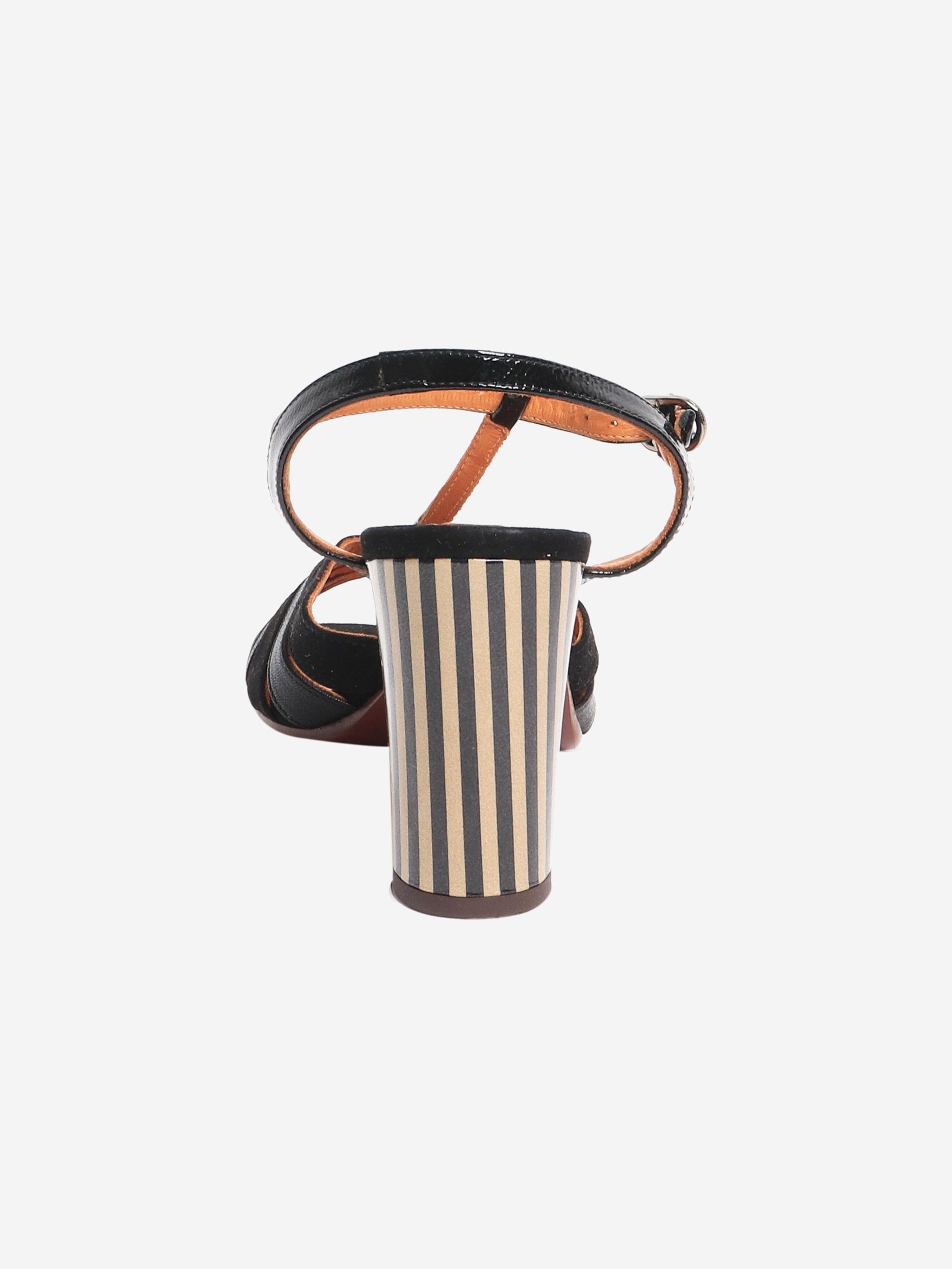 Black suede and leather sandal heels - size EU 40