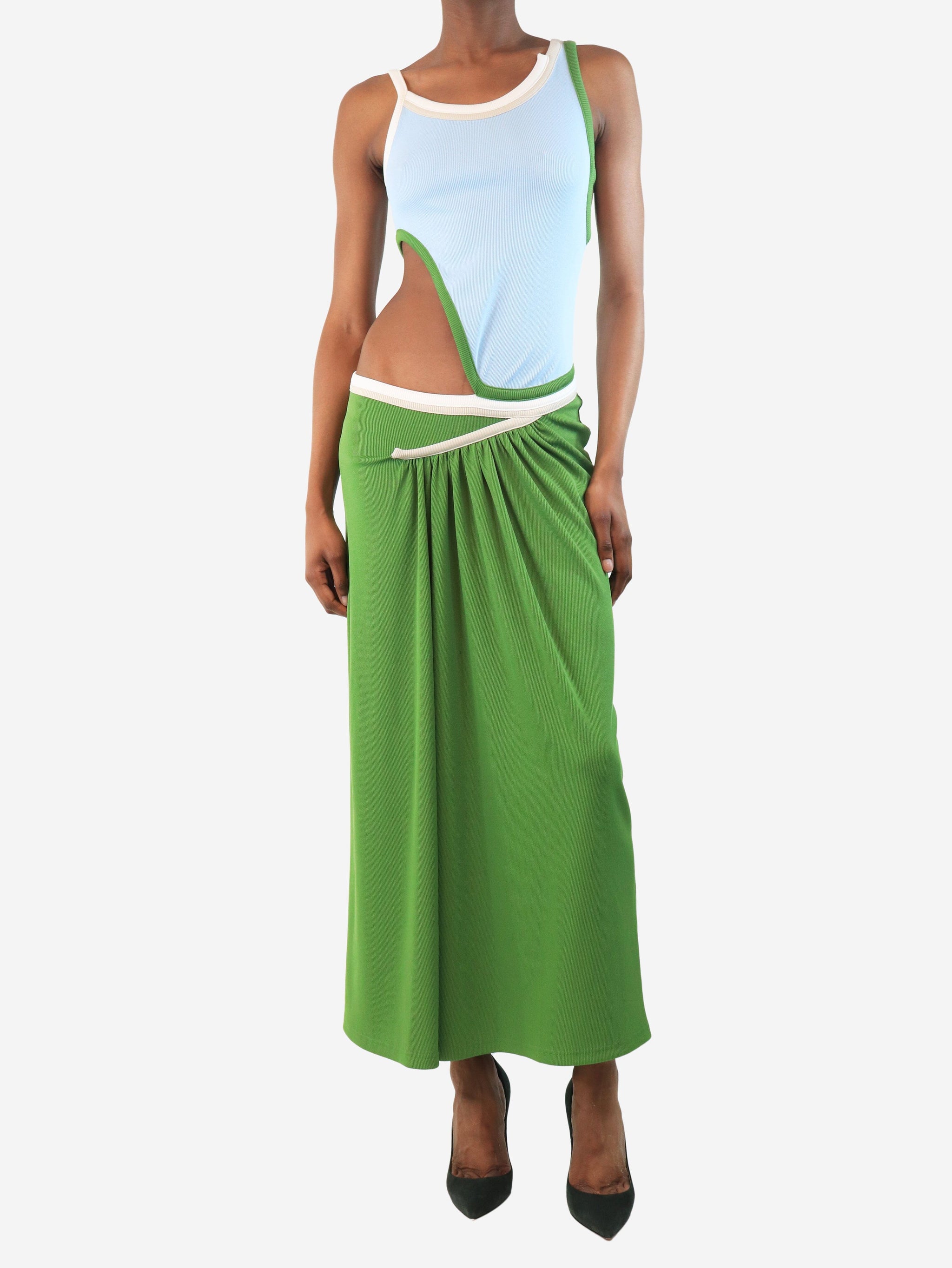 Blue and green traced multibind tank dress - size UK 6