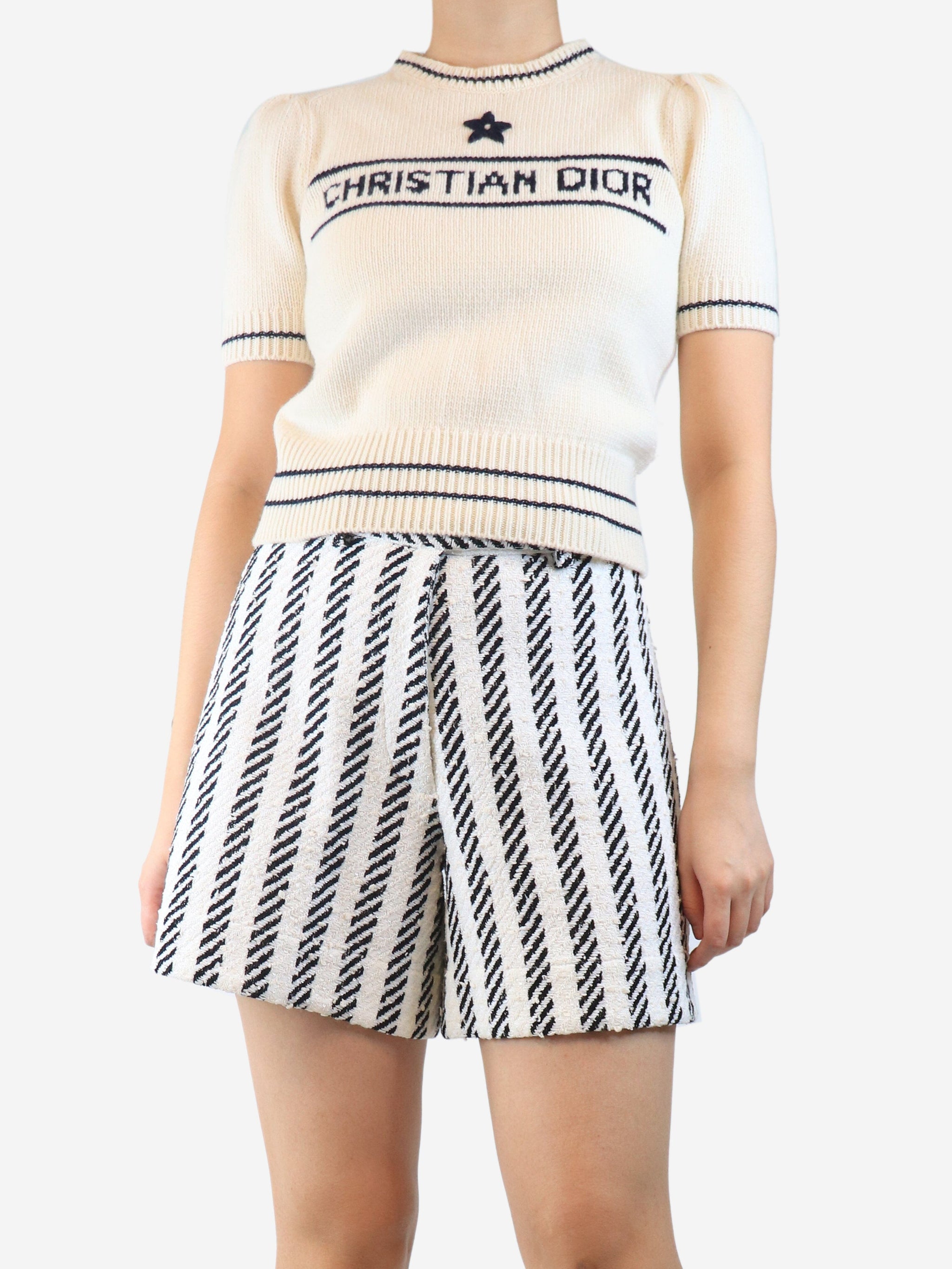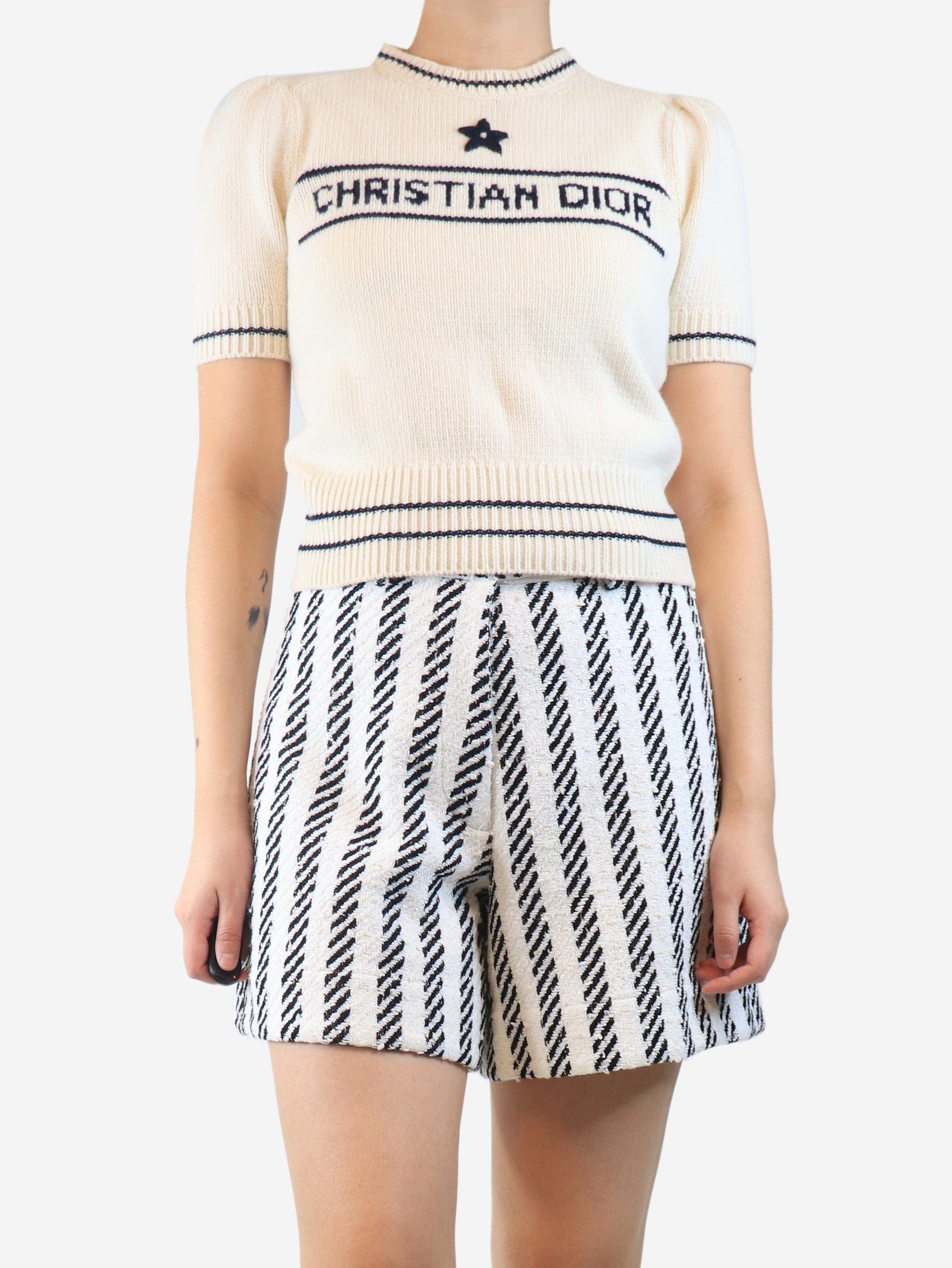 Cream spell-out wool top - size UK 10