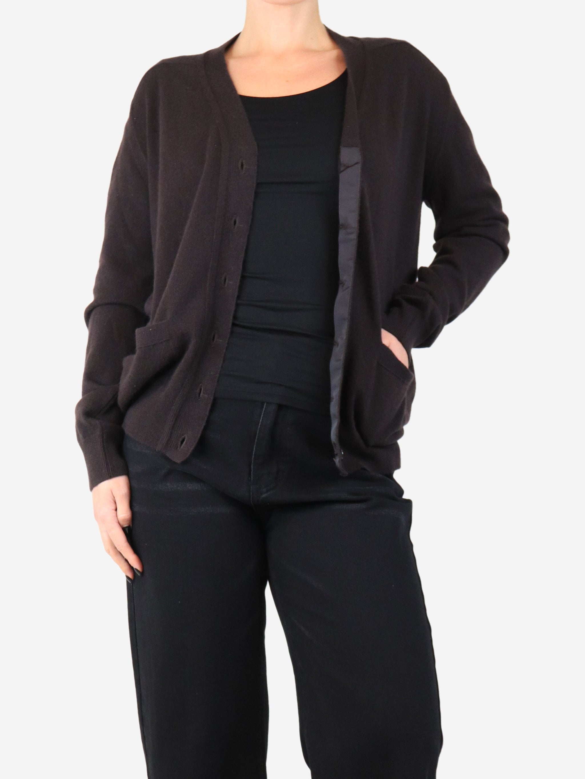 Dark brown cashmere pocket cardigan - size M