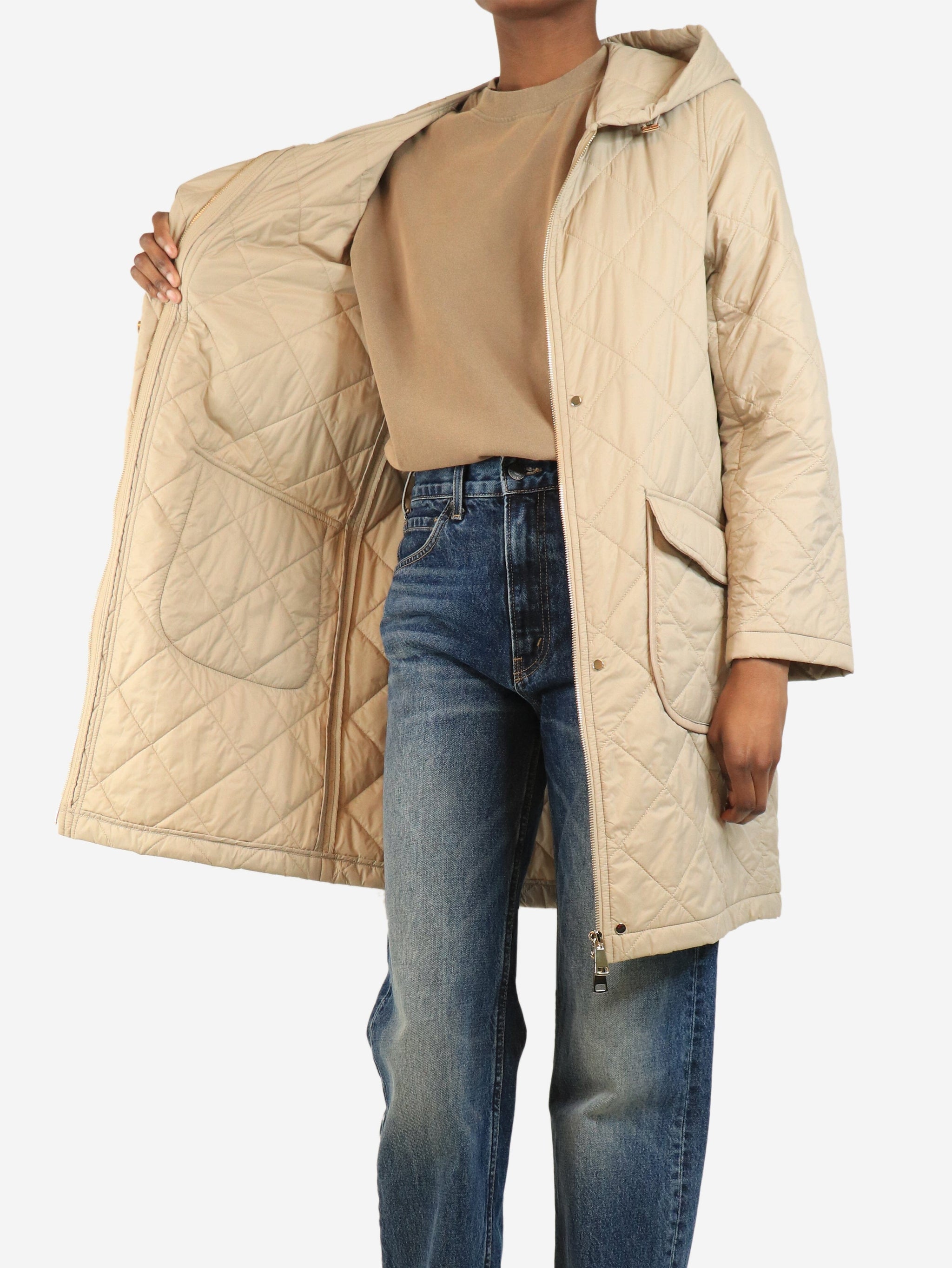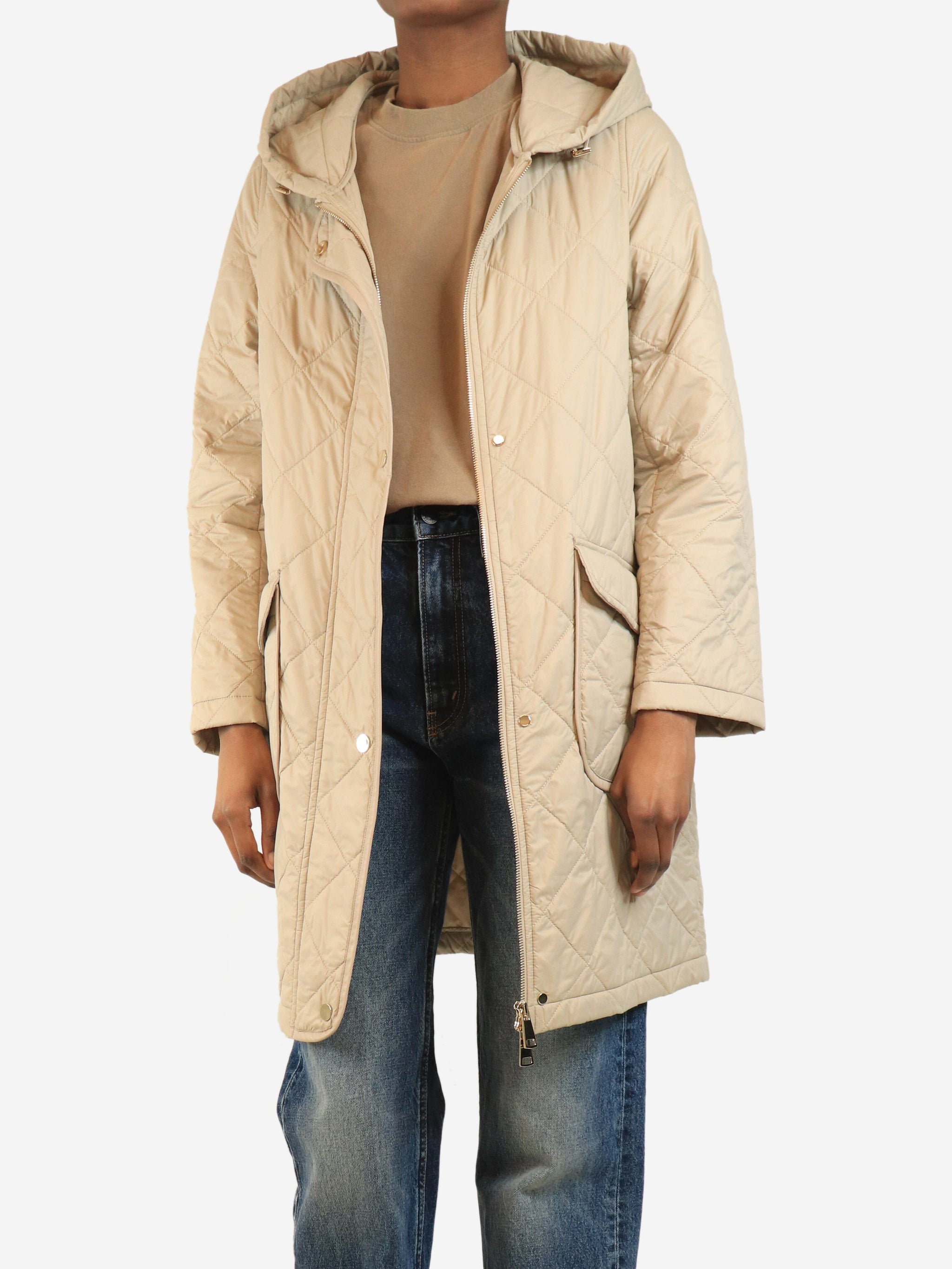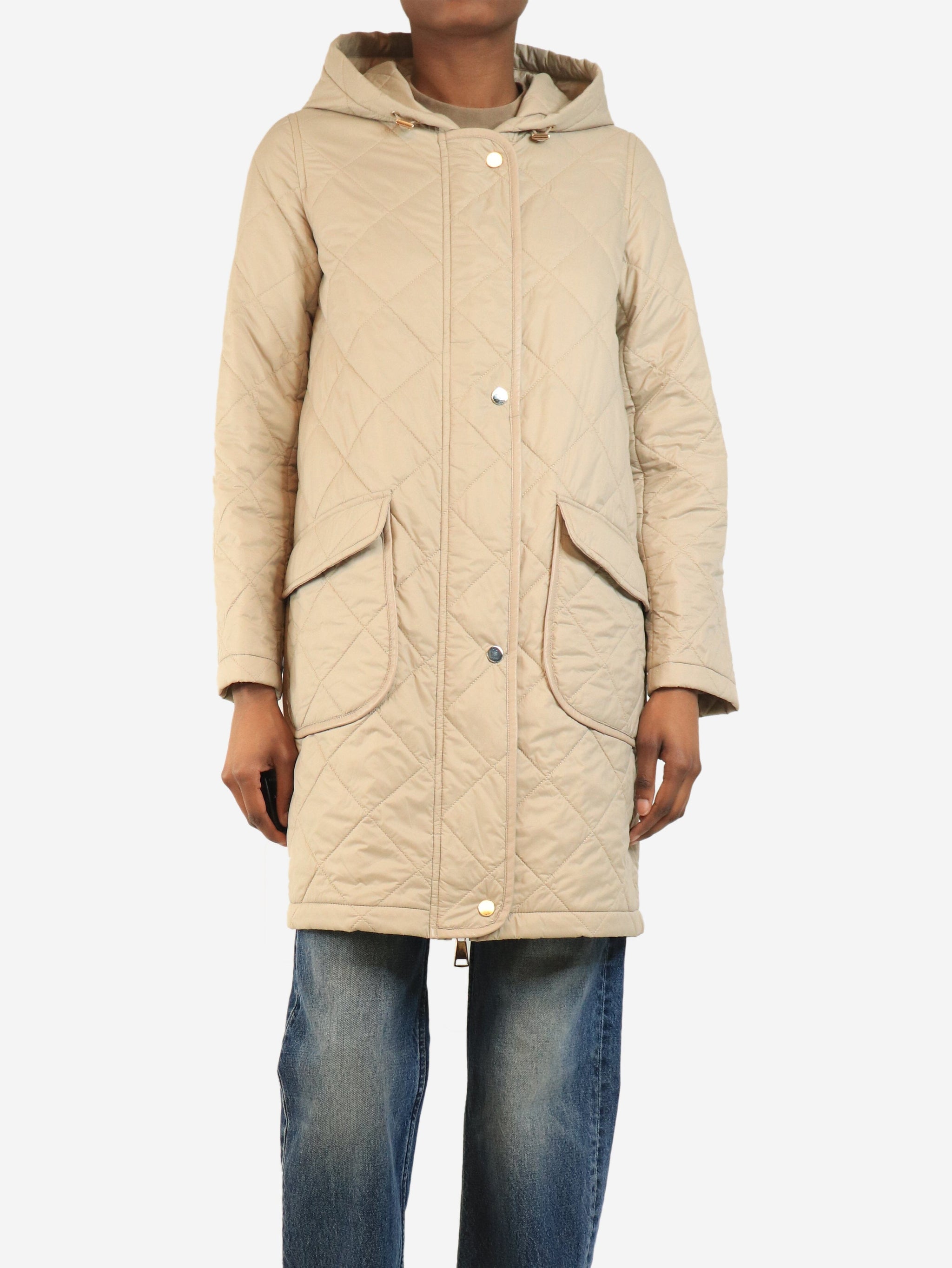 Neutral lightweight quilted parka - size UK 4