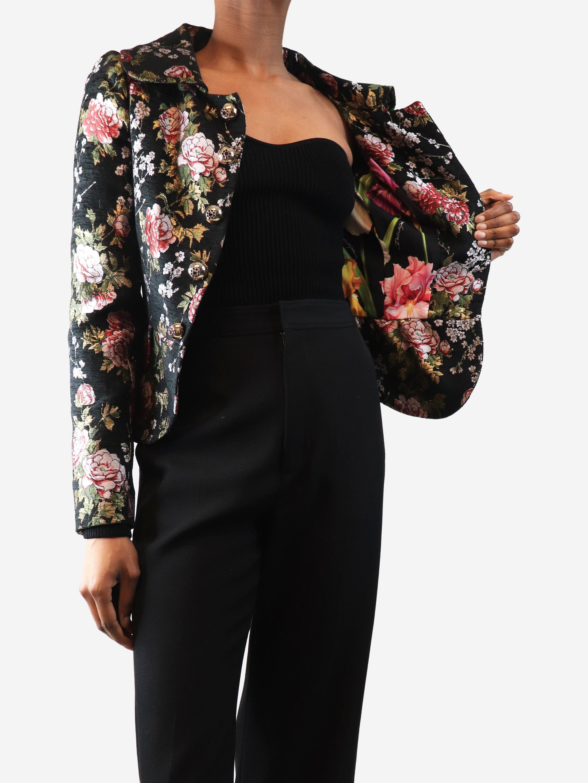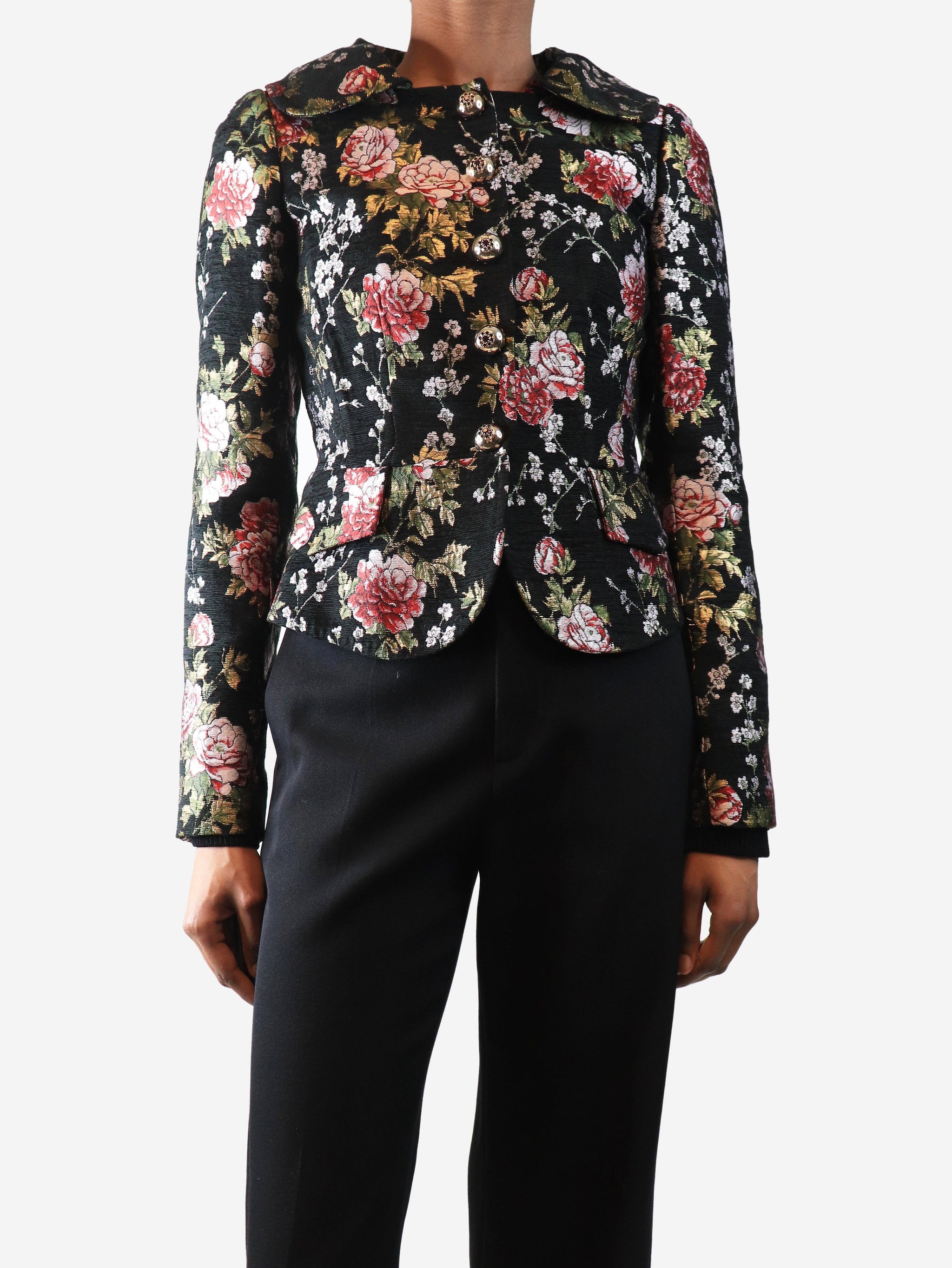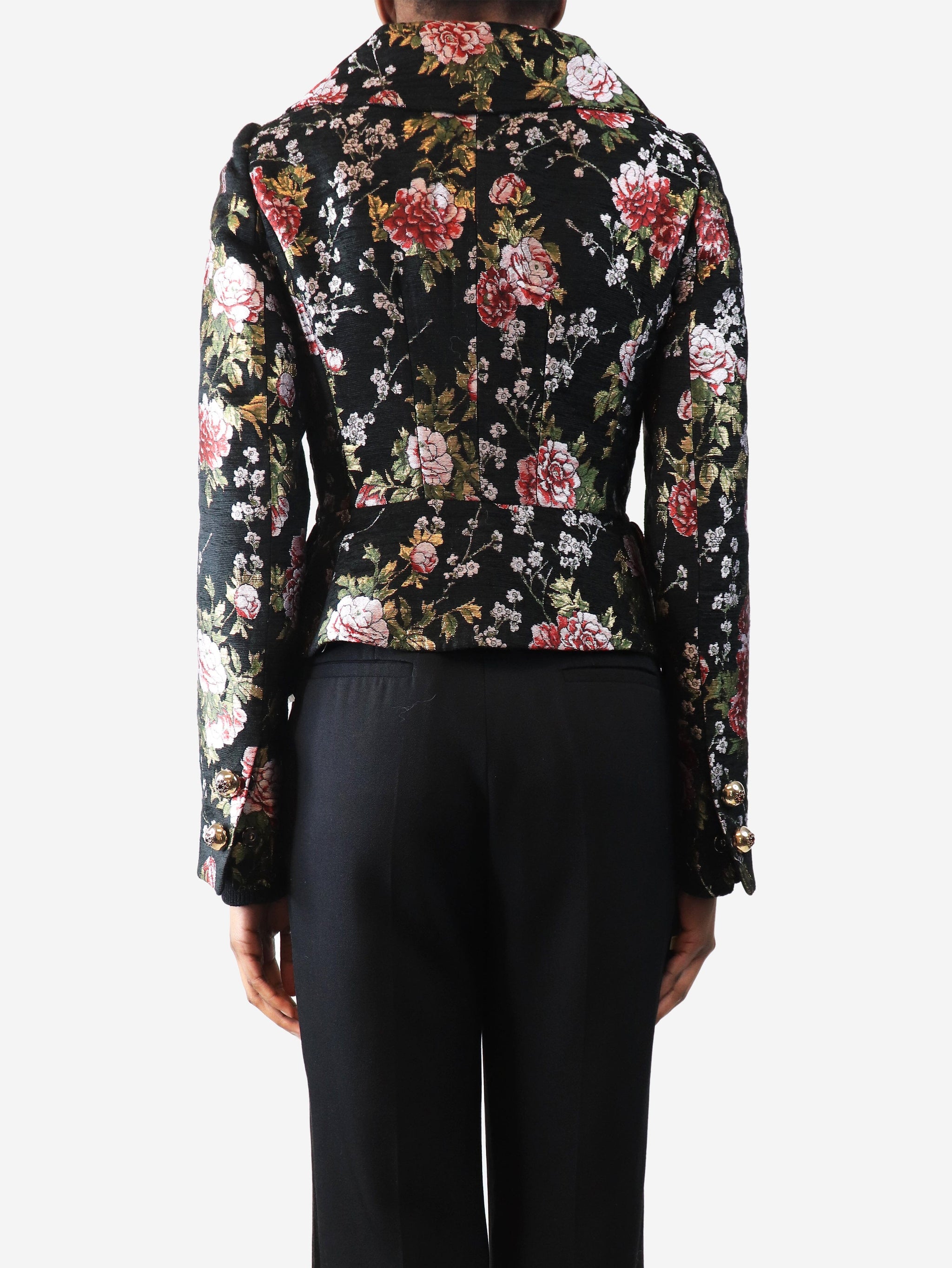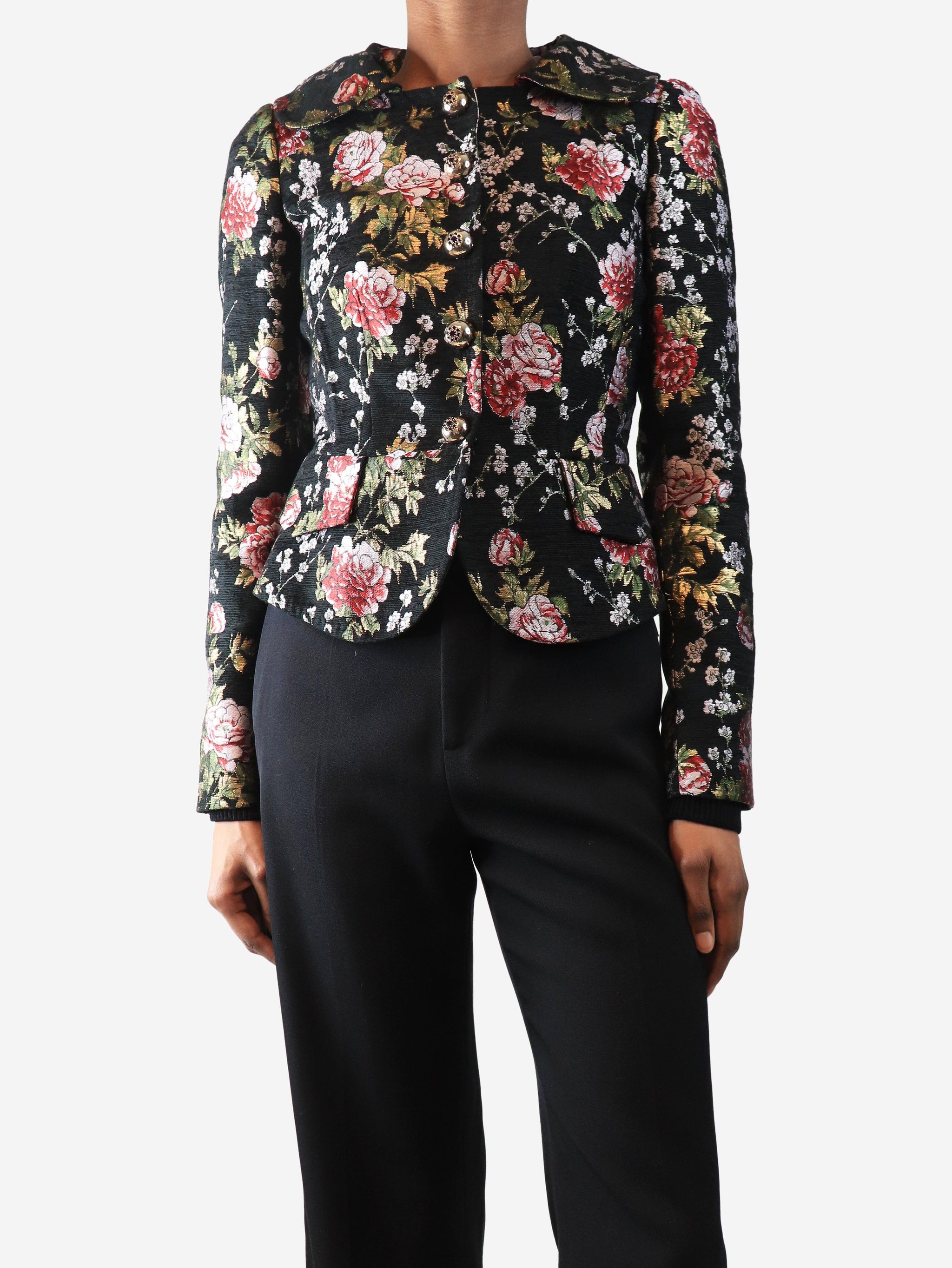 Black lurex floral jacket - size UK 6