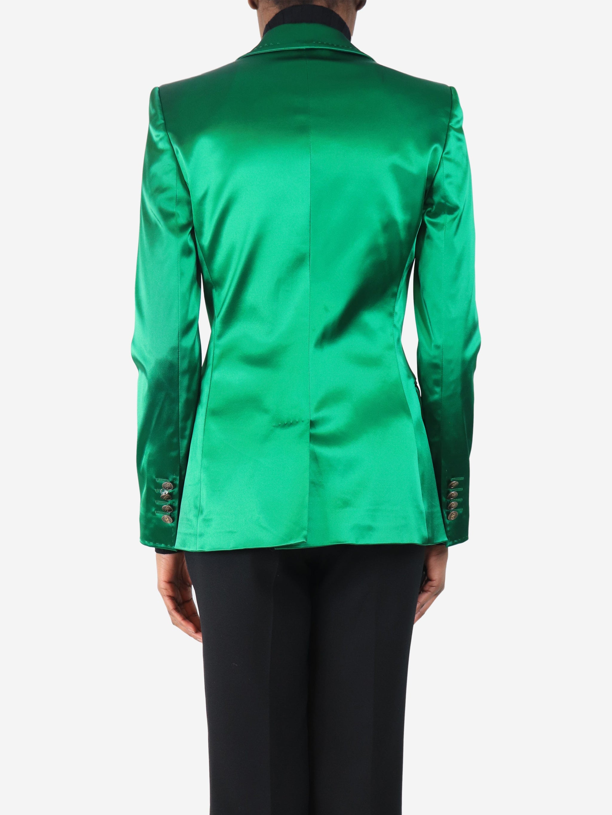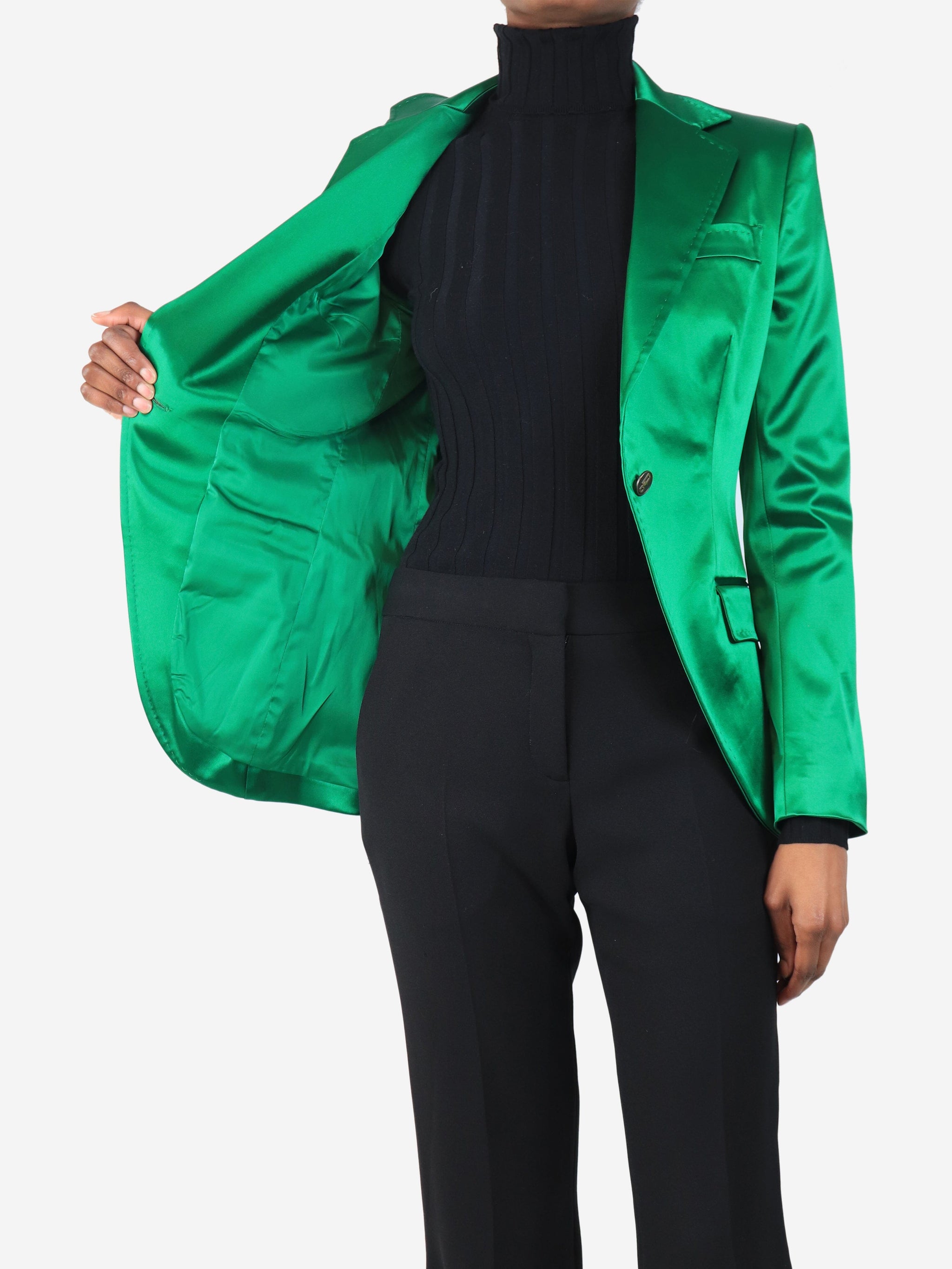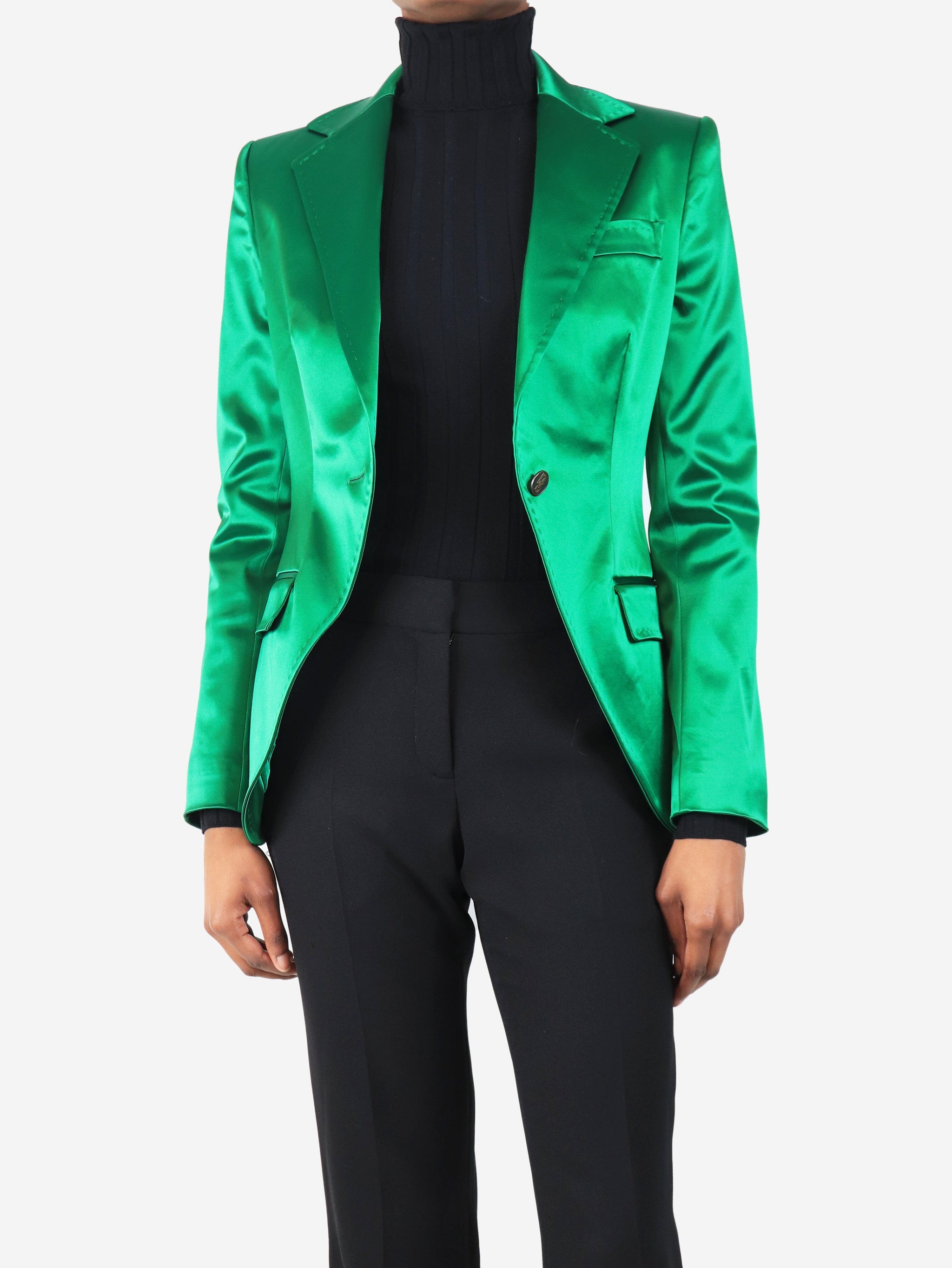 Green satin emerald single button blazer - size UK 6
