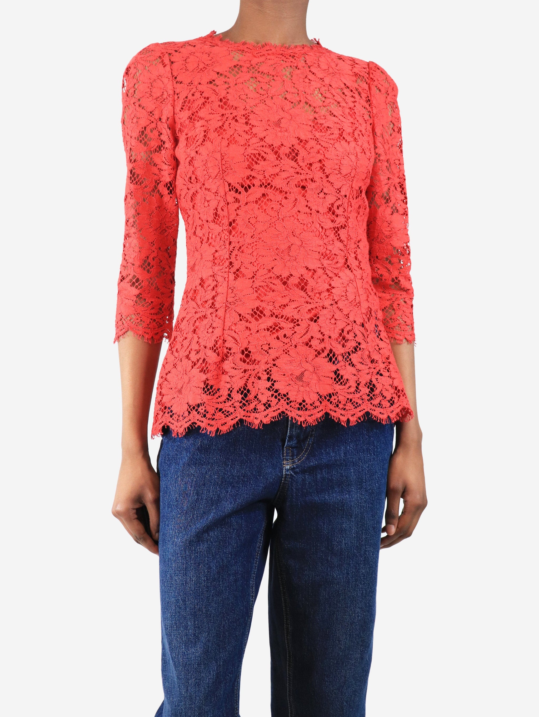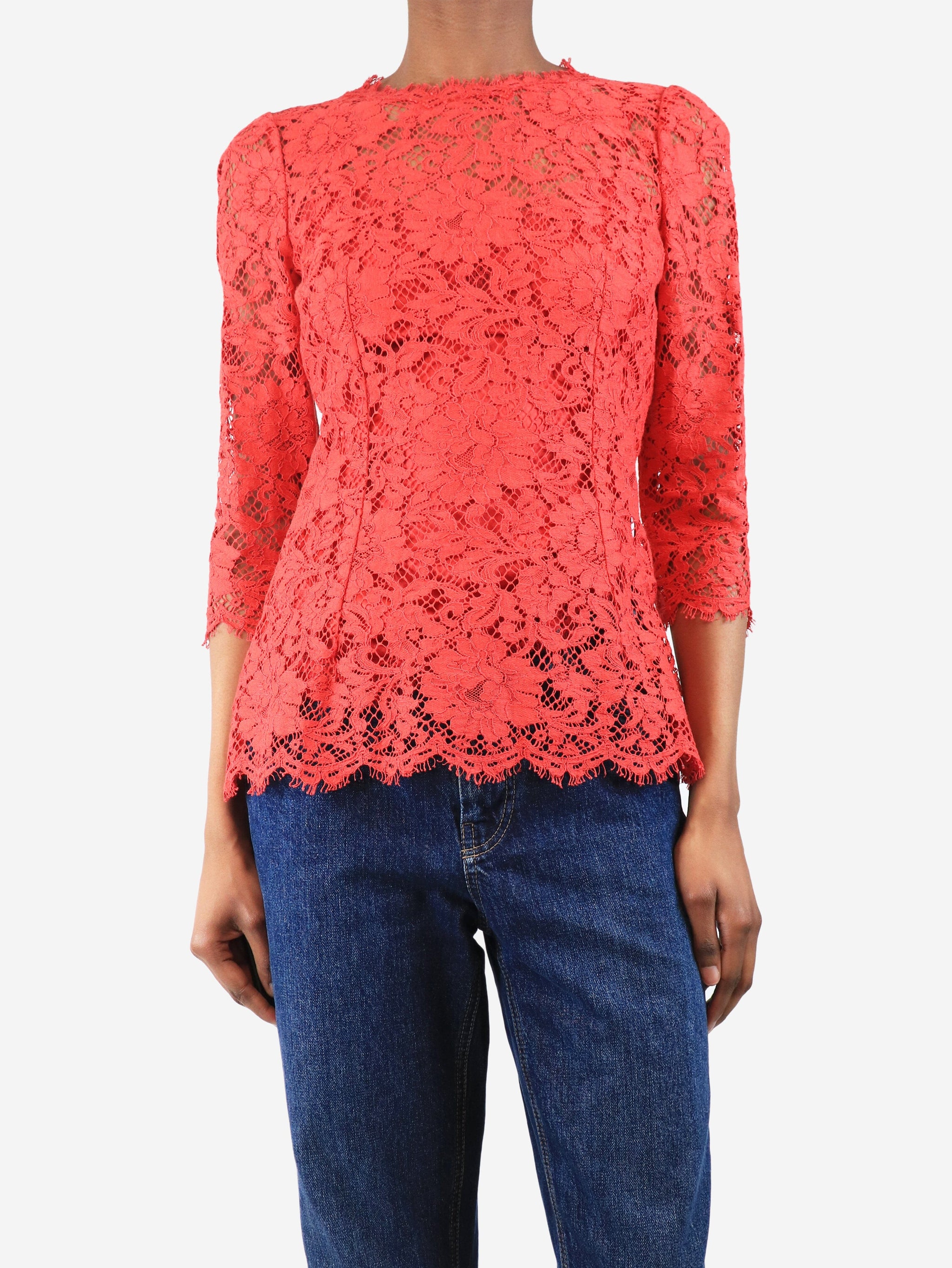 Red lace top with slip - size UK 6