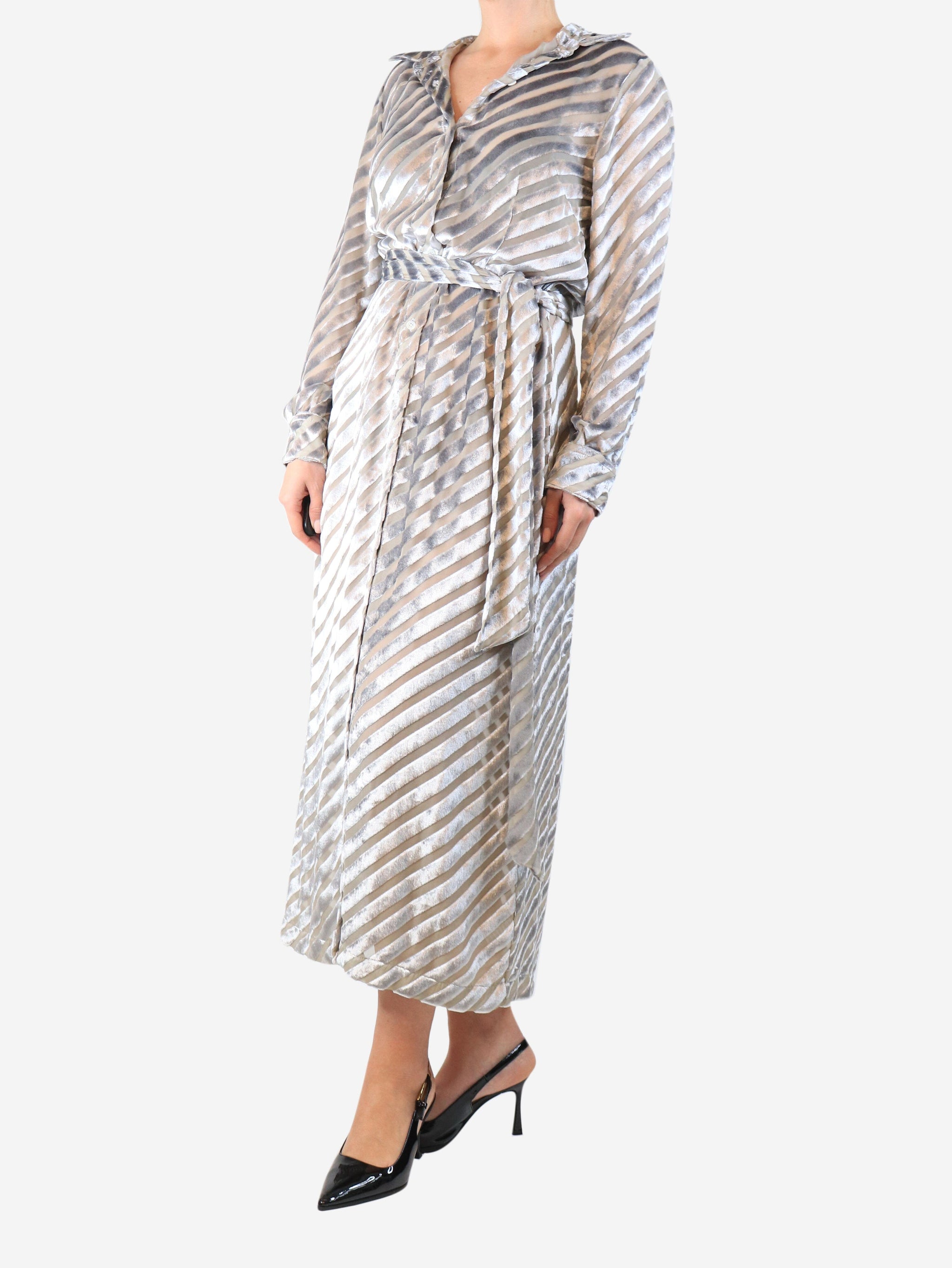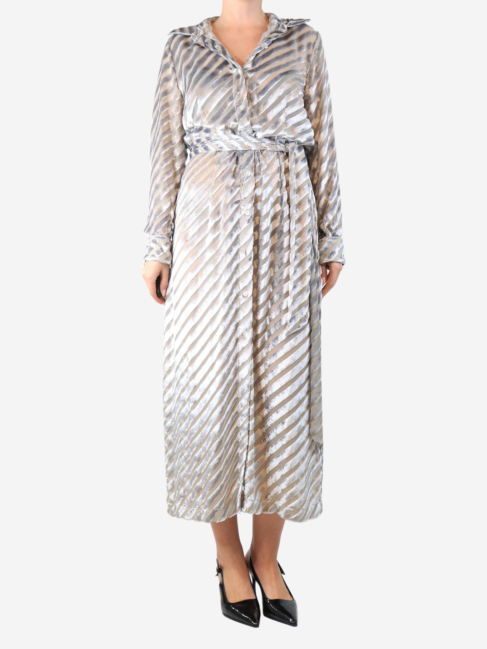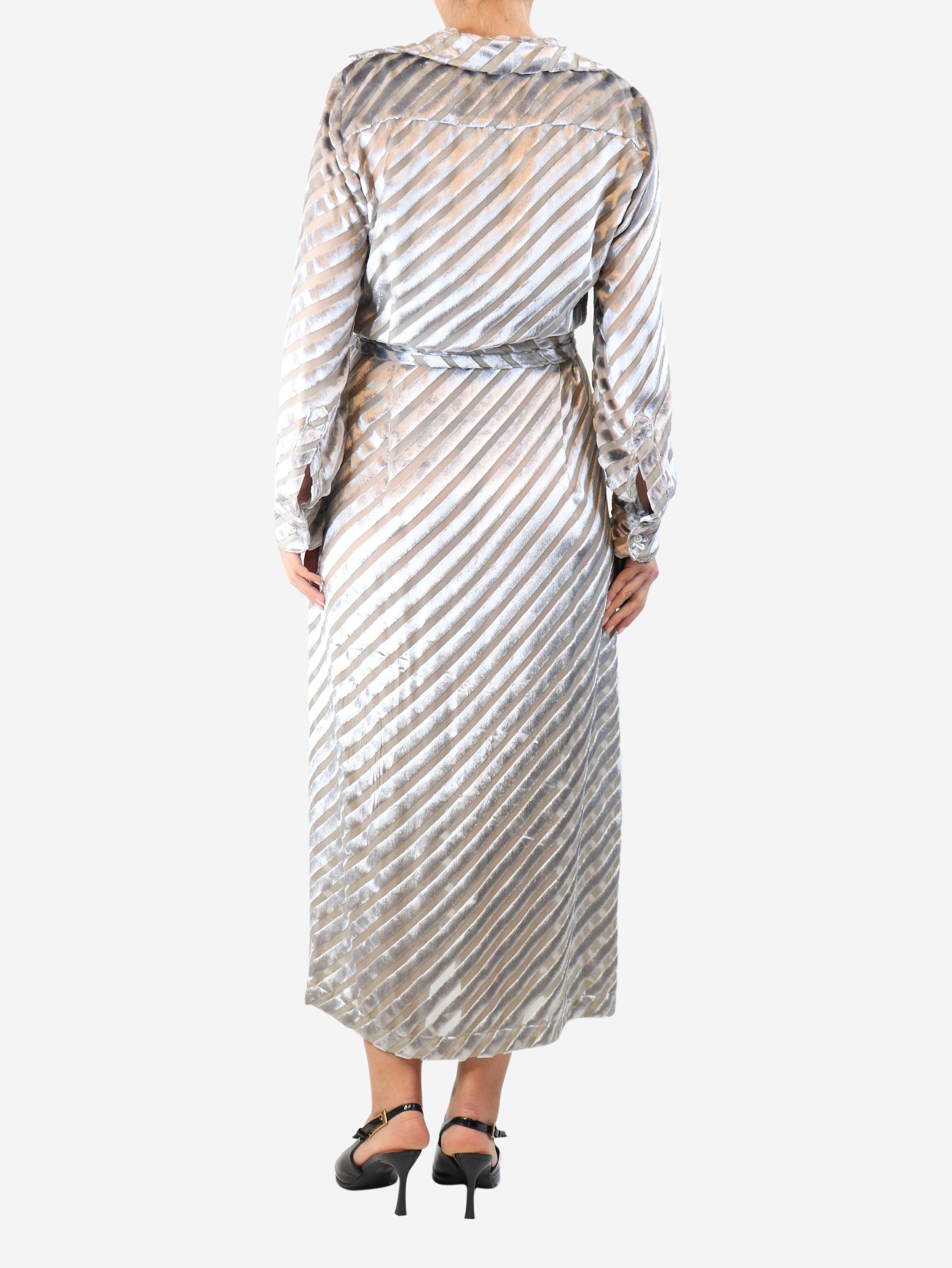 Silver velvet diagonal-striped shirt dress - size UK 14