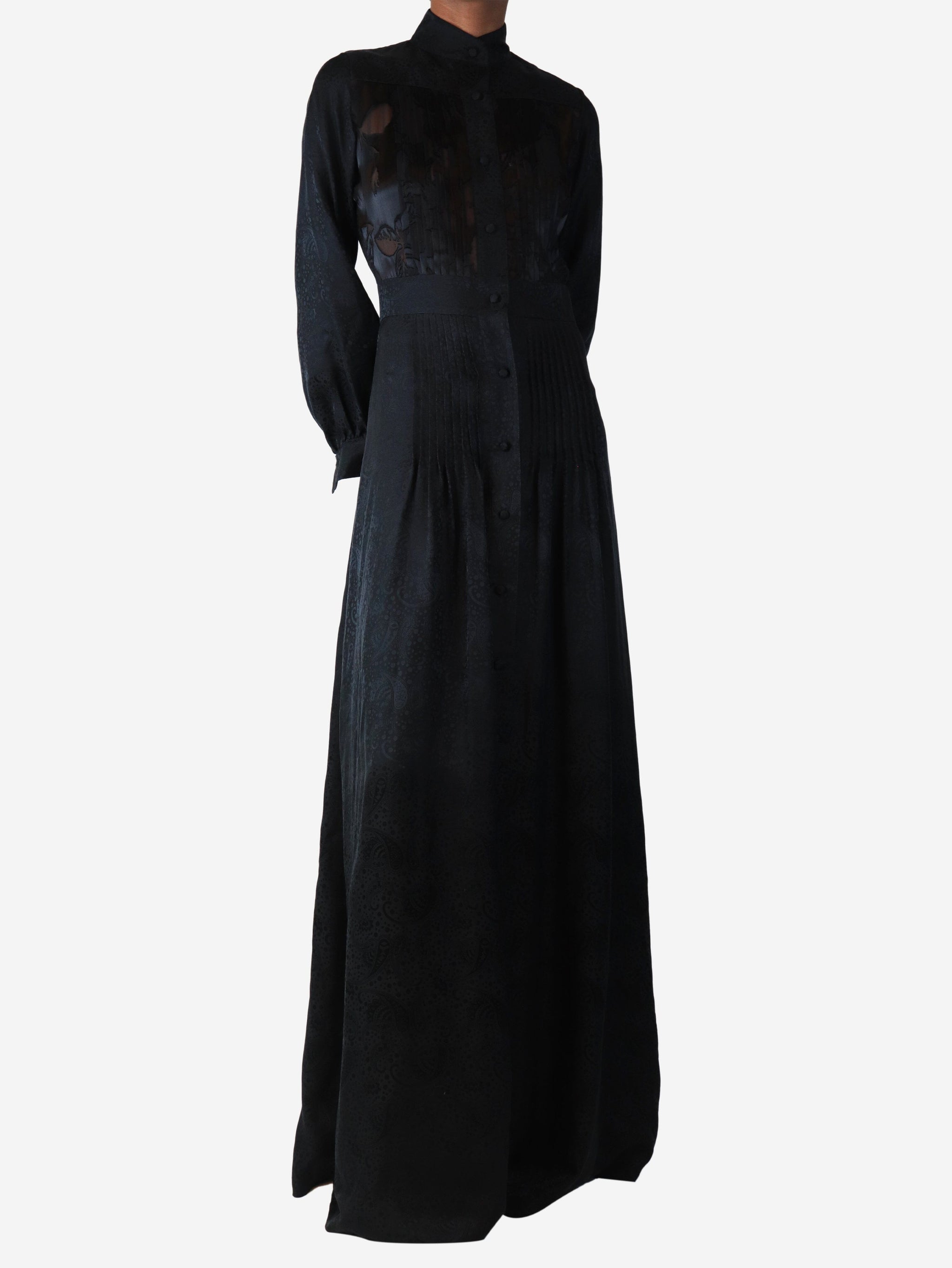 Black pleated maxi shirt dress - size UK 8