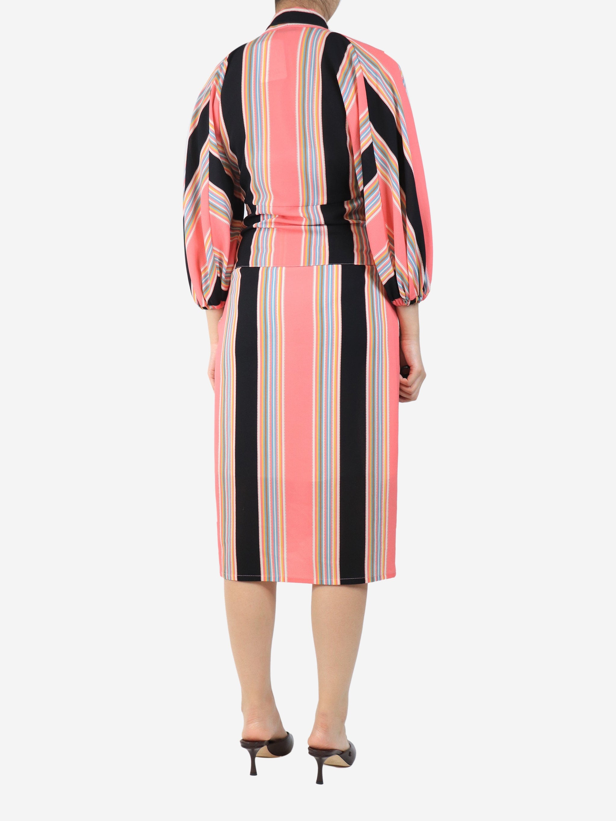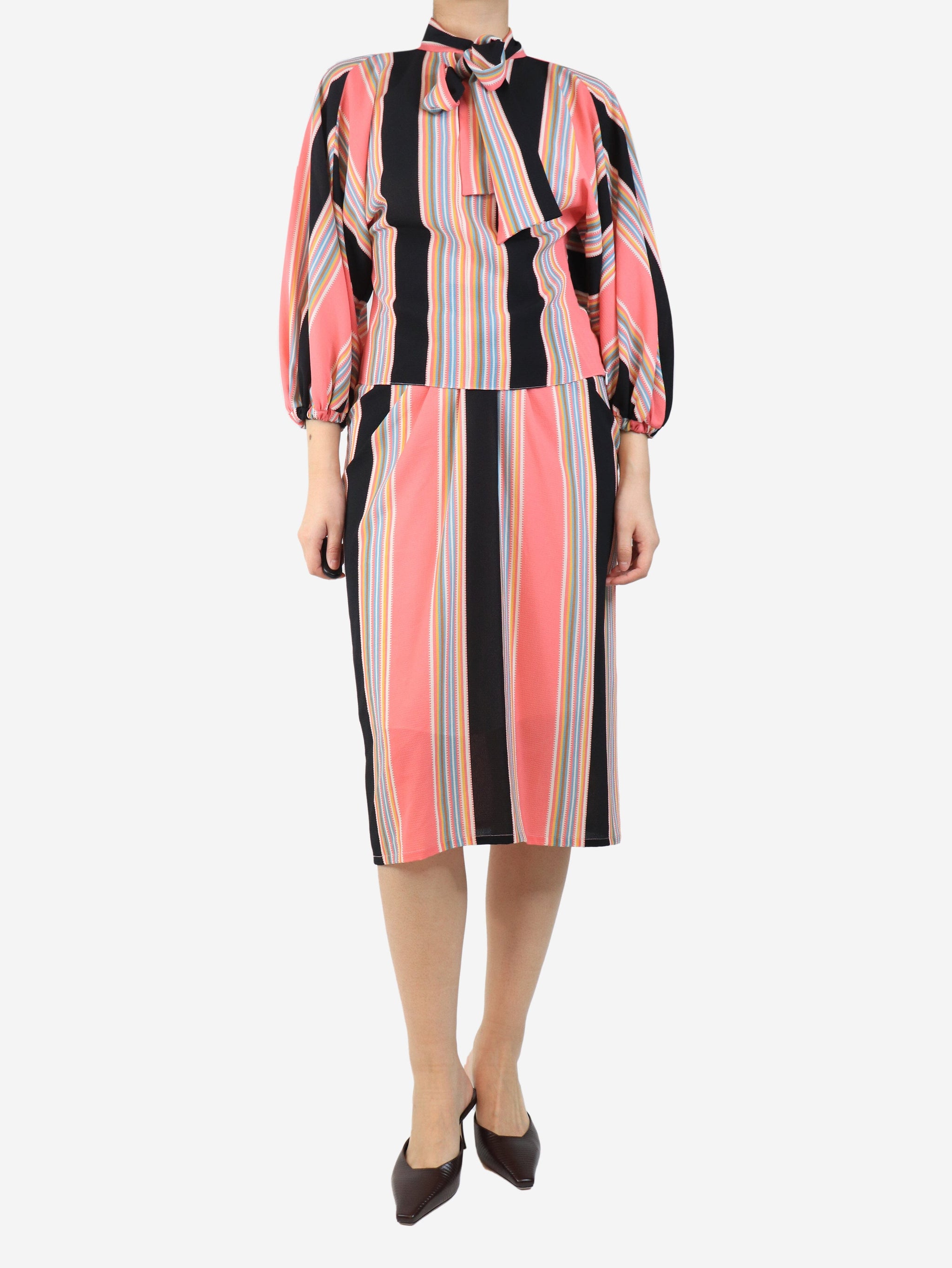 Pink striped blouse and skirt set - size UK 8