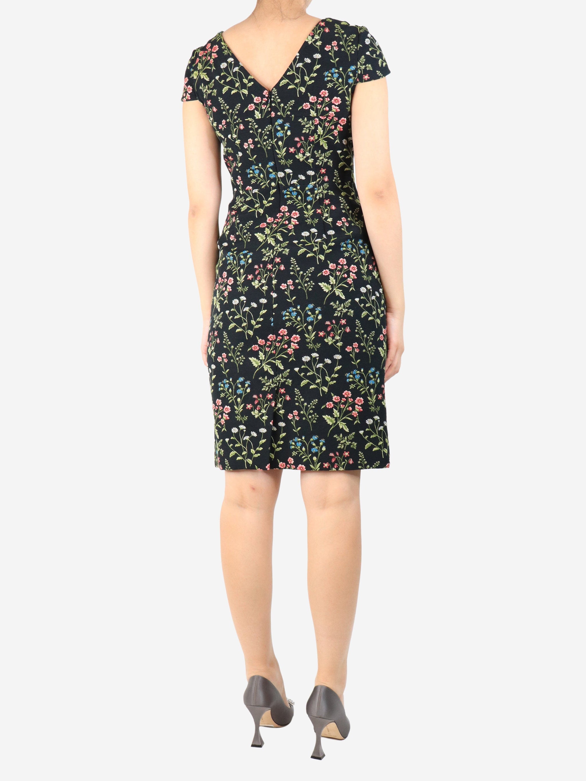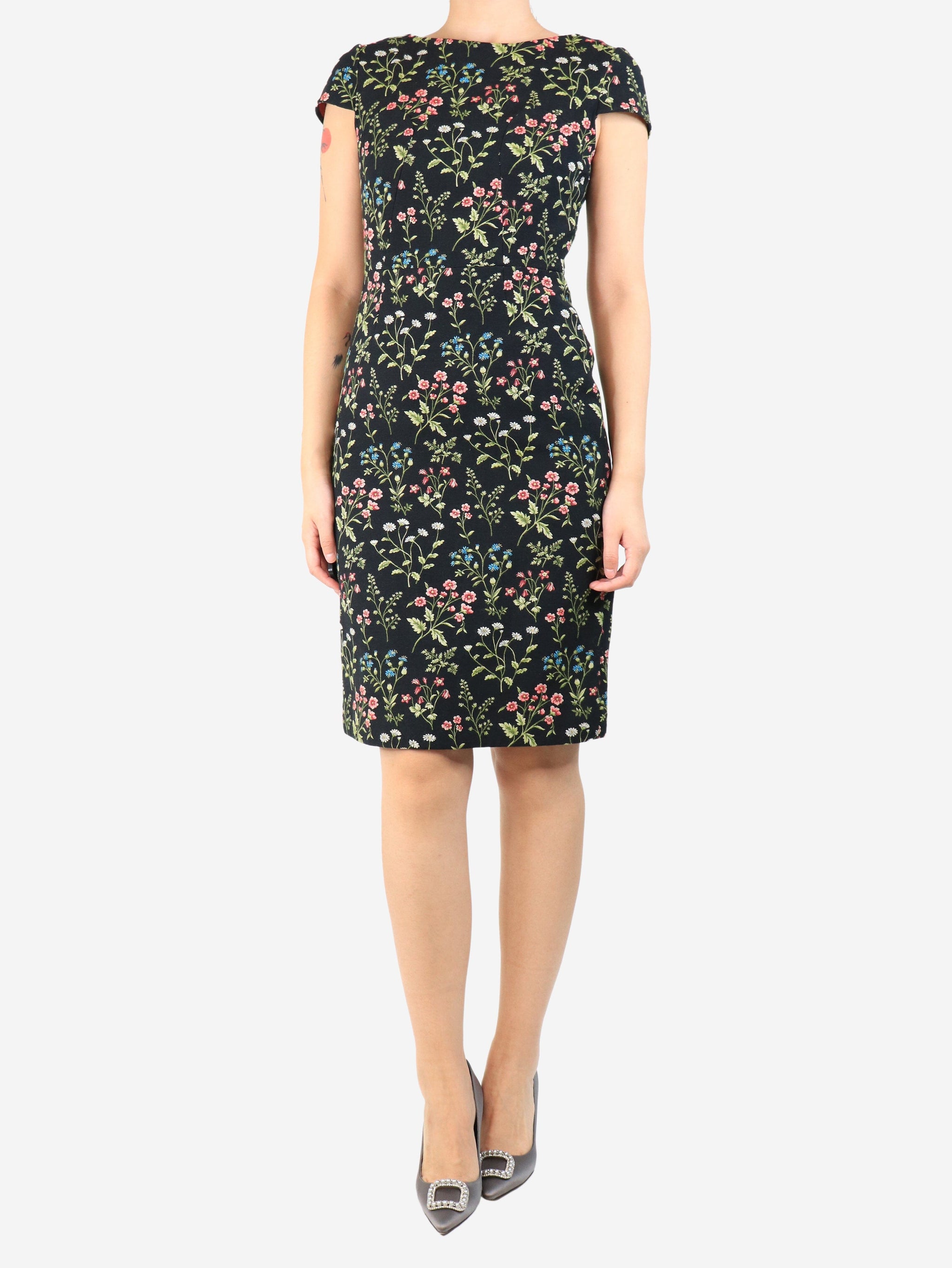Black Marion floral jacquard midi dress - size UK 10