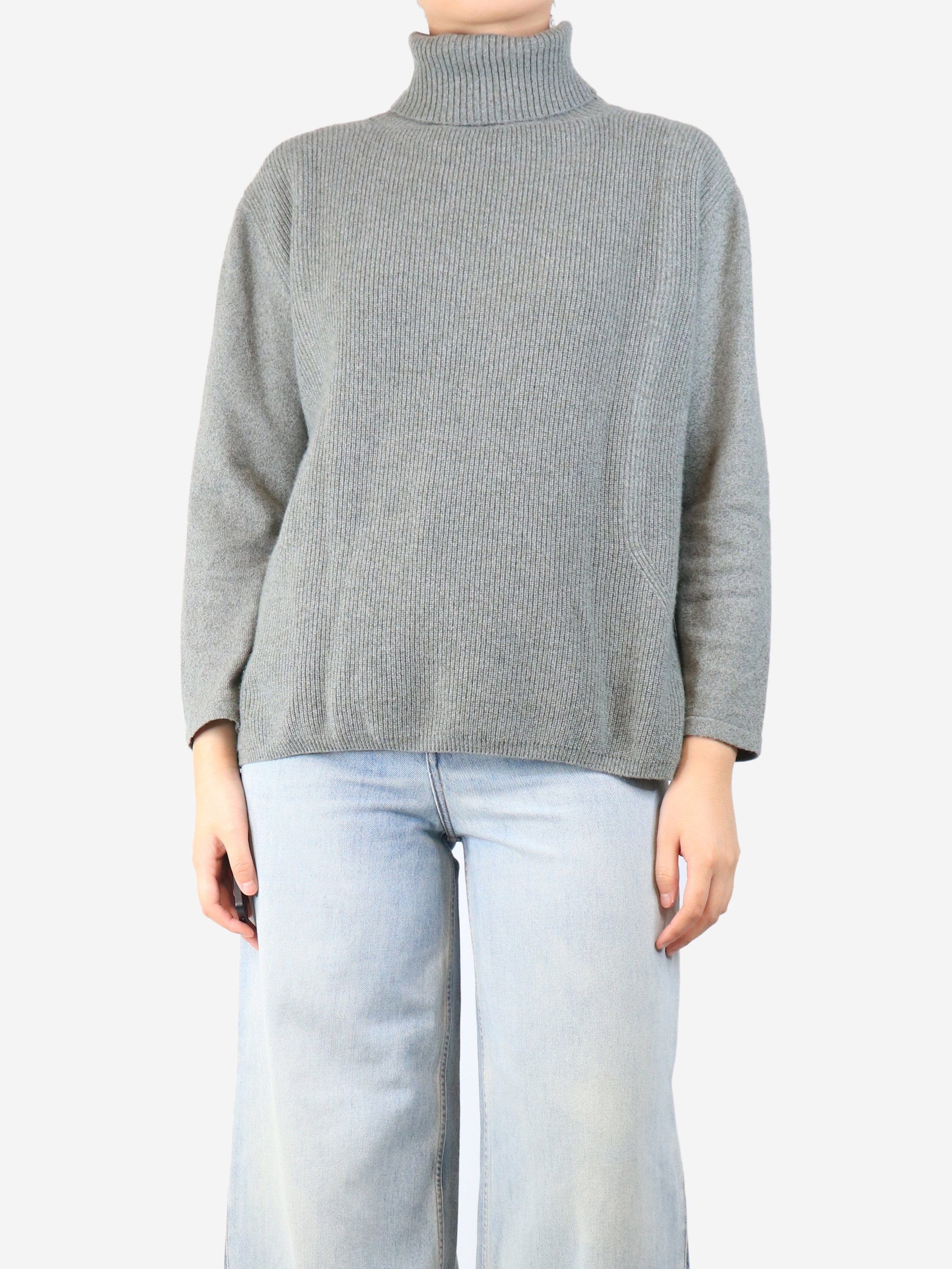 Green ribbed cashmere roll-neck jumper - size UK 16