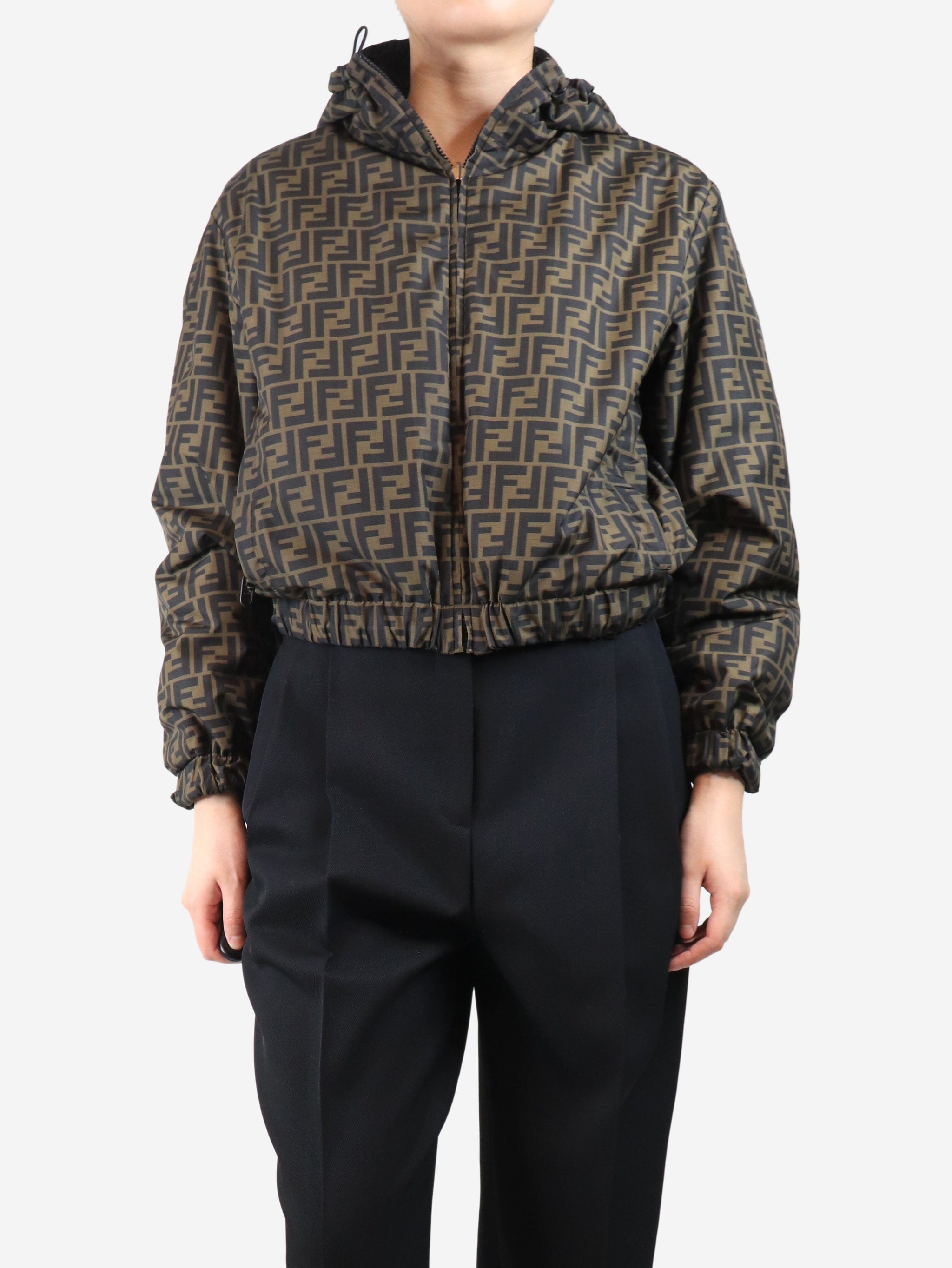 Brown reversible monogram windbreaker jacket - size S
