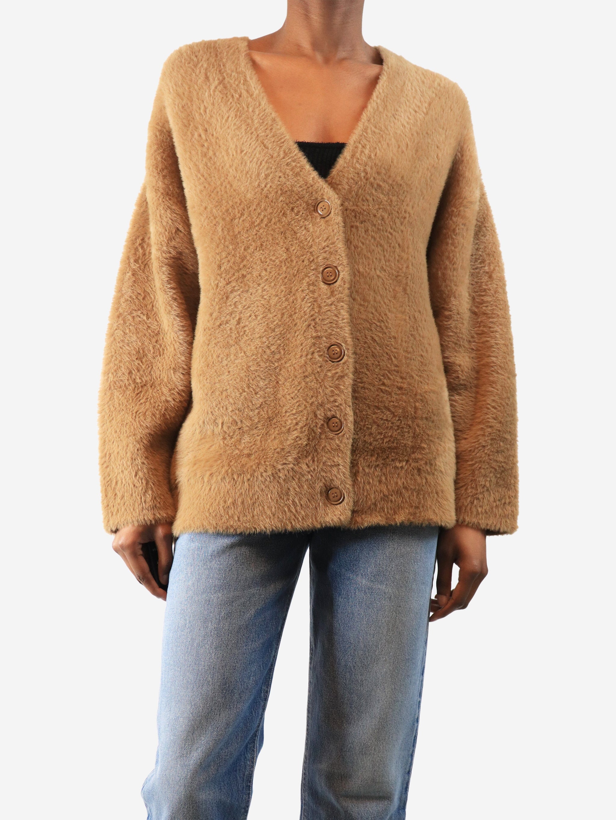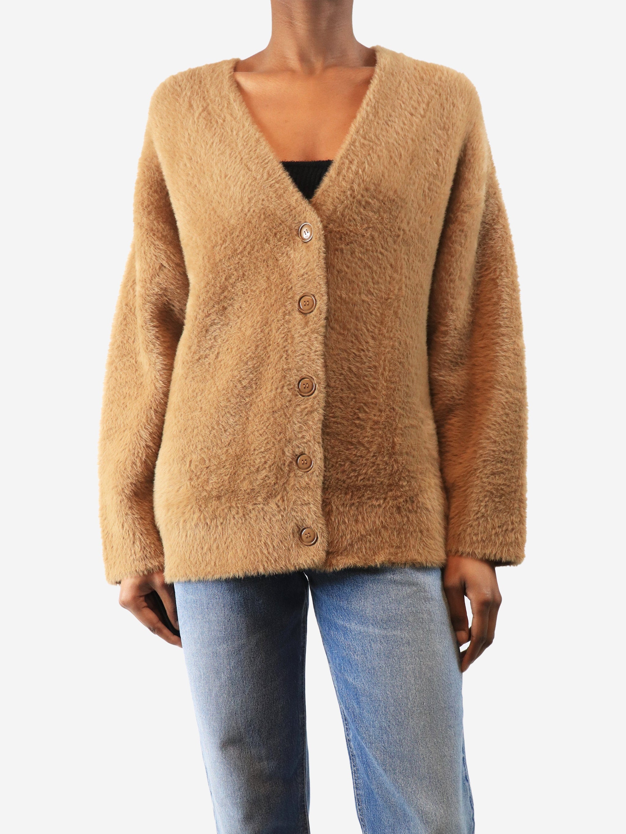 Camel brushed cardigan - size UK 6