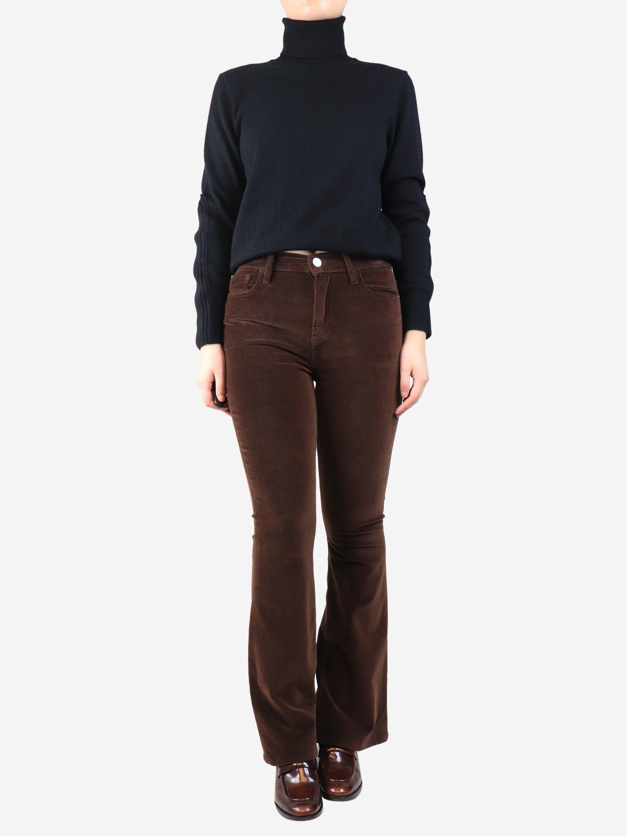 Brown velvet flared trousers - size UK 10