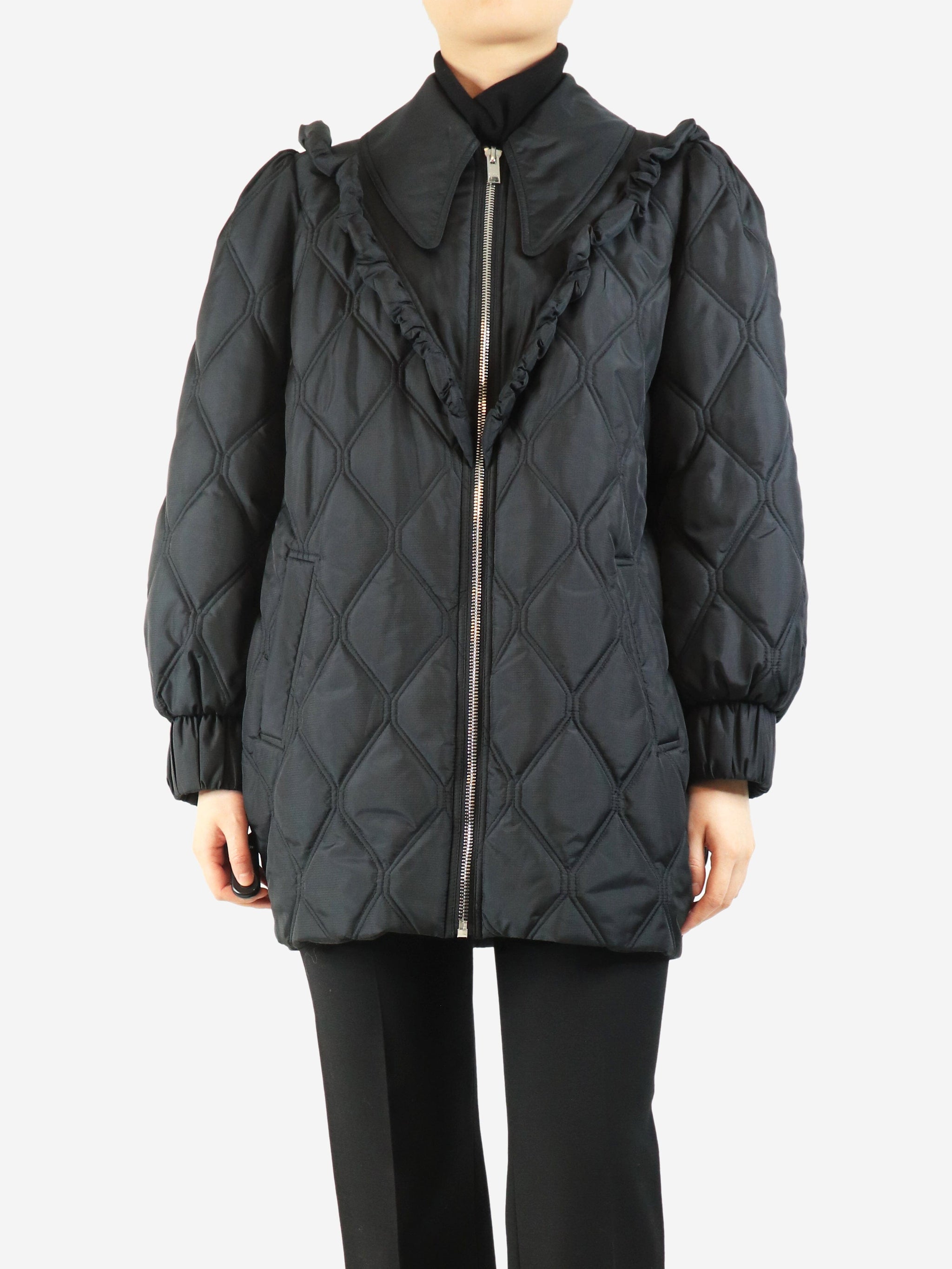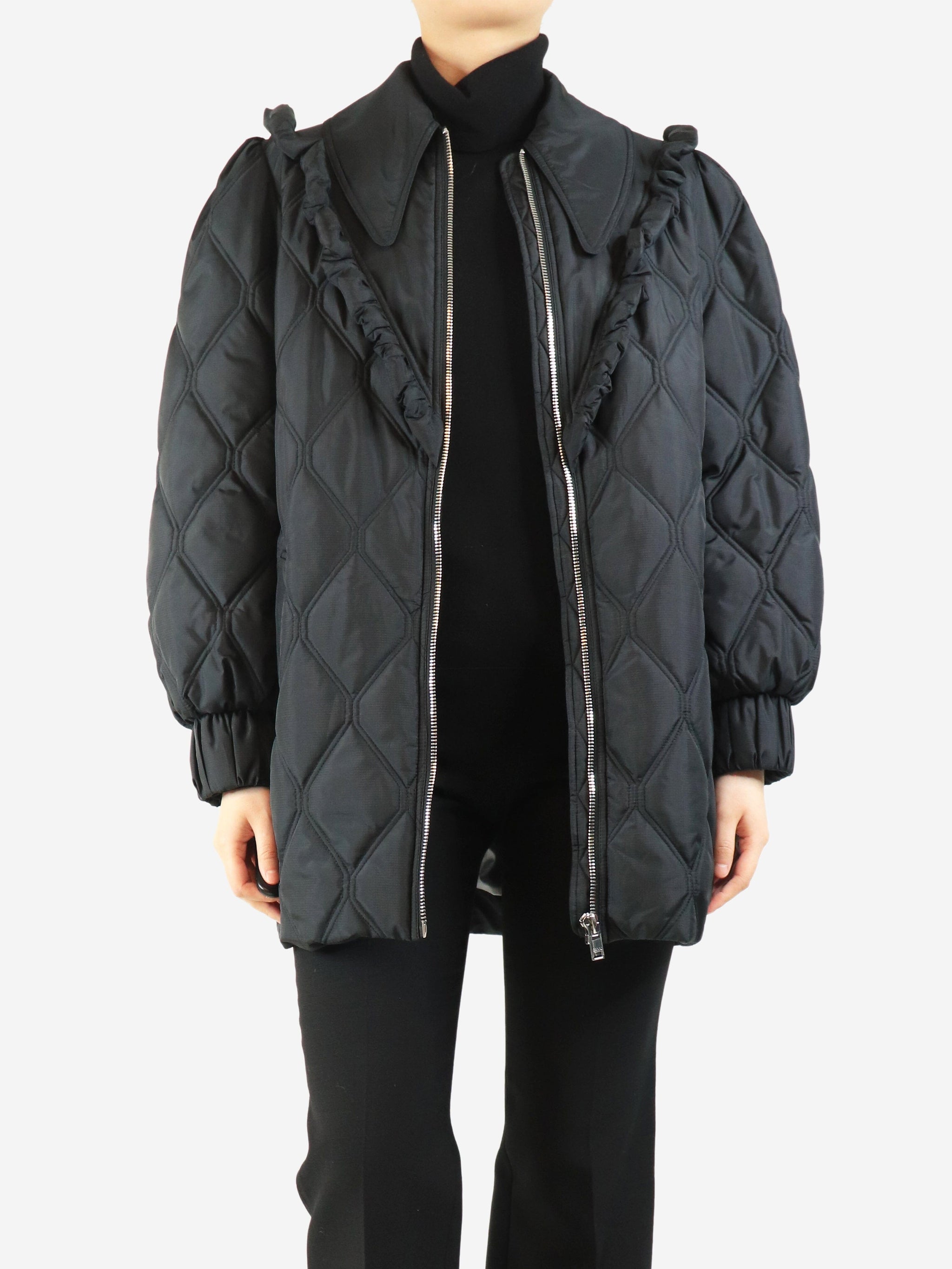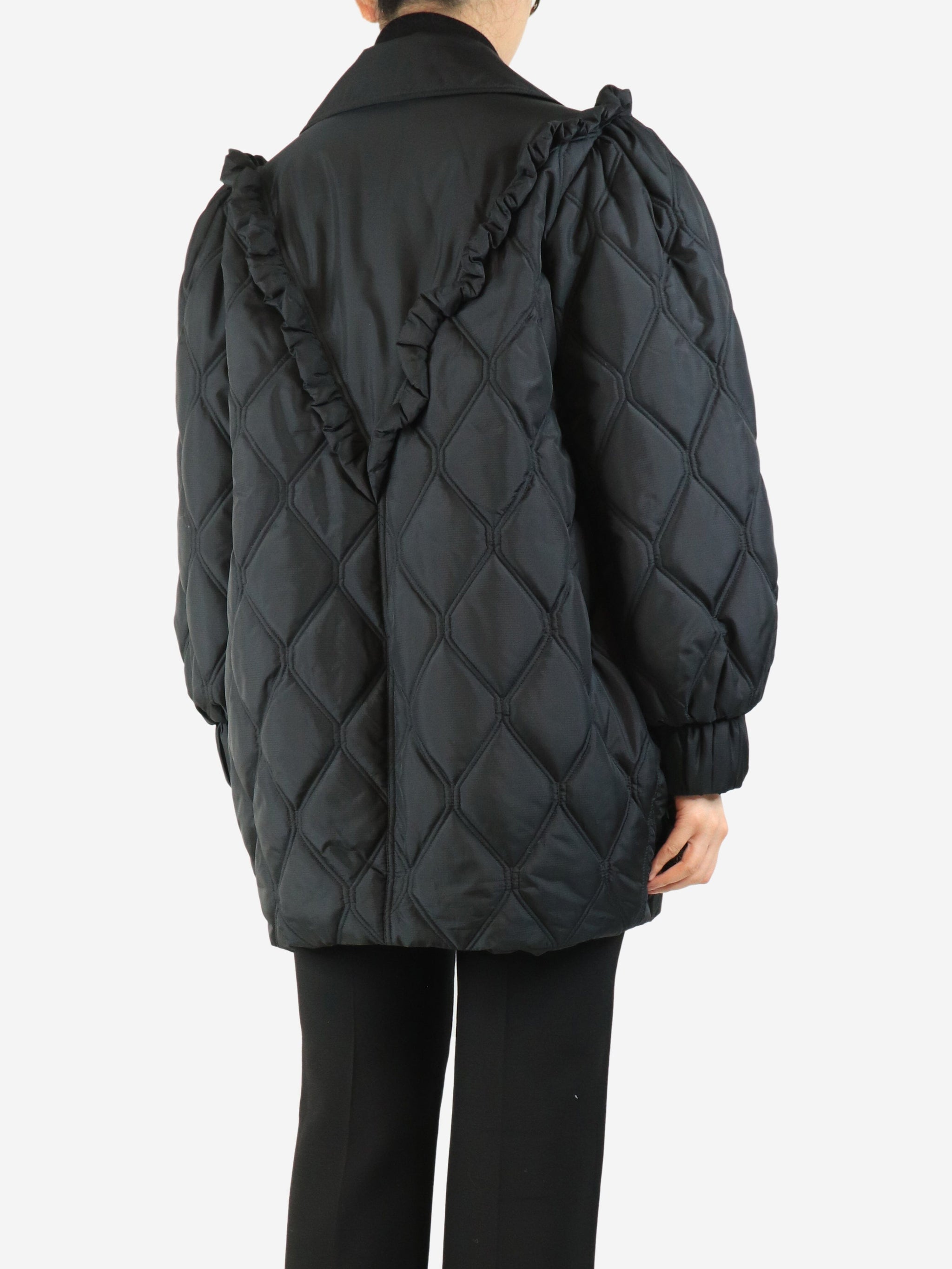 Black quilted frill jacket - size UK 10