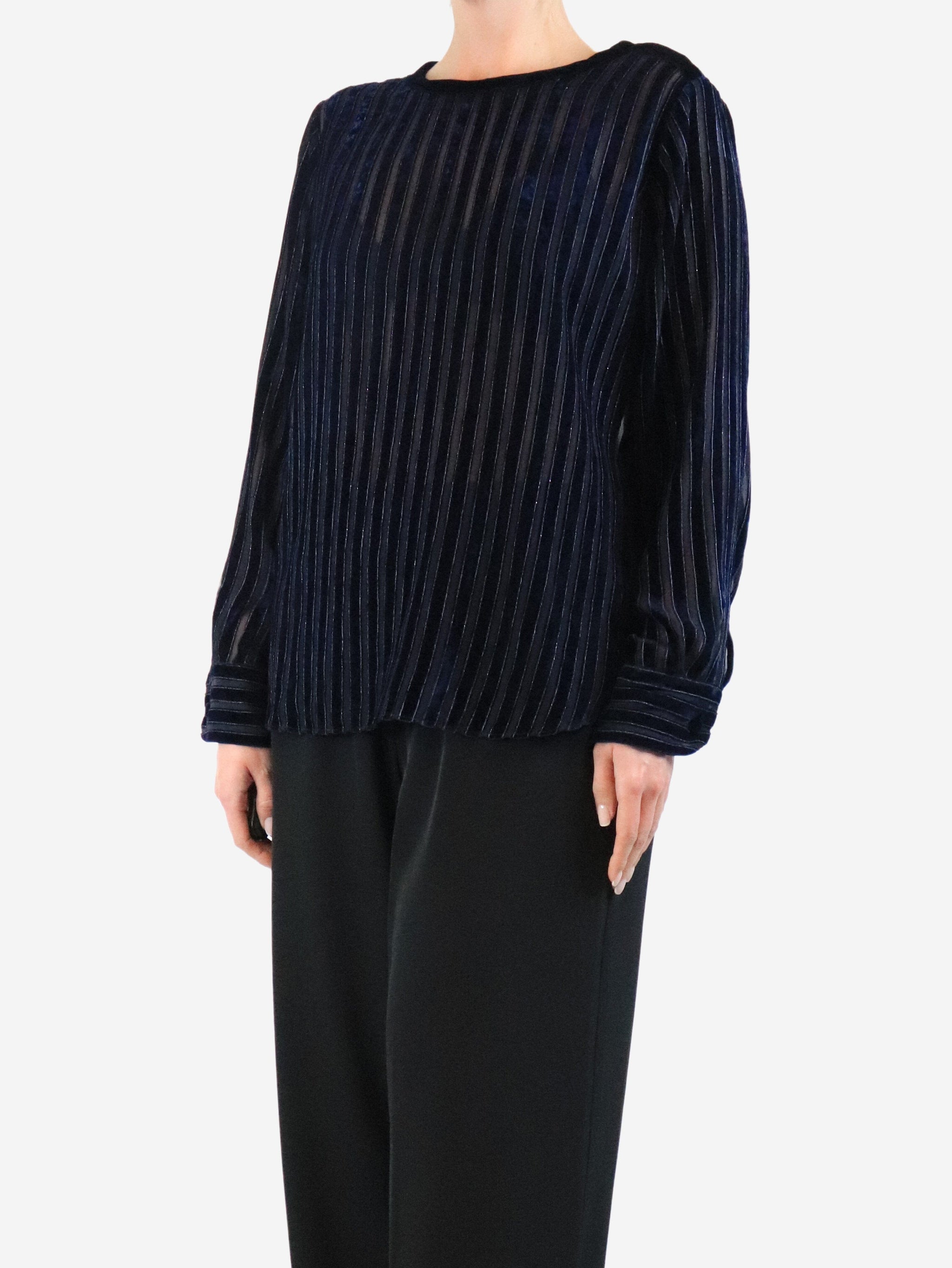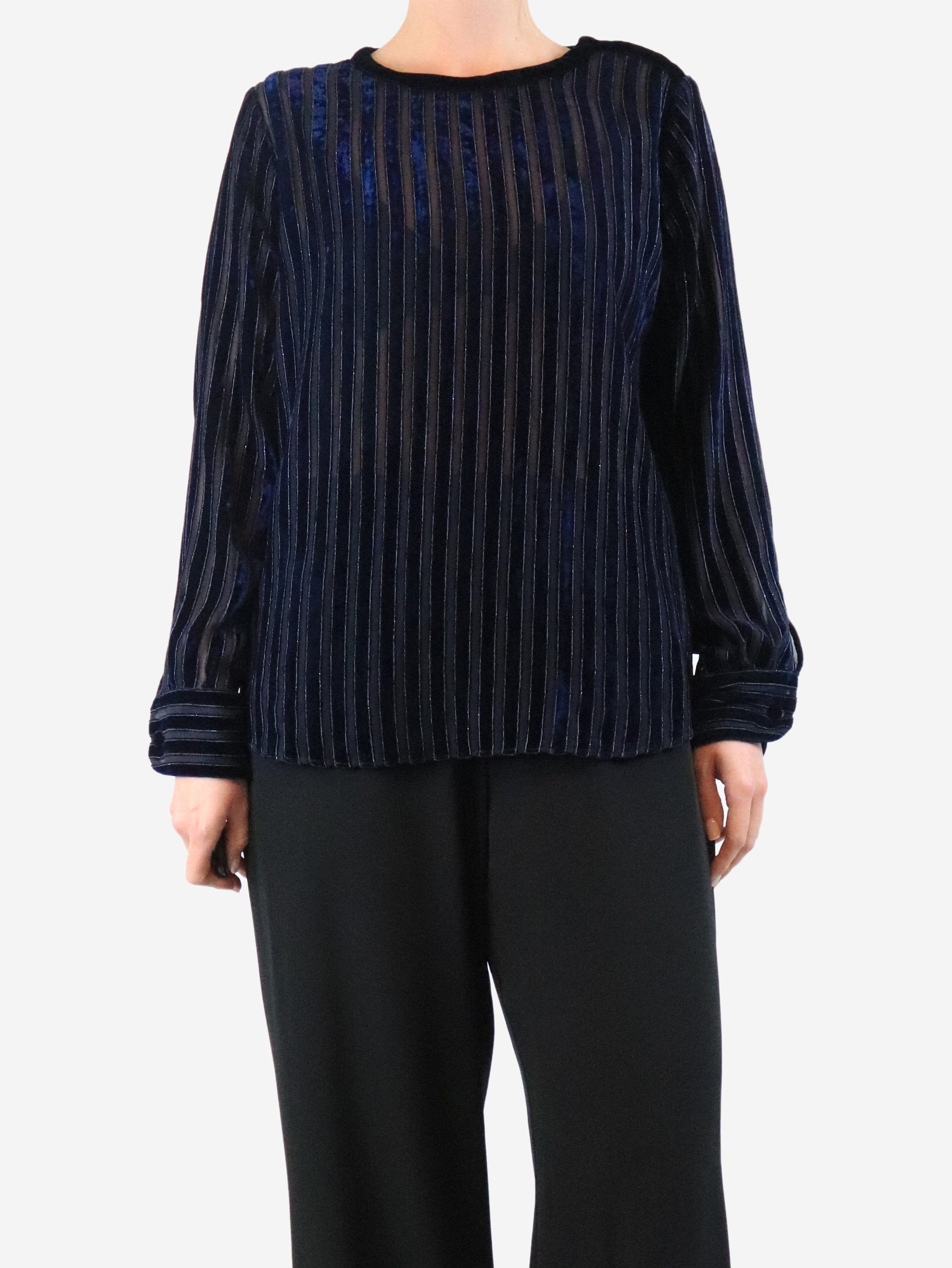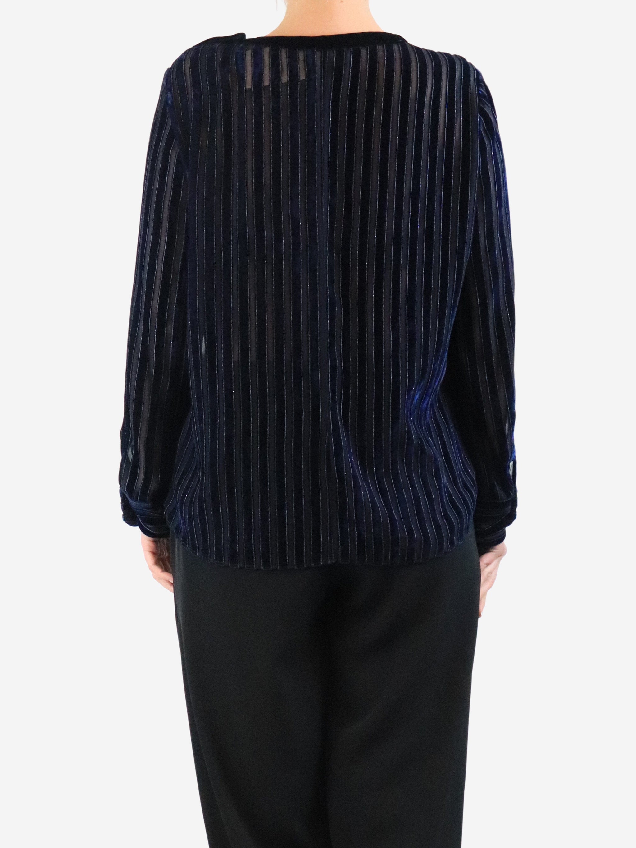 Blue velvet striped top - size UK 14