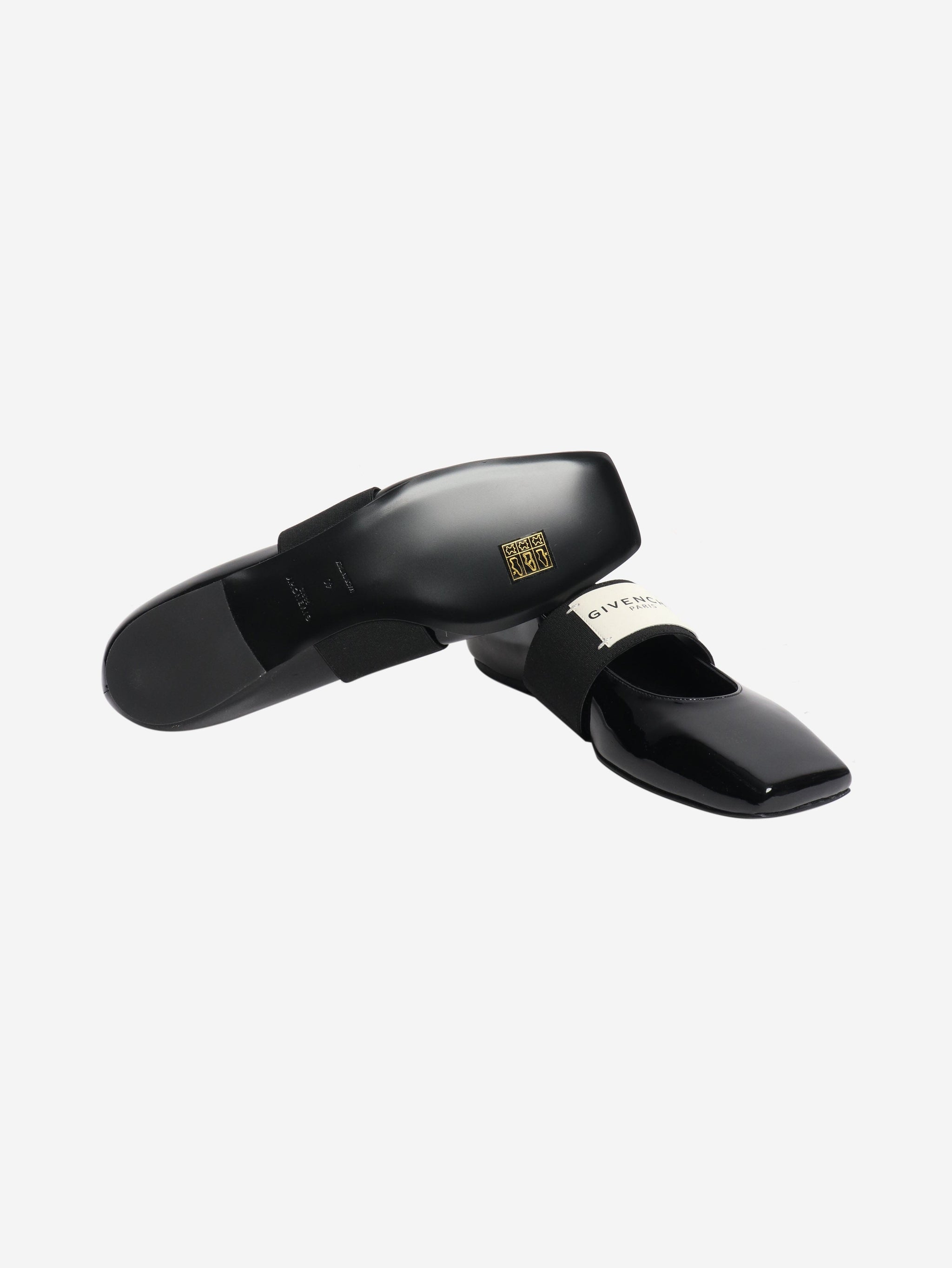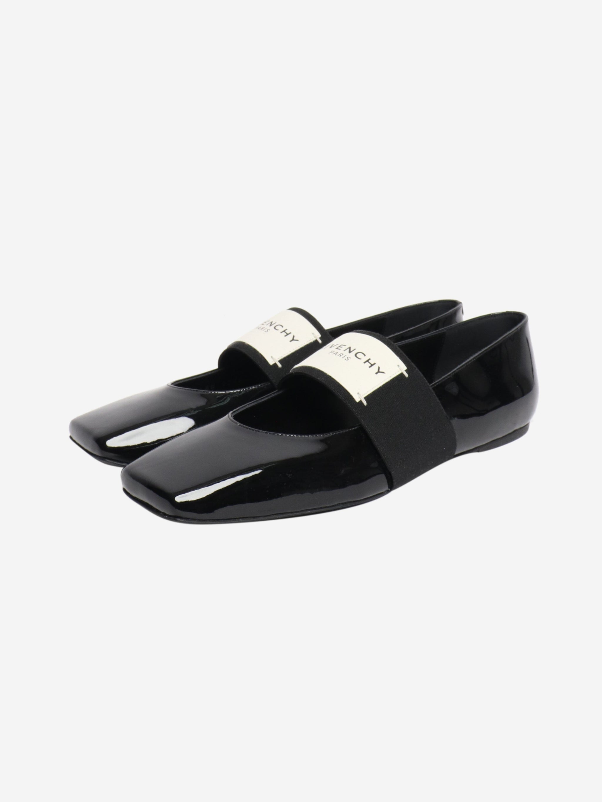 Black patent logo flats - size EU 40
