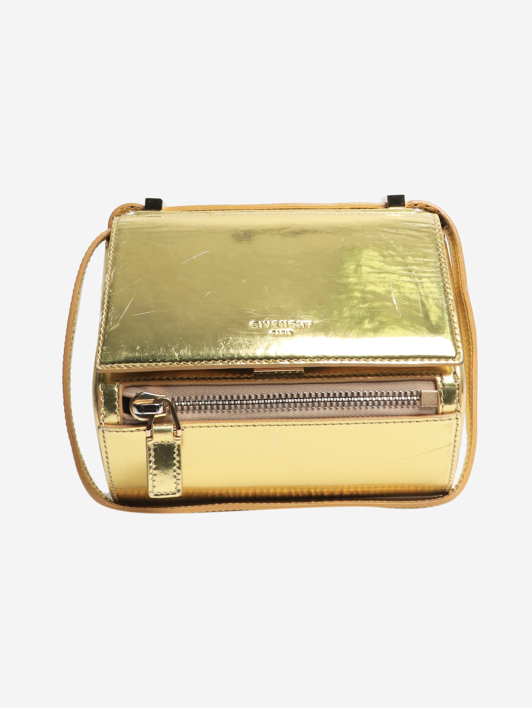 Gold metallic leather shoulder bag