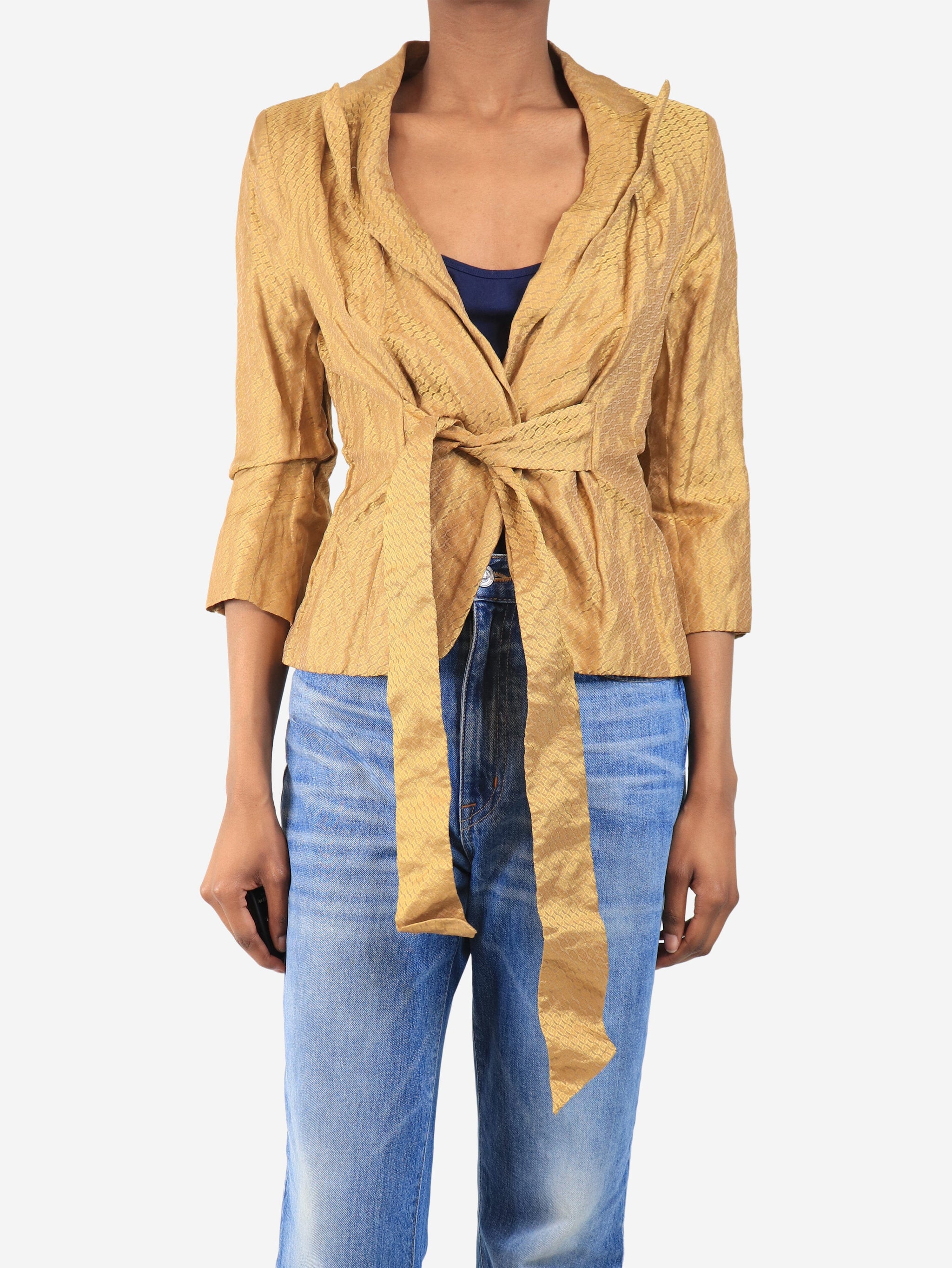 Gold metallic wrap blazer - size UK 8
