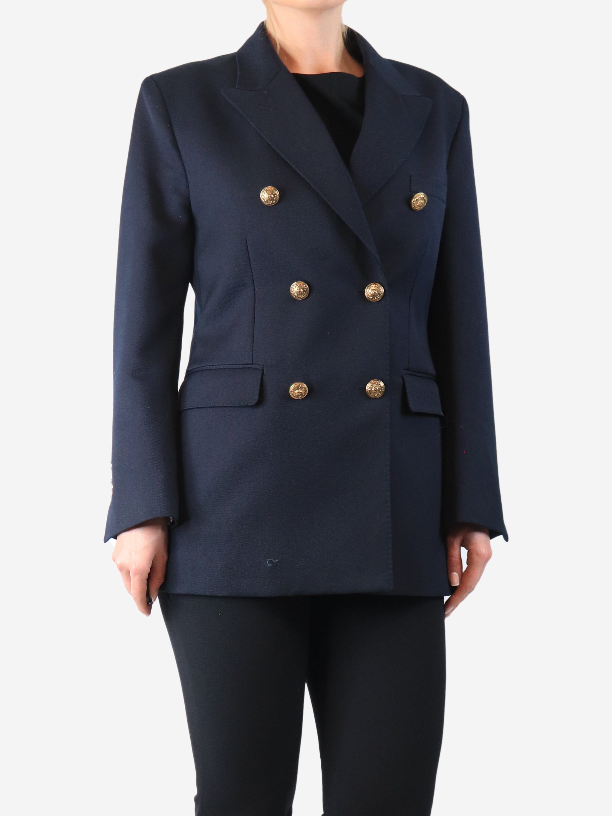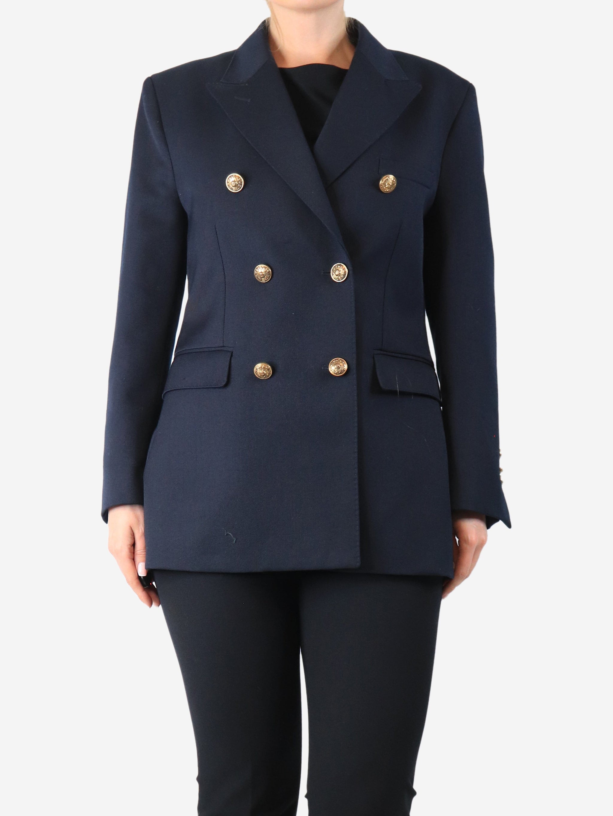 Navy double-breasted blazer - size UK 10