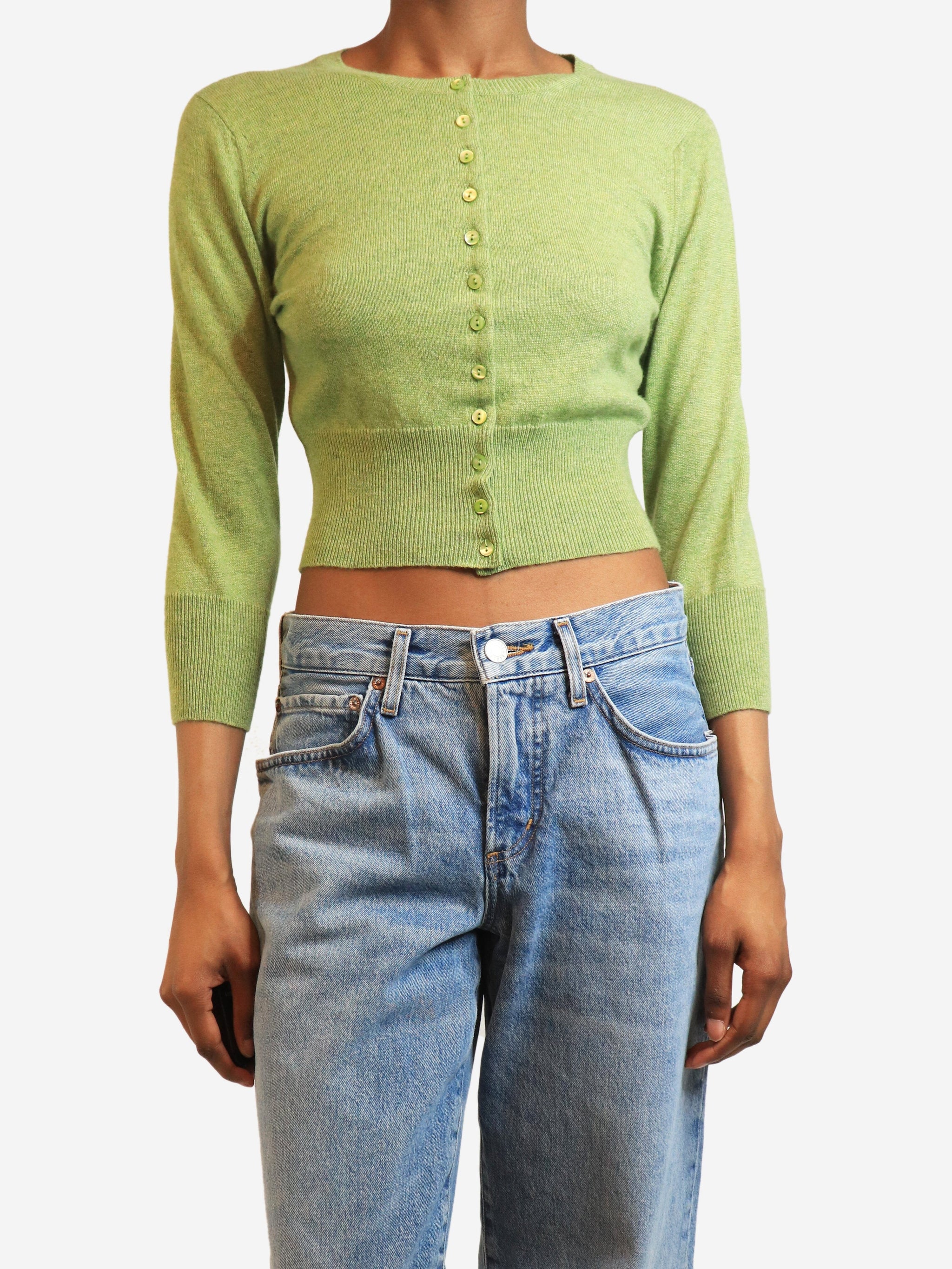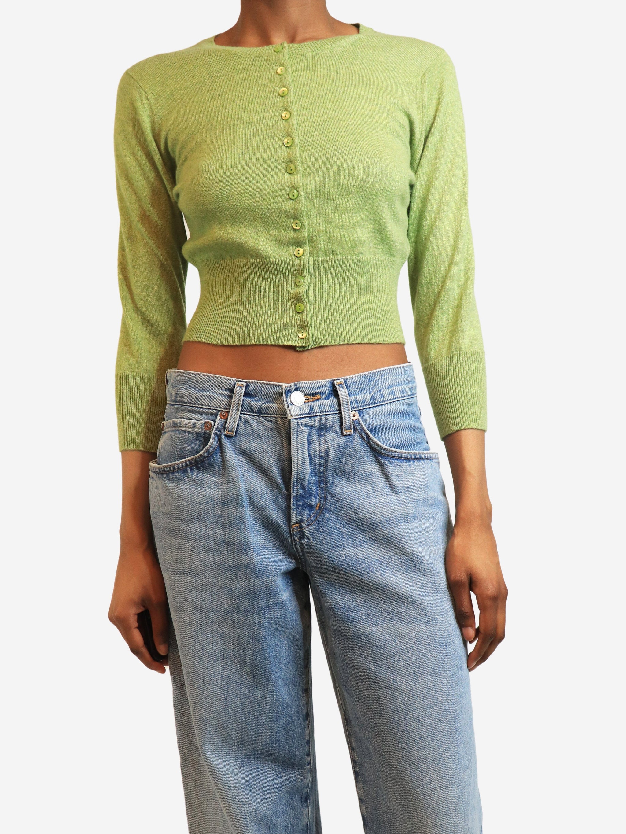 Green cashmere cardigan - size UK 10