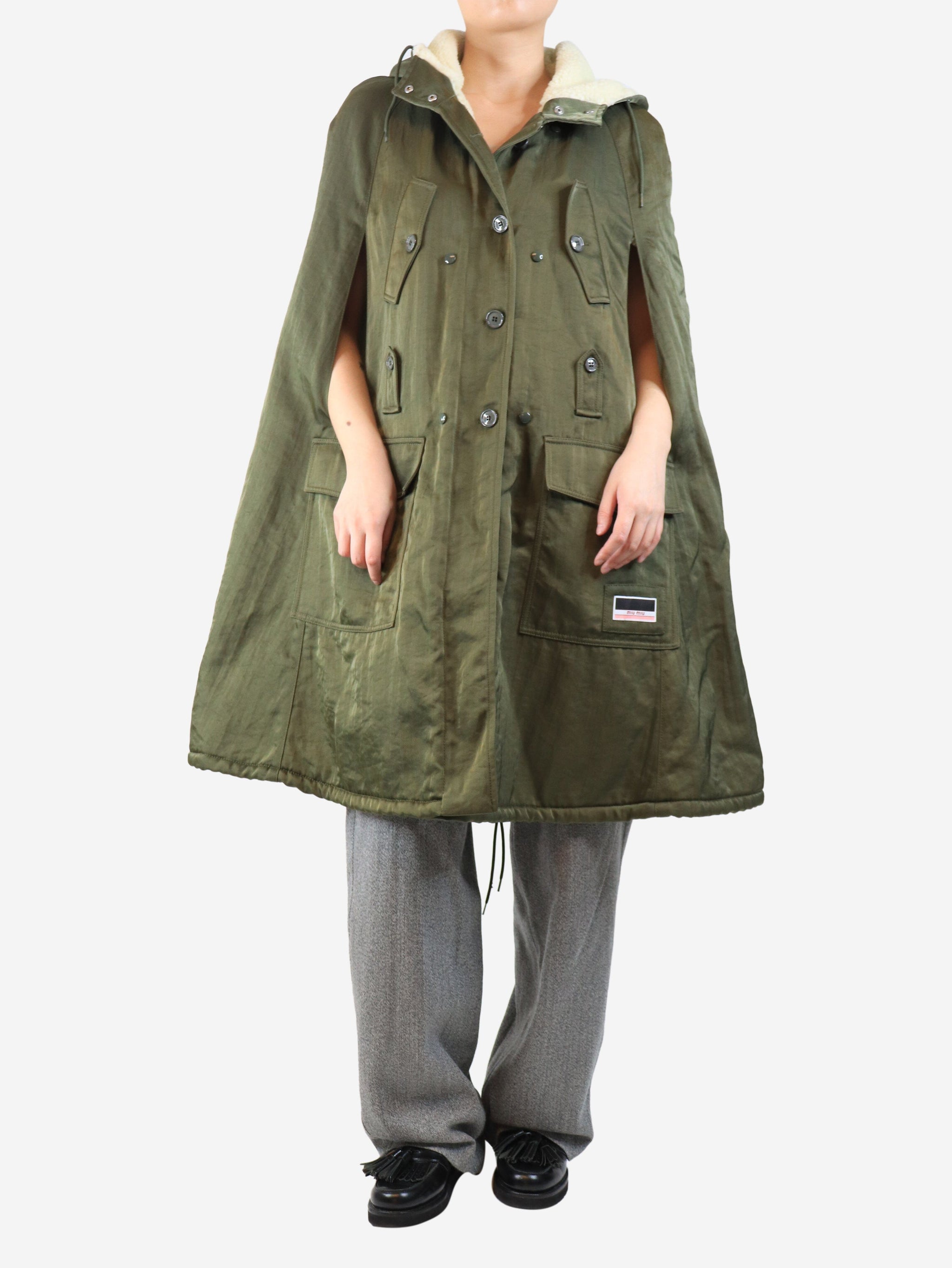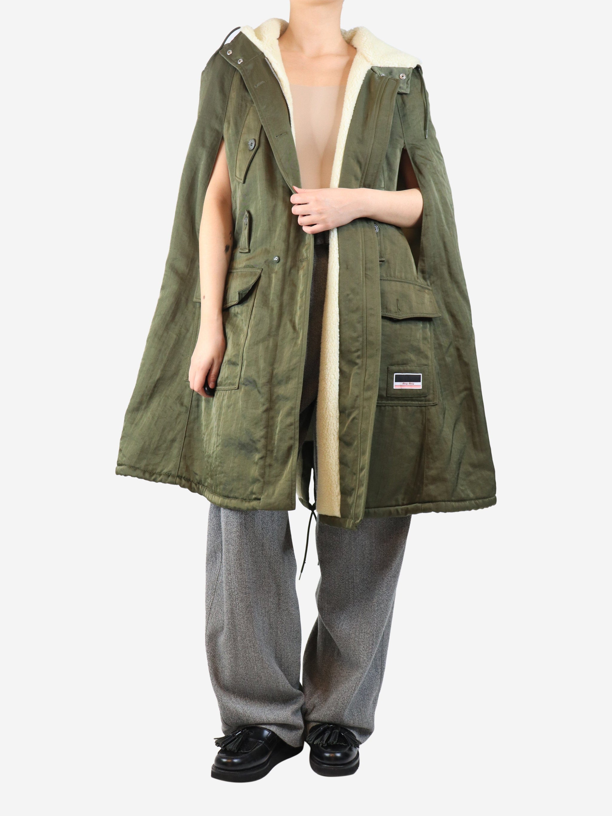 Green sleeveless sherpa-lined parka - size UK 8
