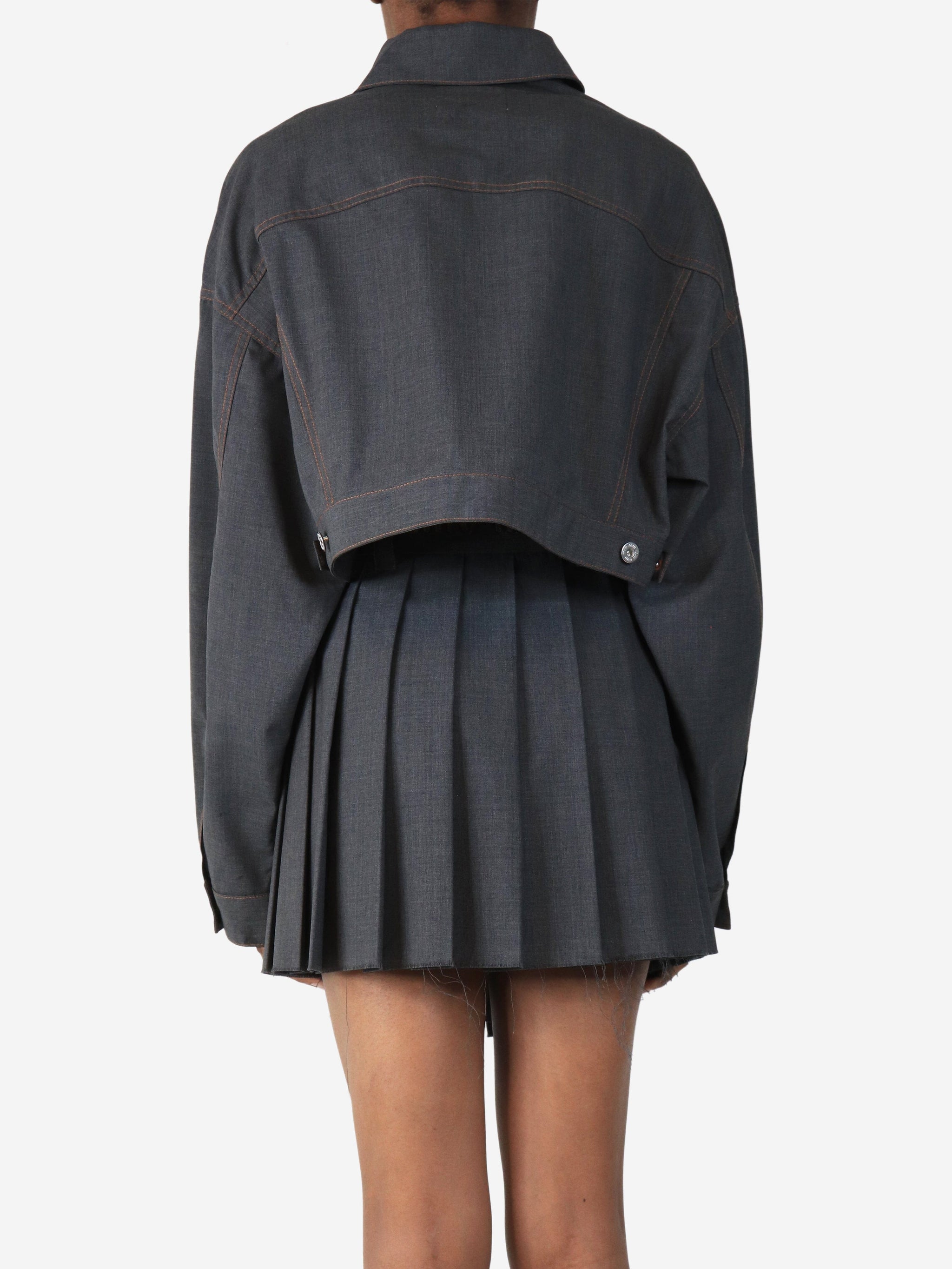 Grey cropped jacket with orange stitching - size UK 6