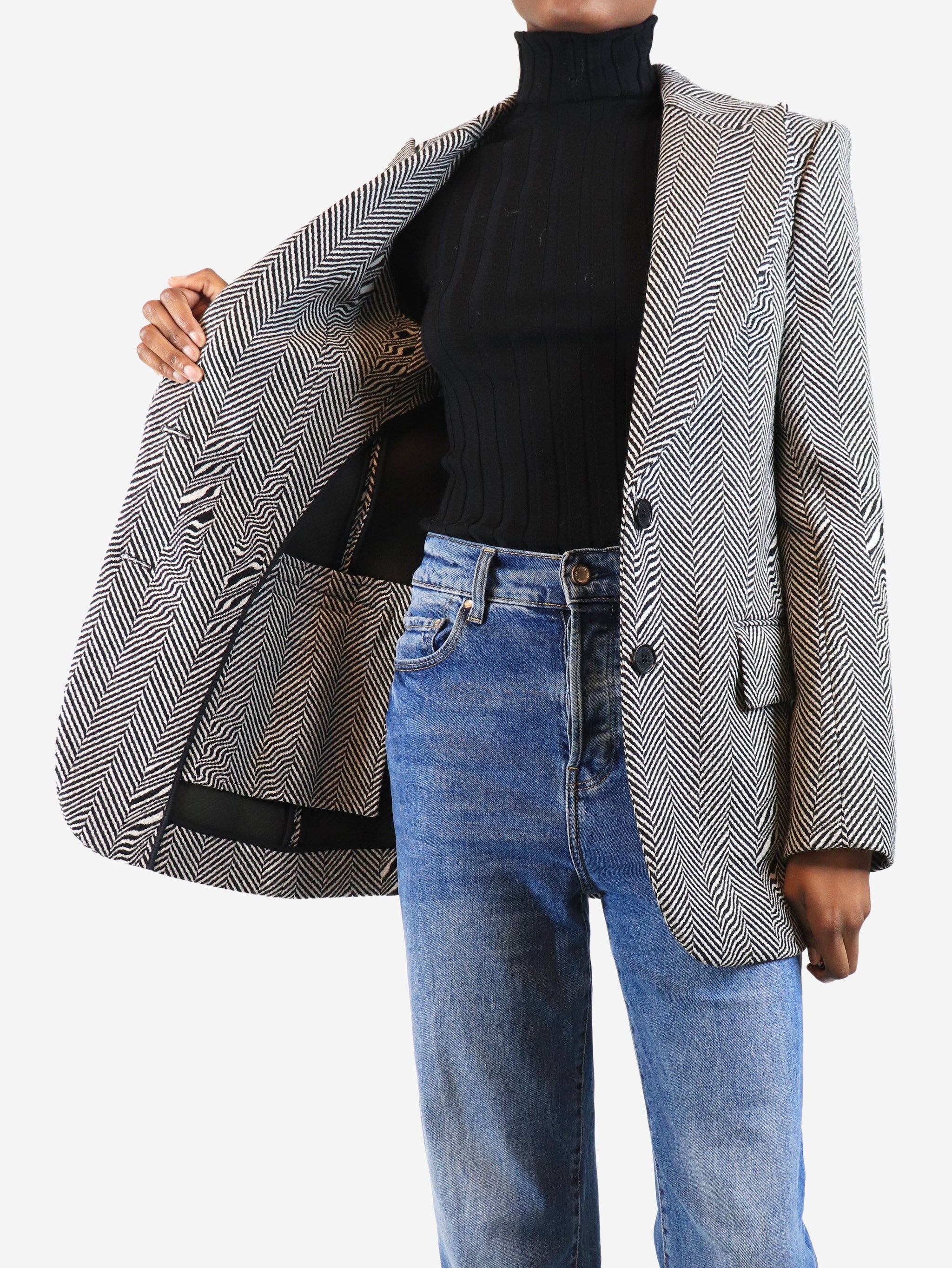 Grey herringbone coat - size UK 6
