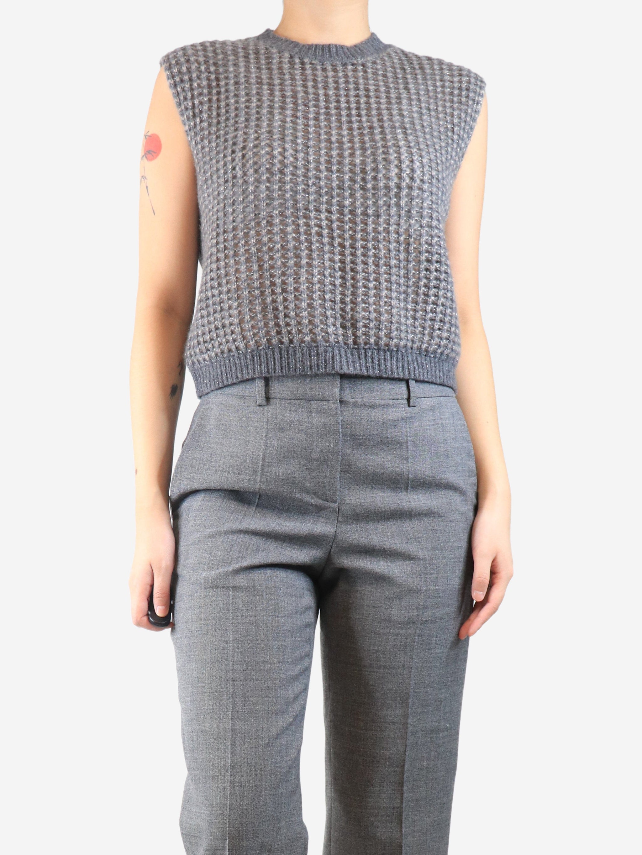 Grey loose-knit cashmere vest - size UK 8