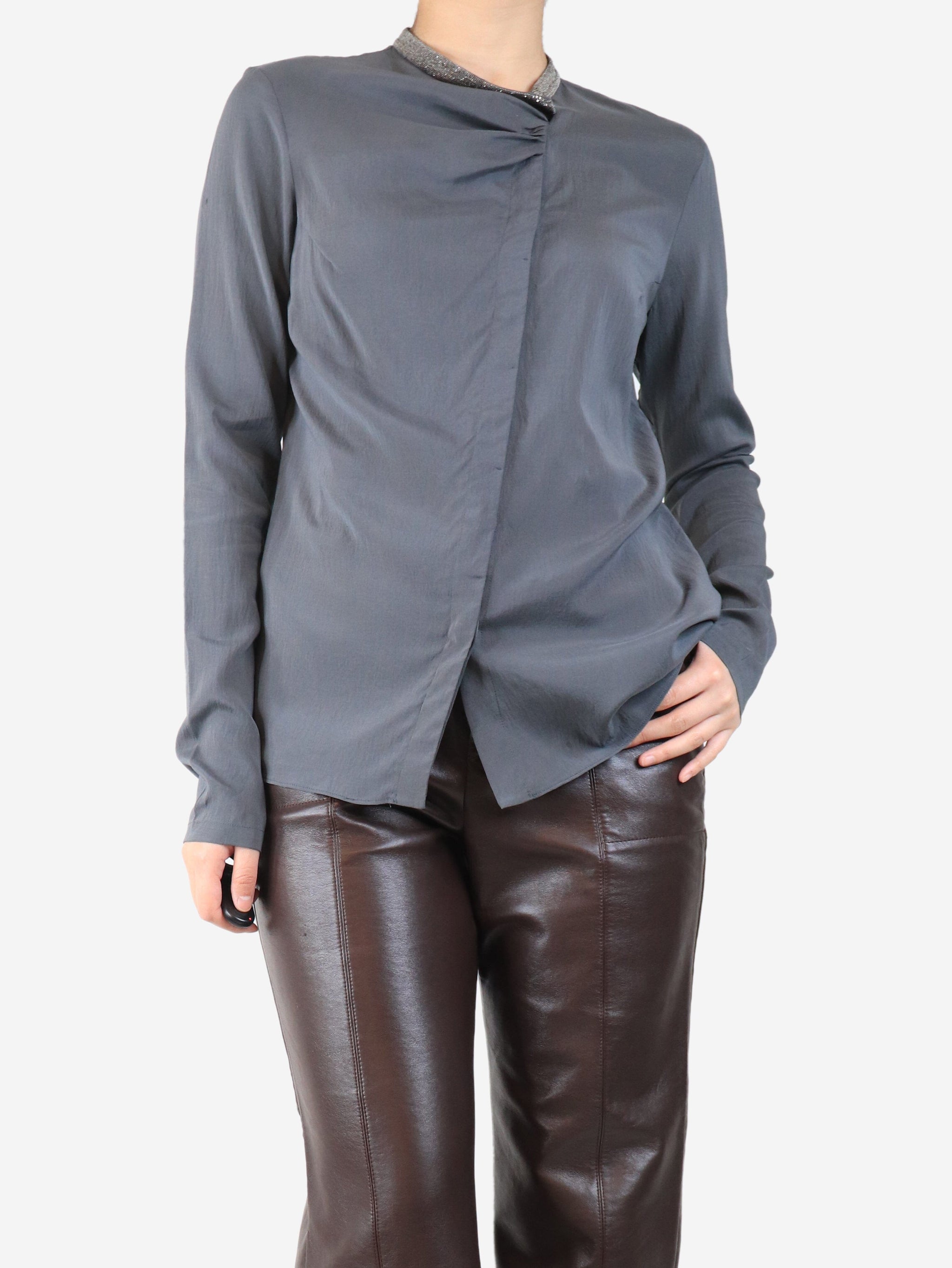 Grey silk blouse - size L