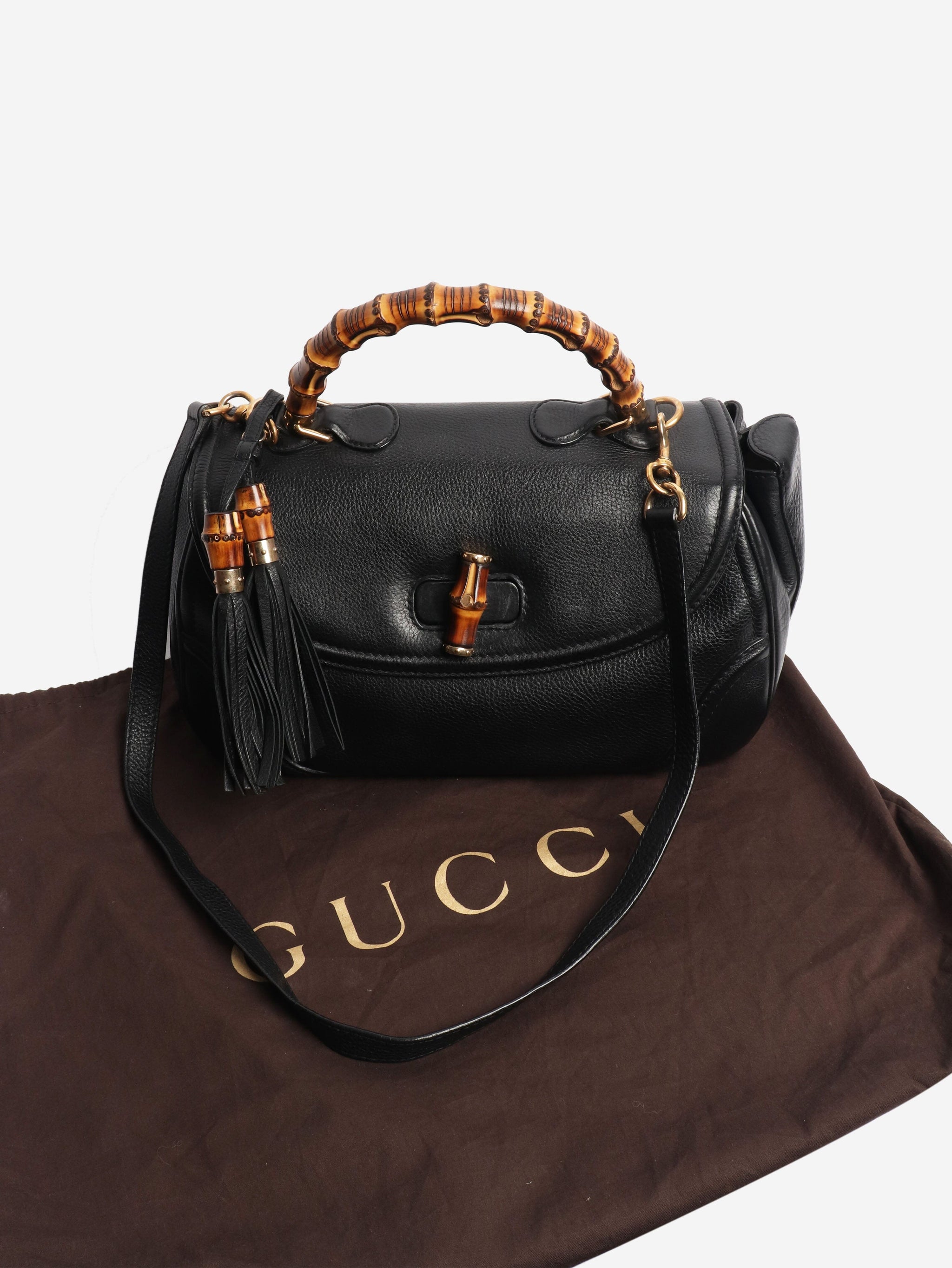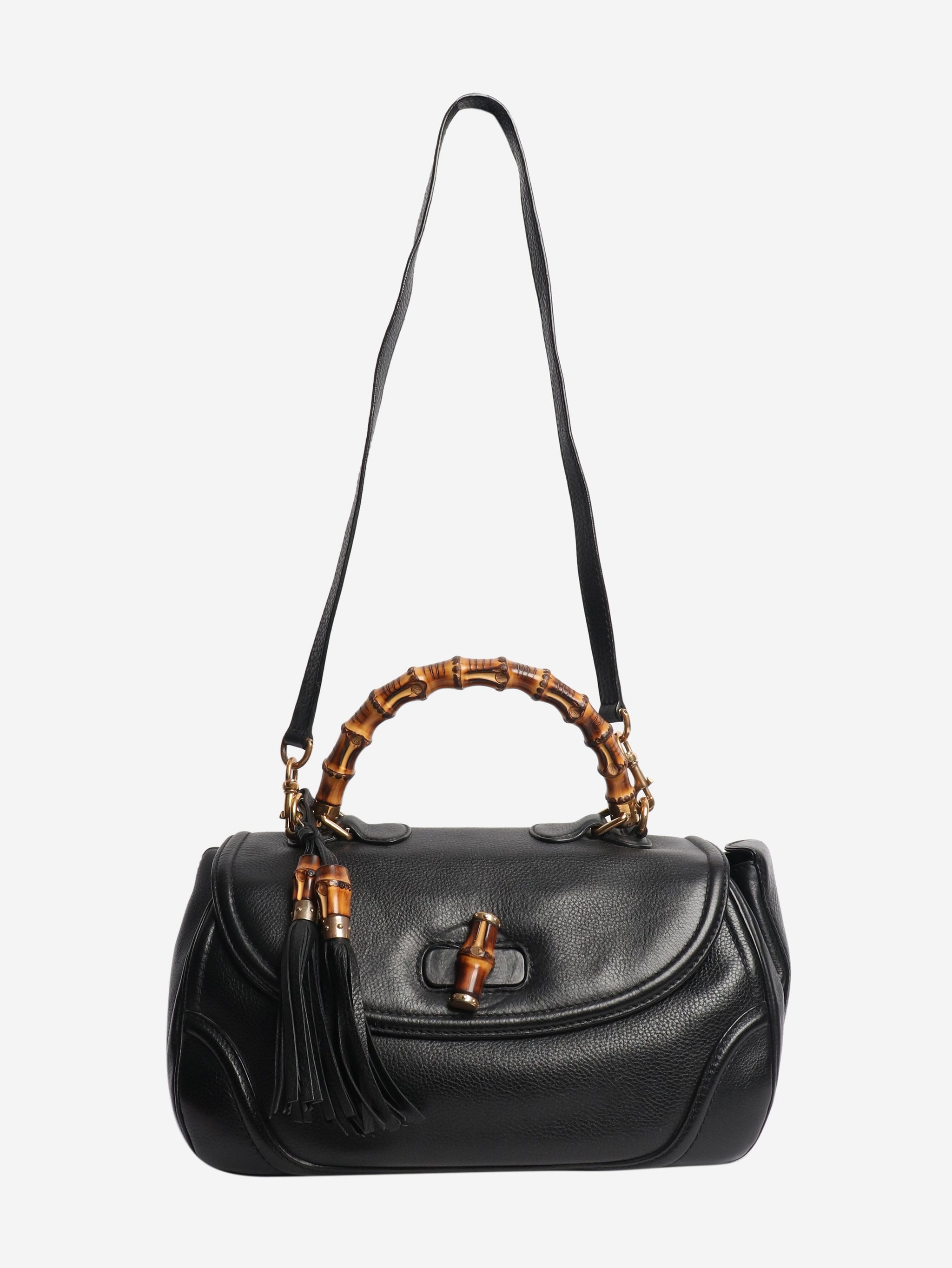 Black bamboo top handle bag