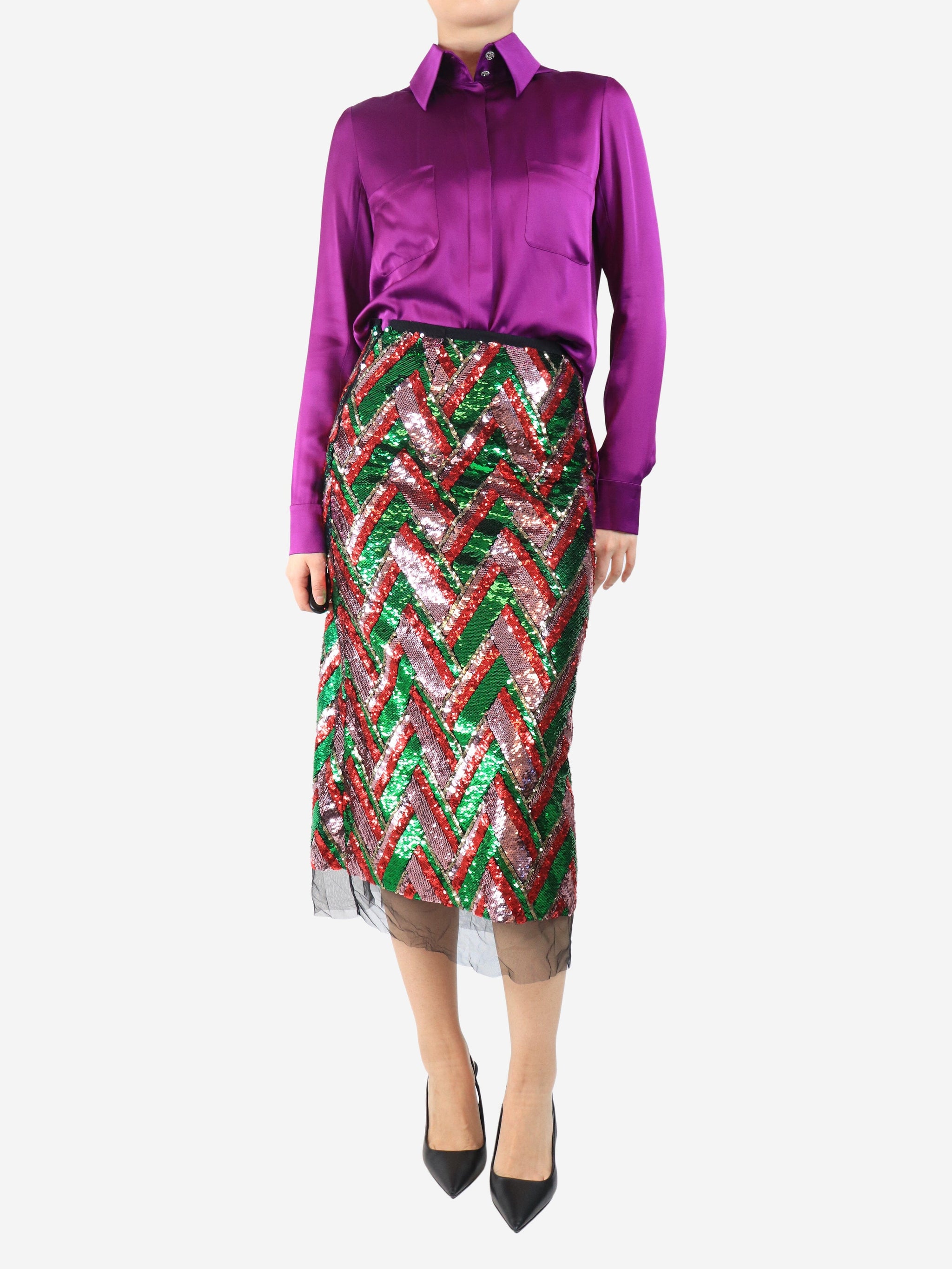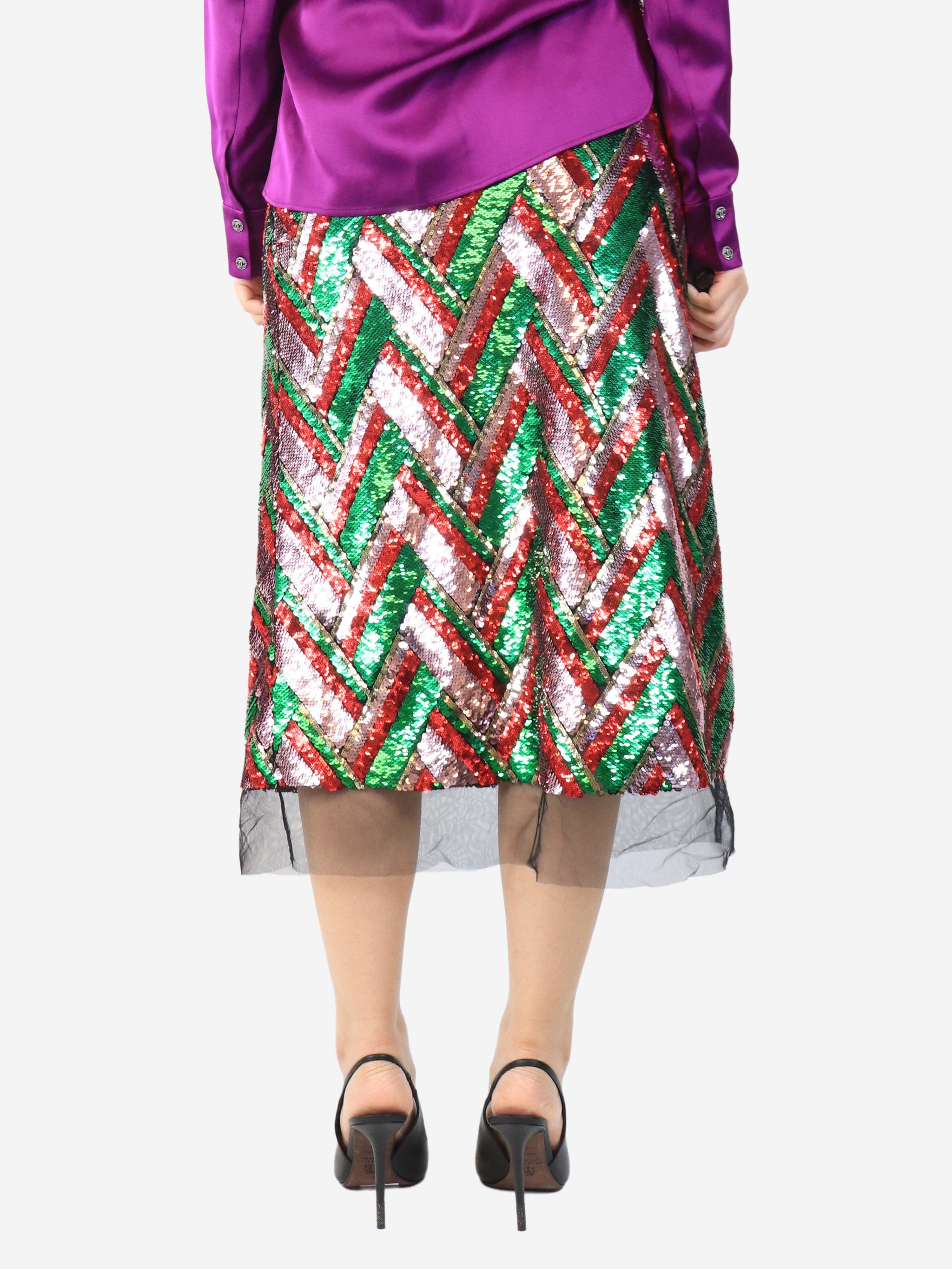 Green and pink sequin chevron skirt - size UK 10