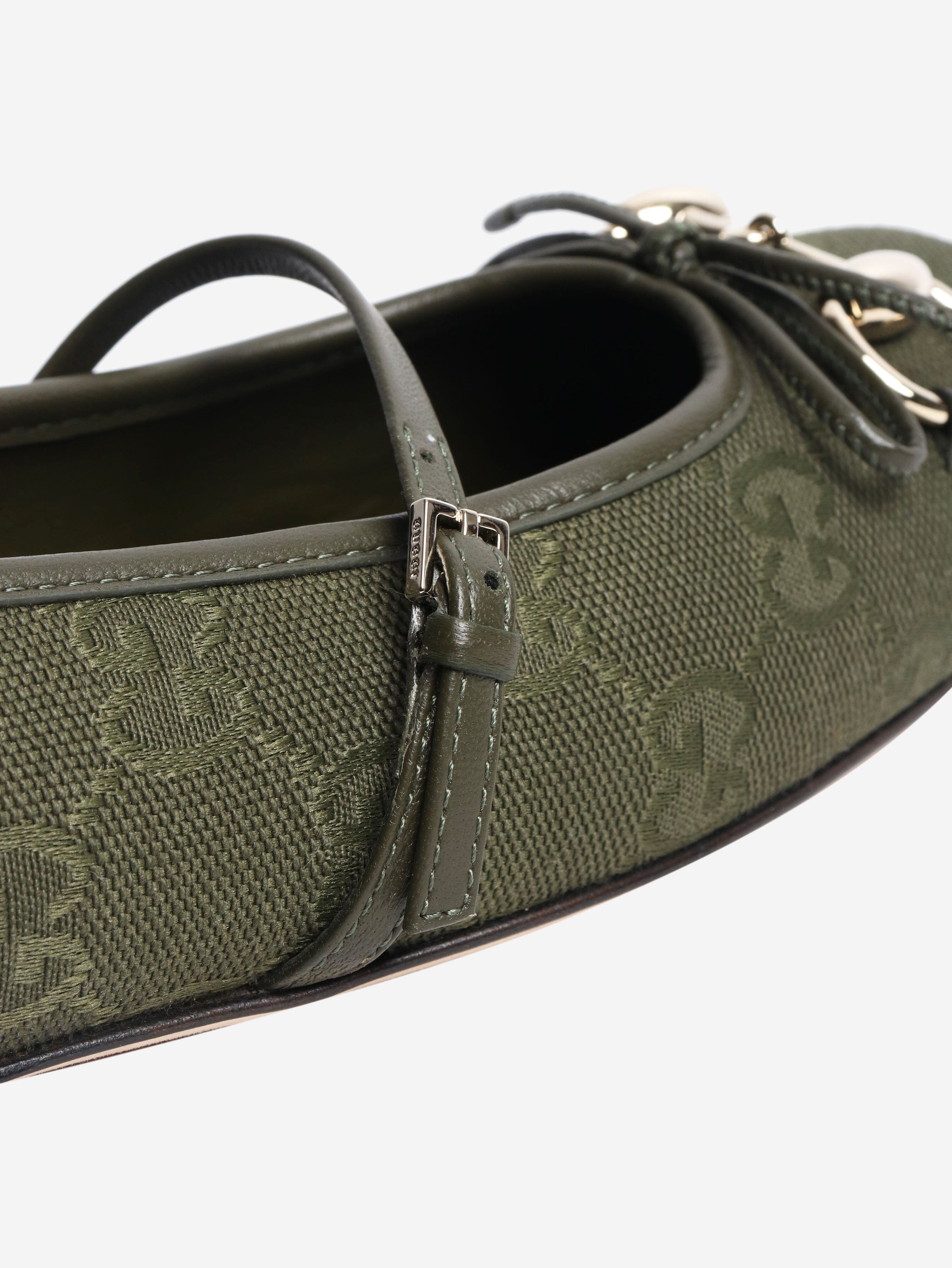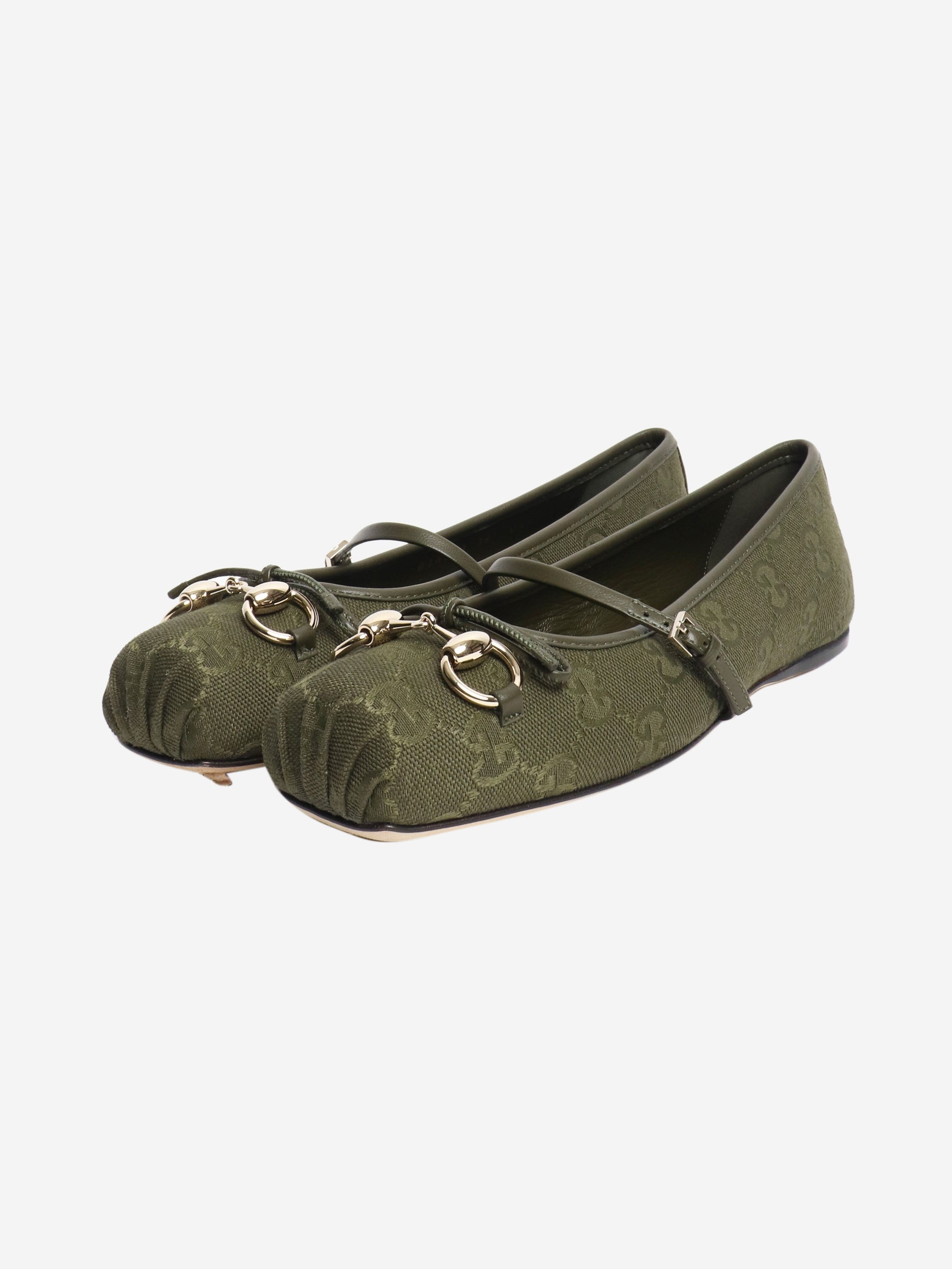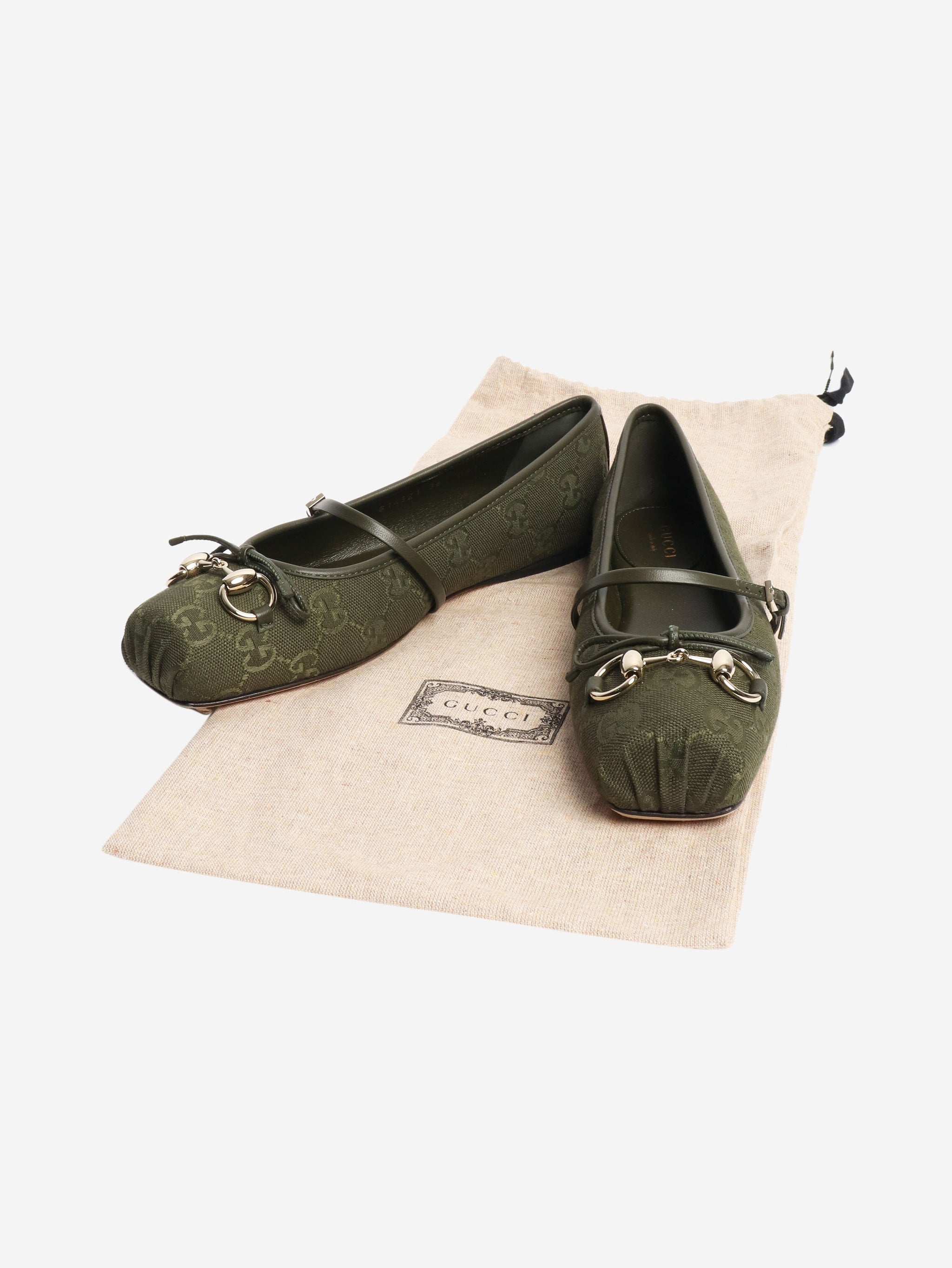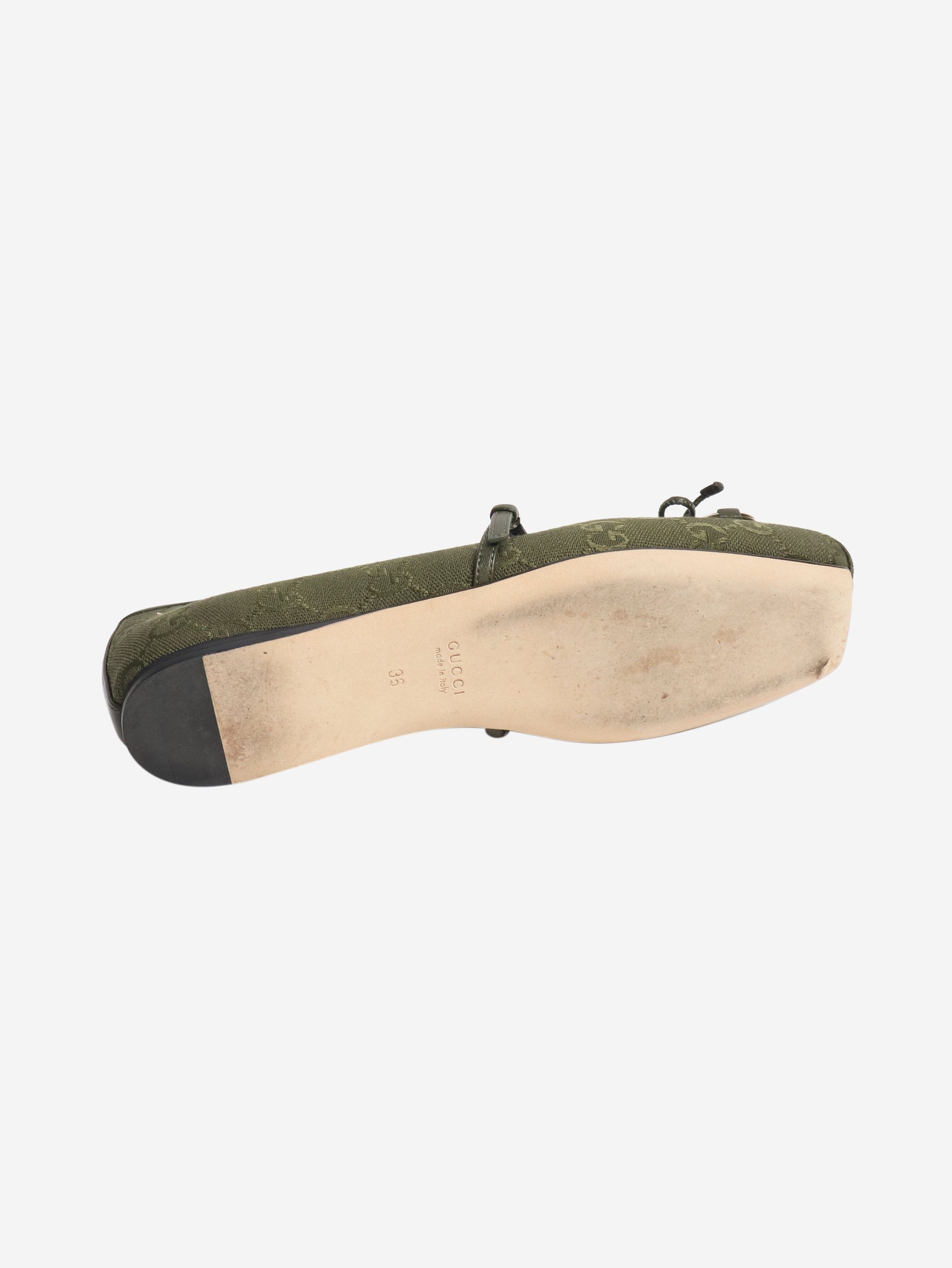 Khaki Horsebit GG canvas ballet flats - size EU 36