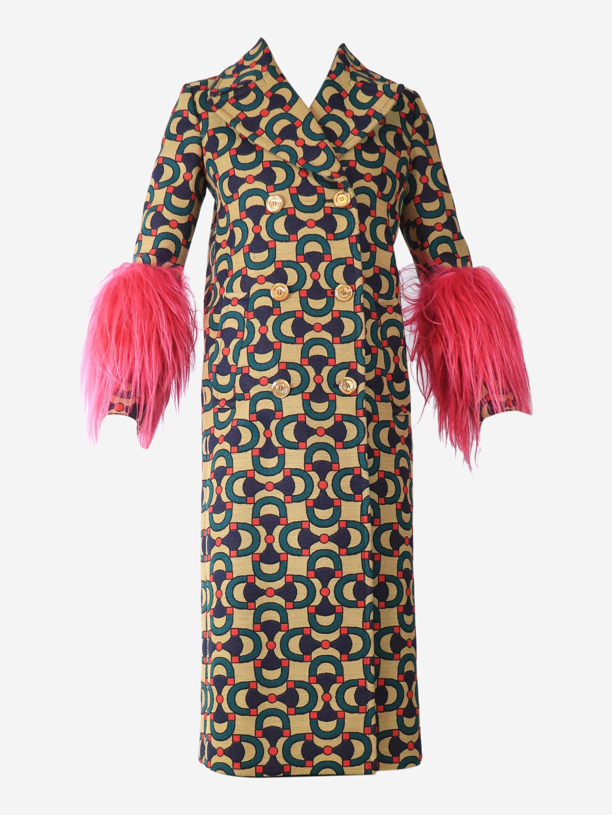 Neutral double-breasted Horsebit jacquard coat - size UK 6