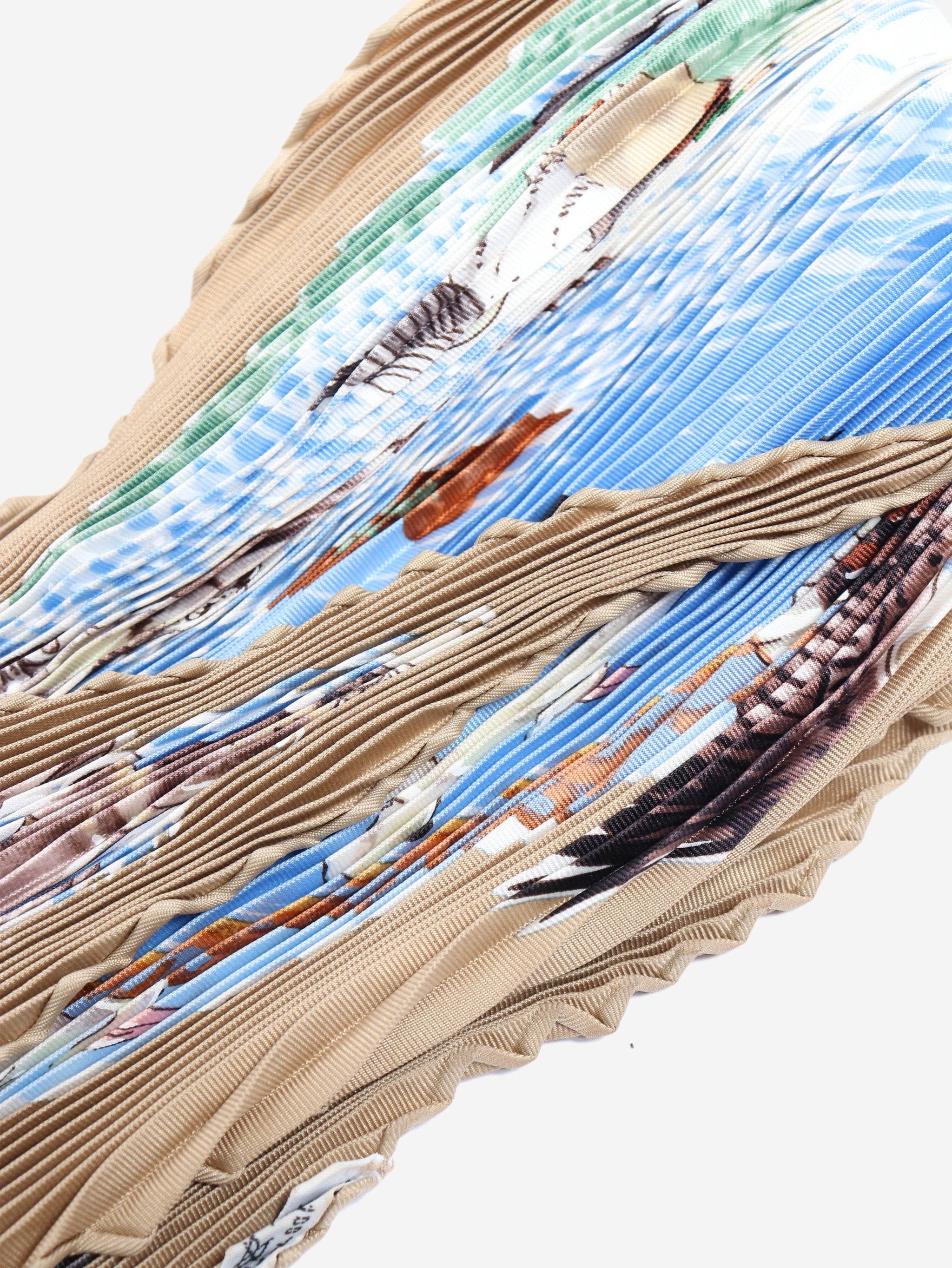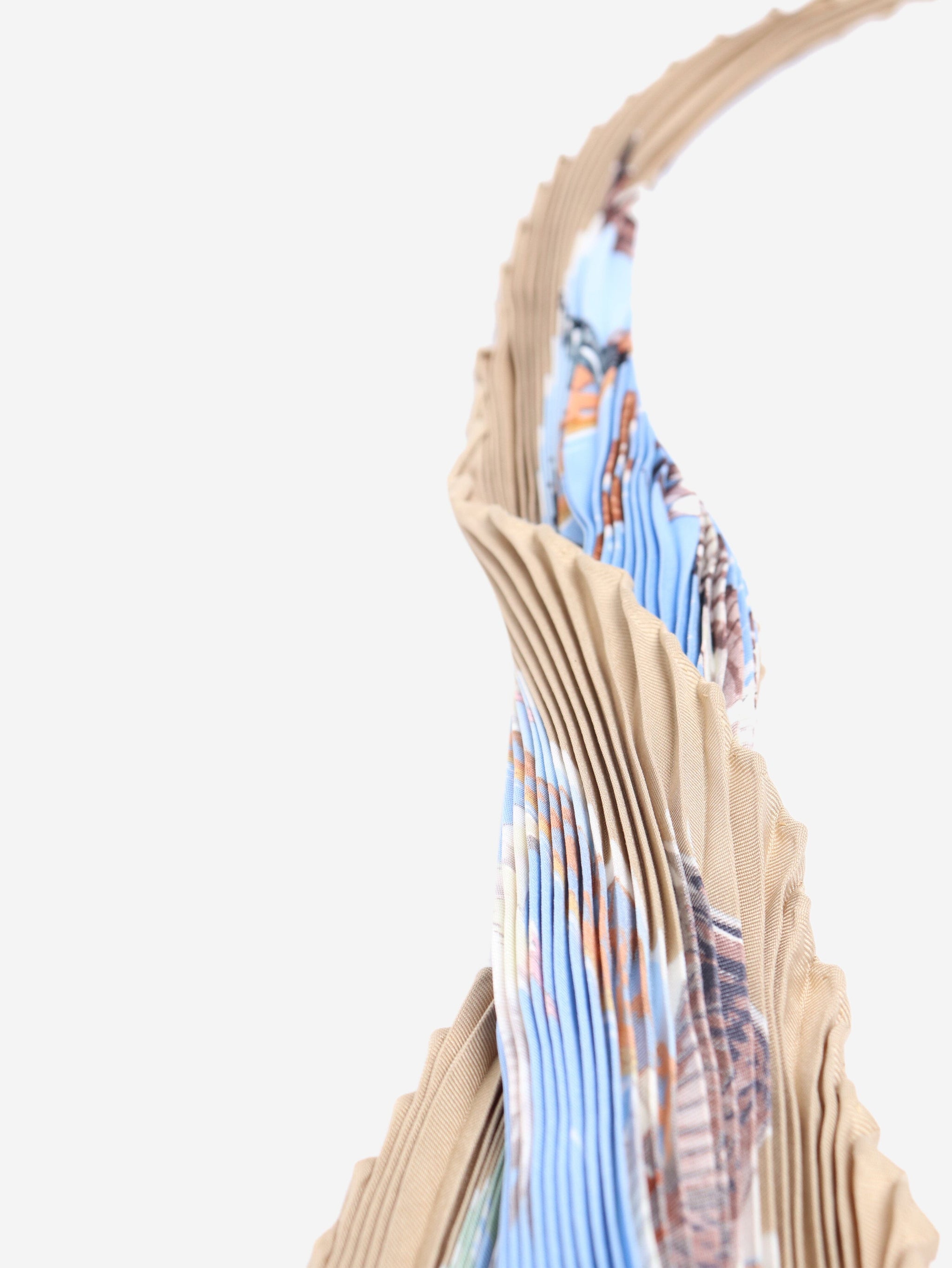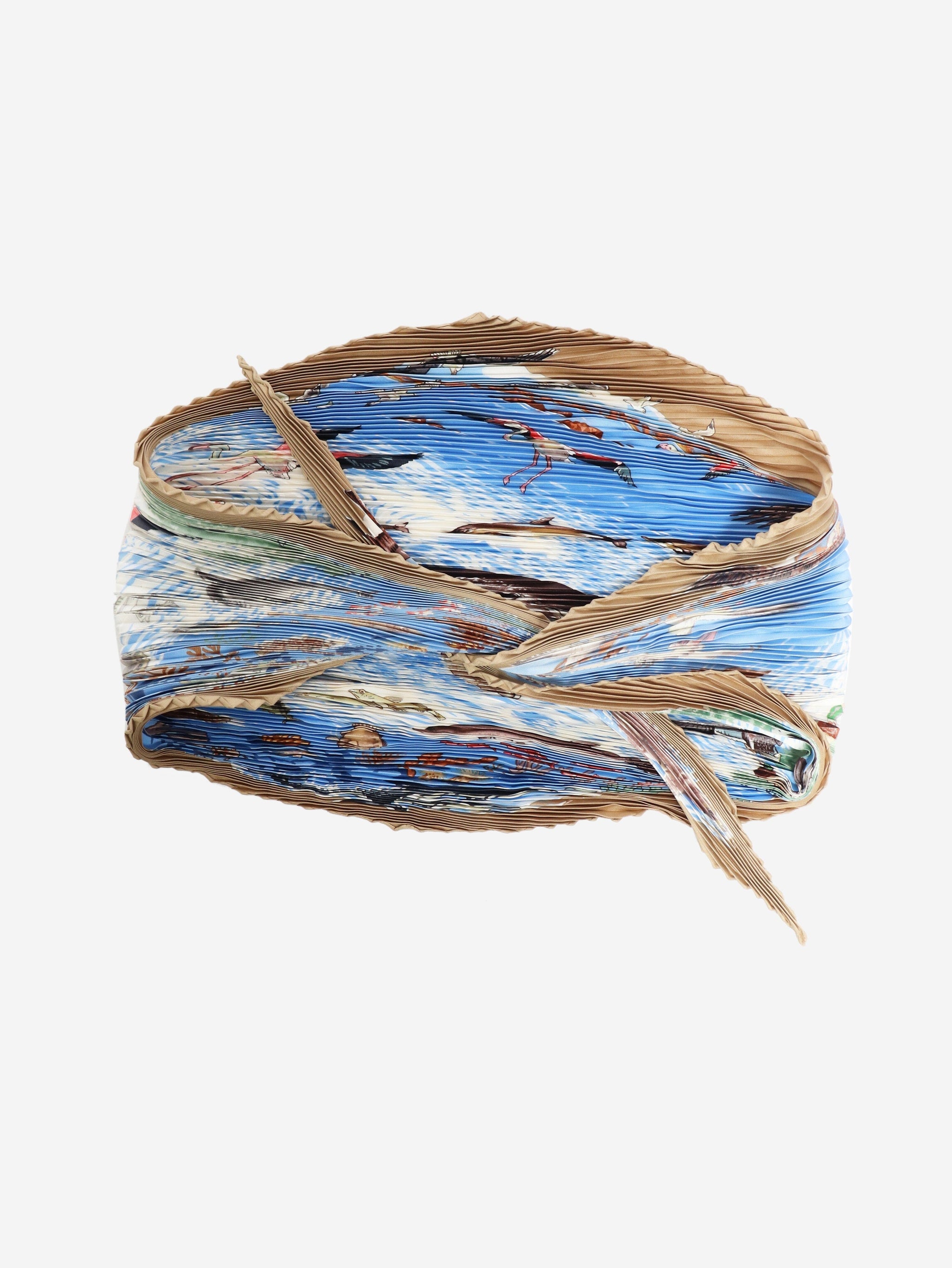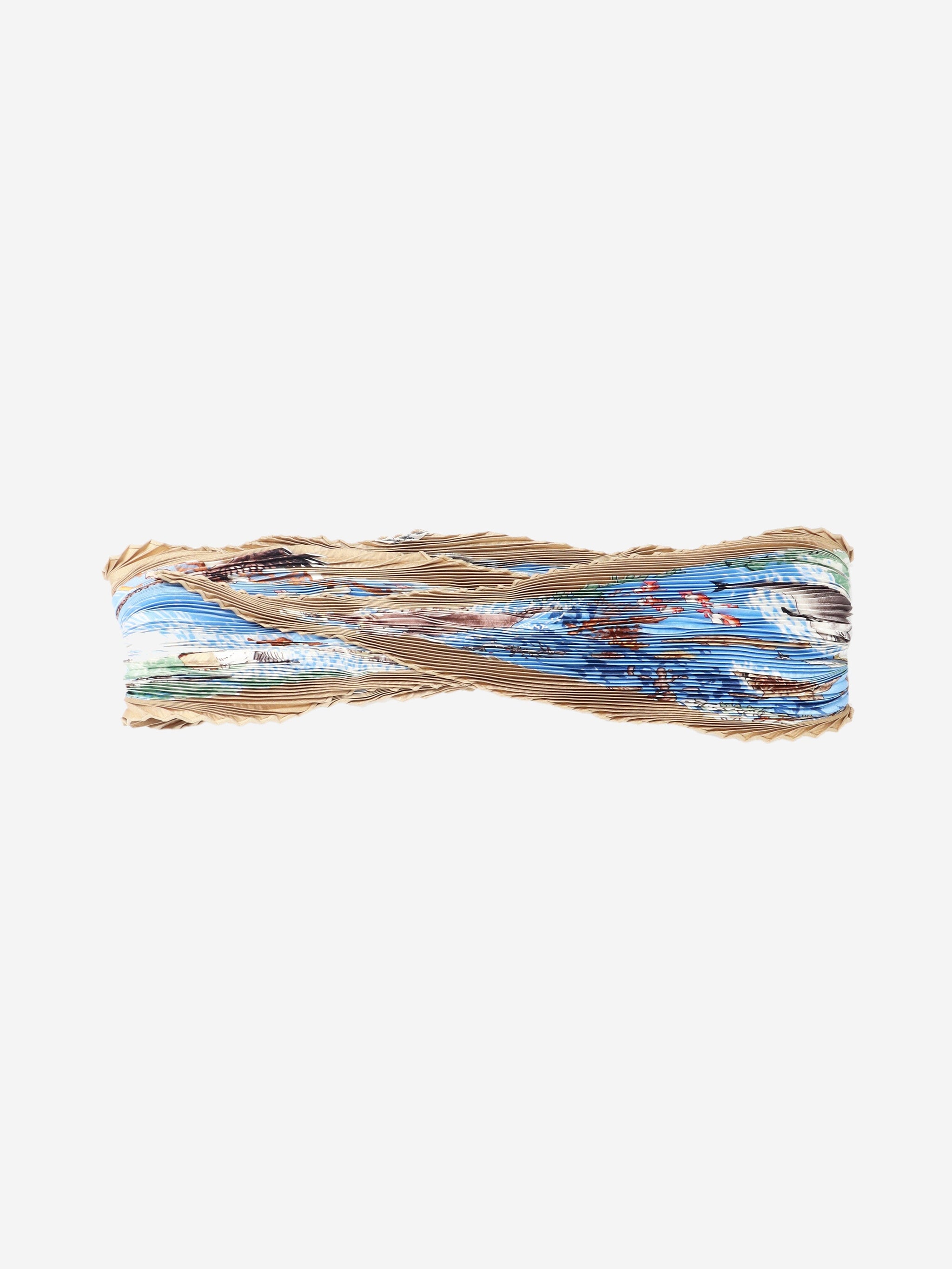 Blue ocean print pleated scarf