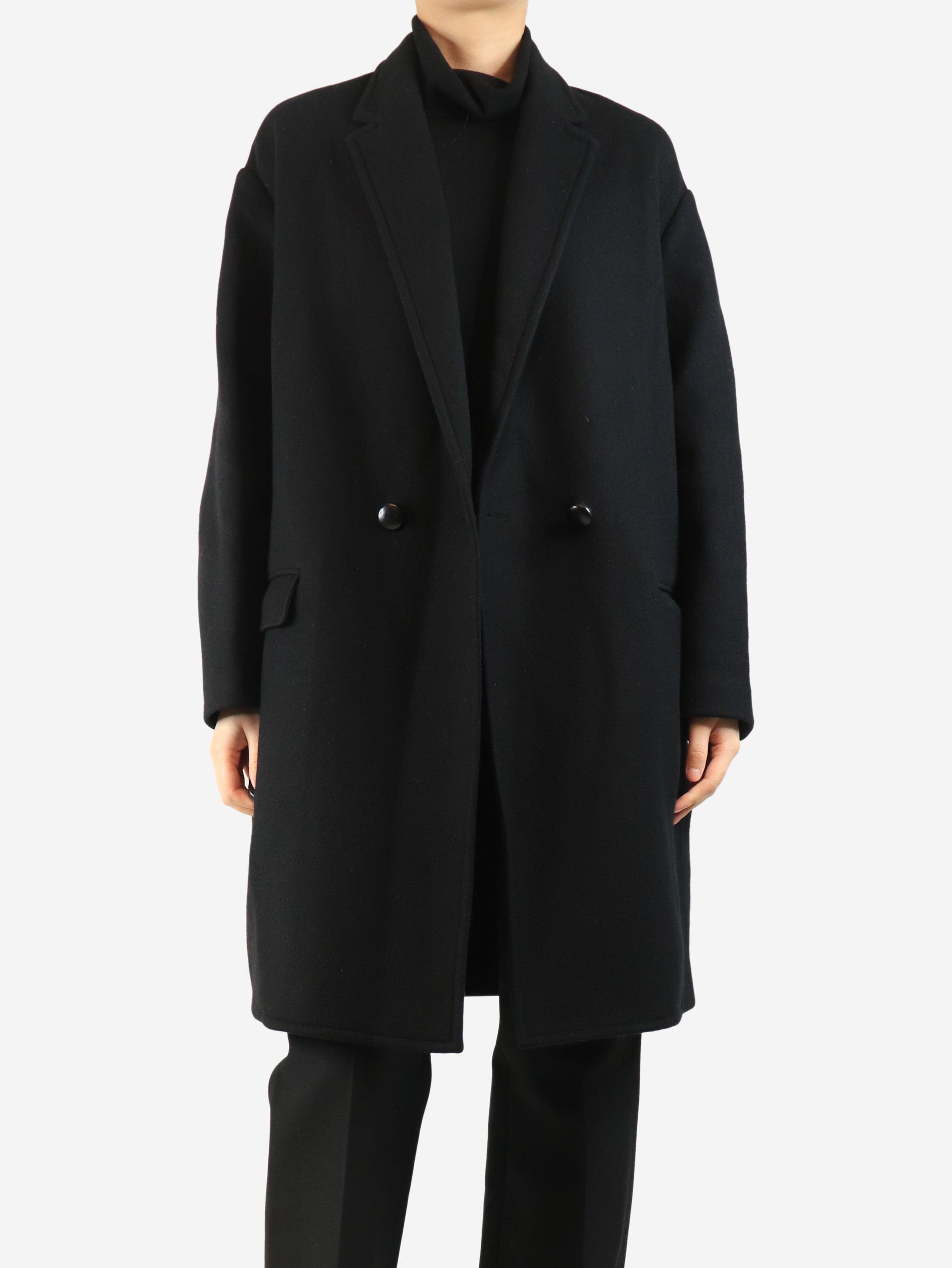 Black double-breasted wool-blend coat - size UK 8
