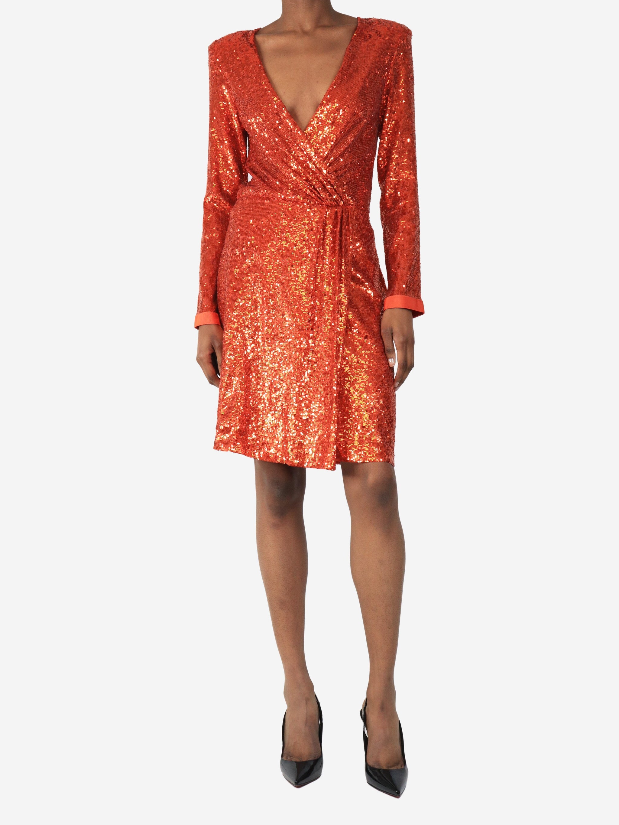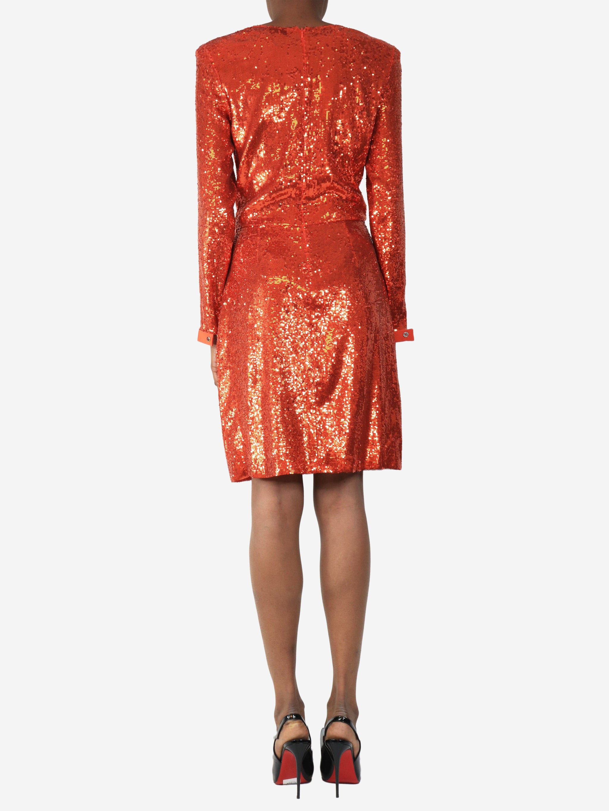 Blood orange sequin midi dress - size UK 8