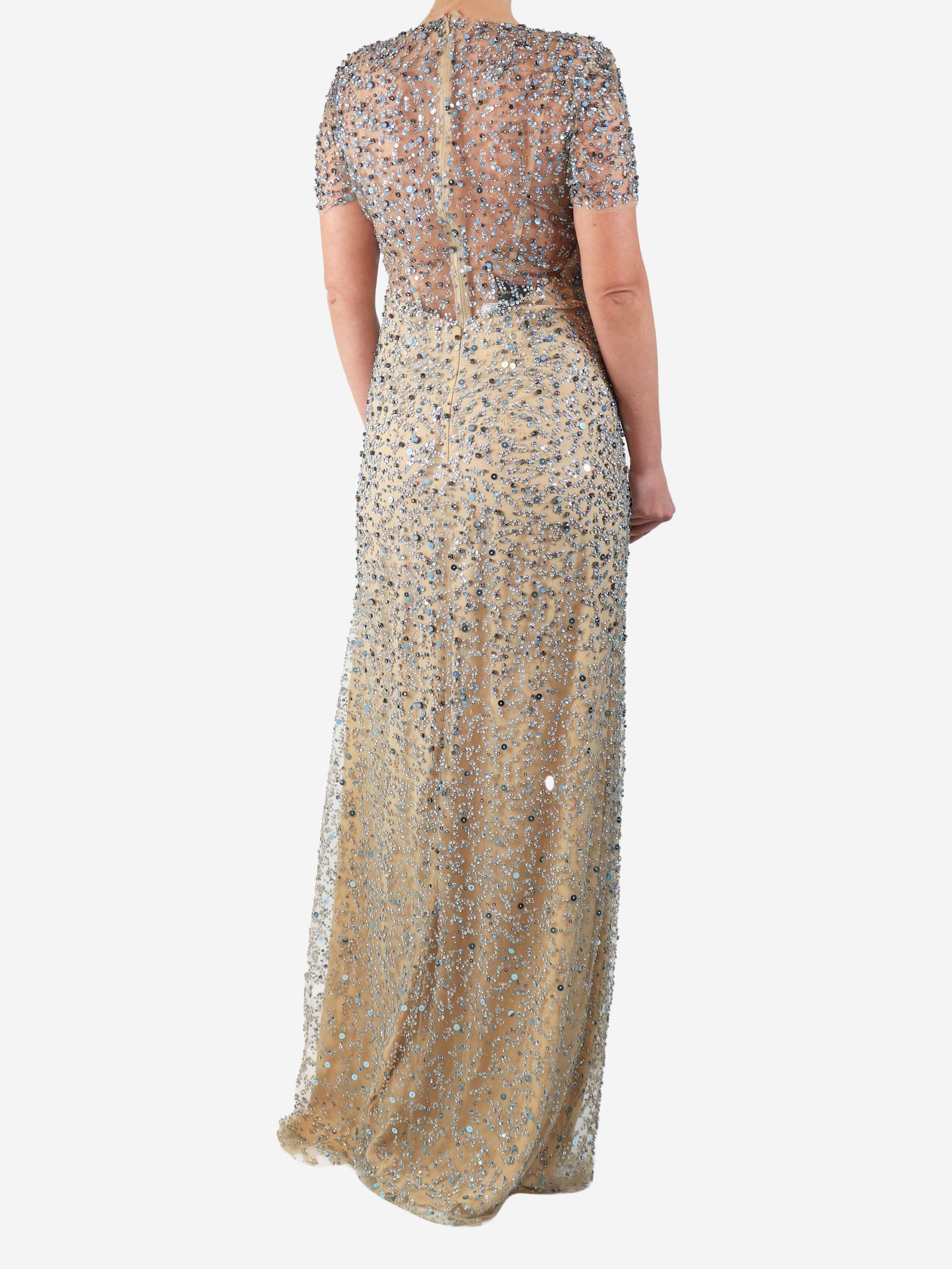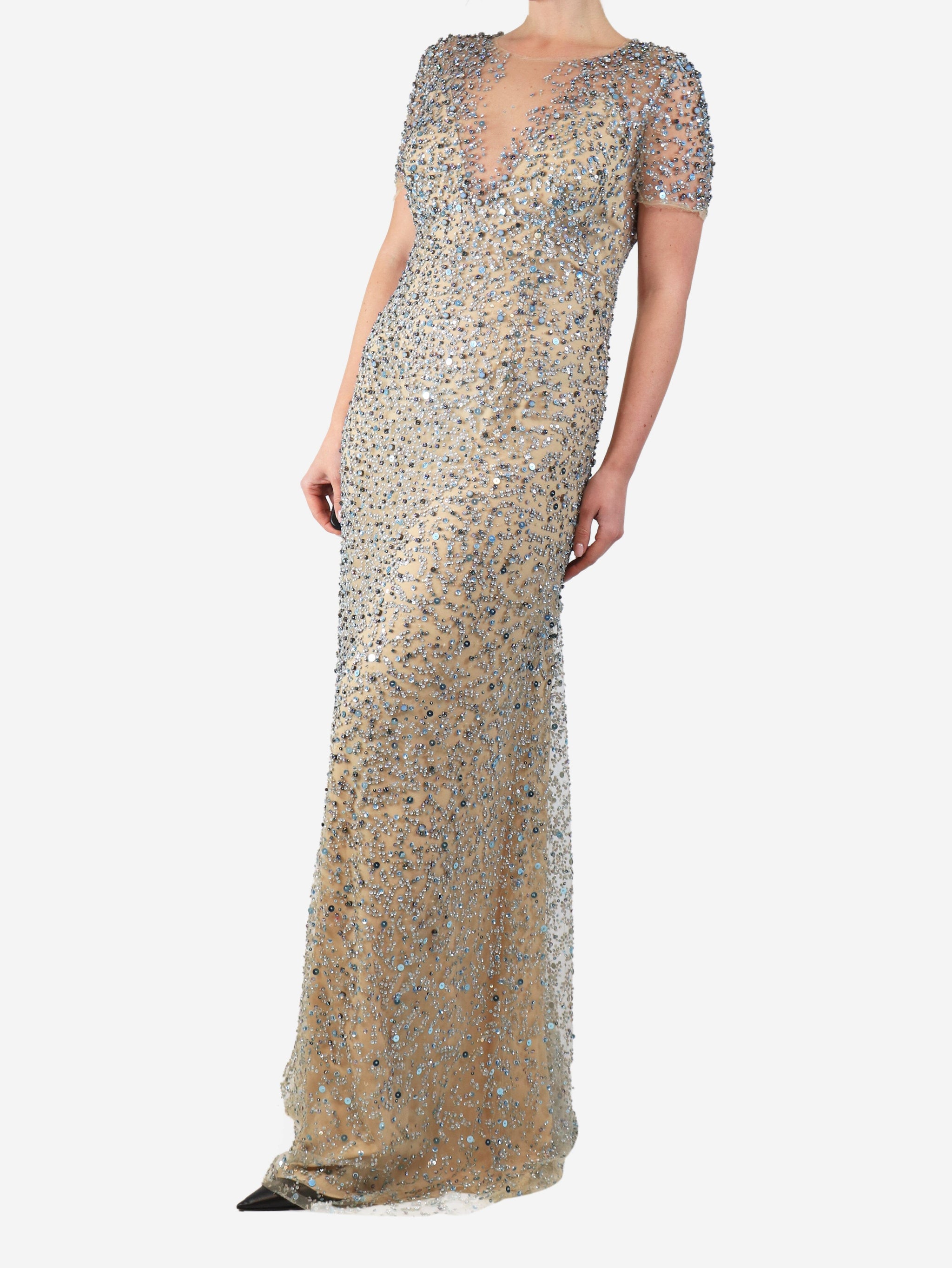 Blue and neutral mesh sequin gown - size UK 14