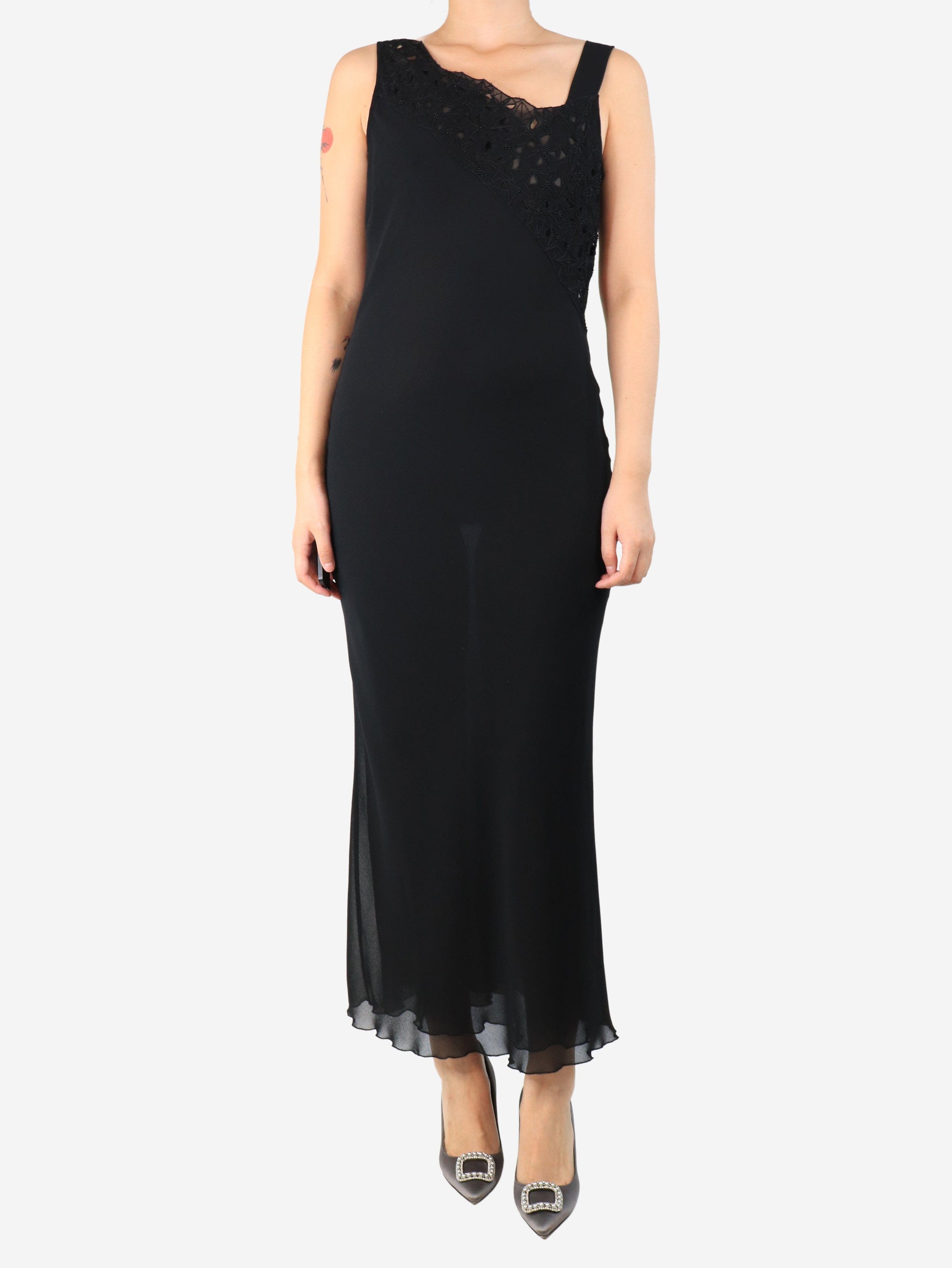 Black beaded midi dress - size UK 12