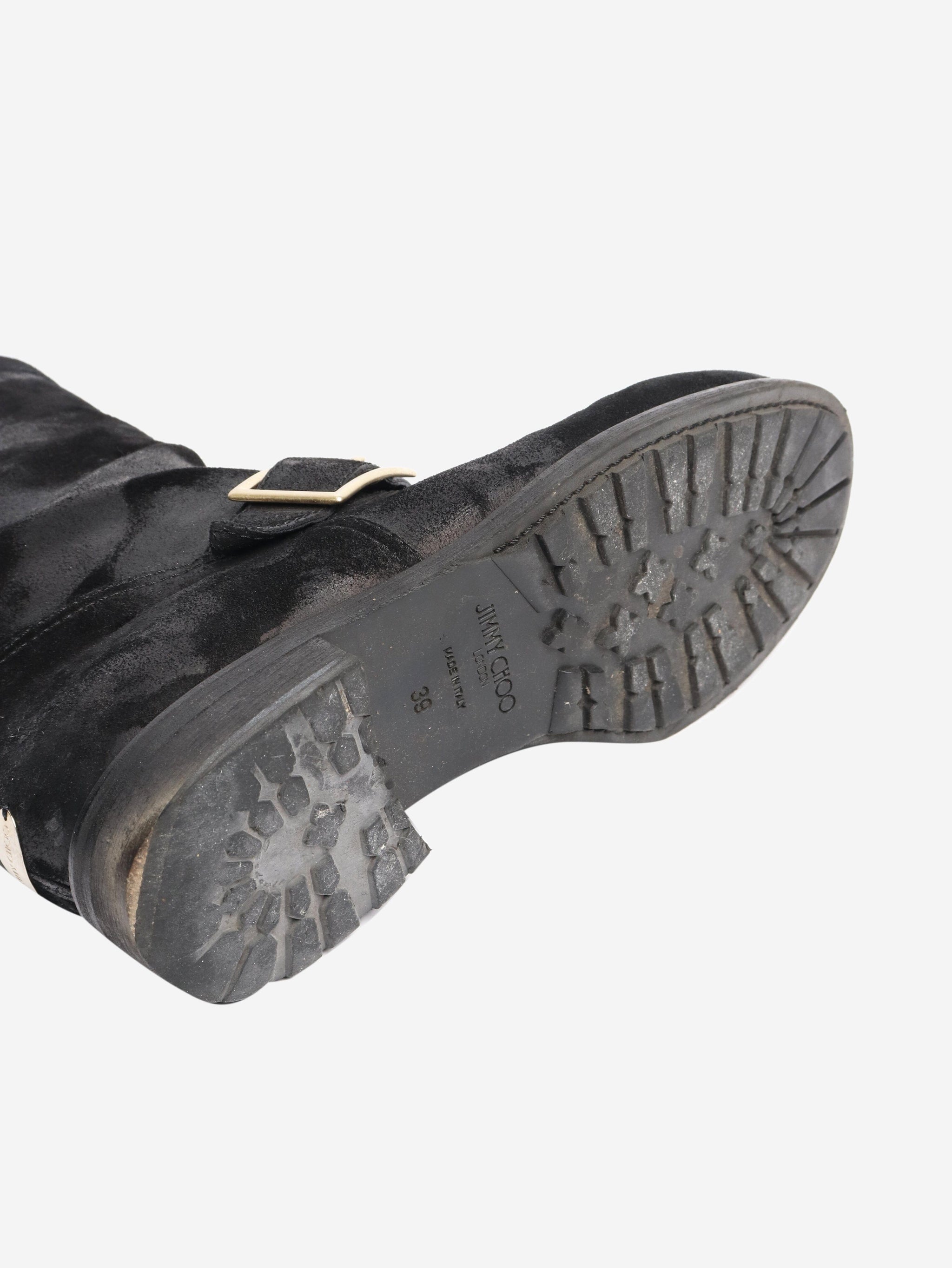Black distressed effect suede boots - size EU 39 (UK 6)