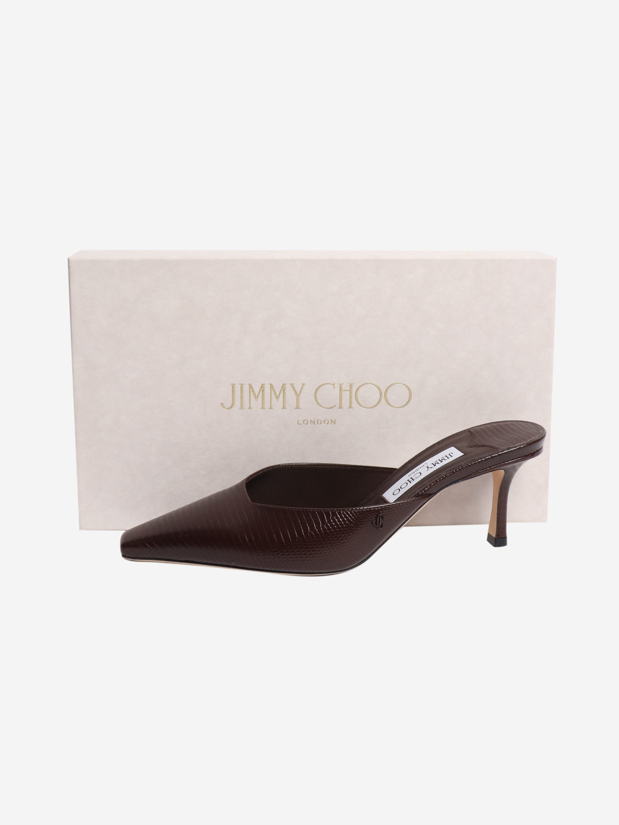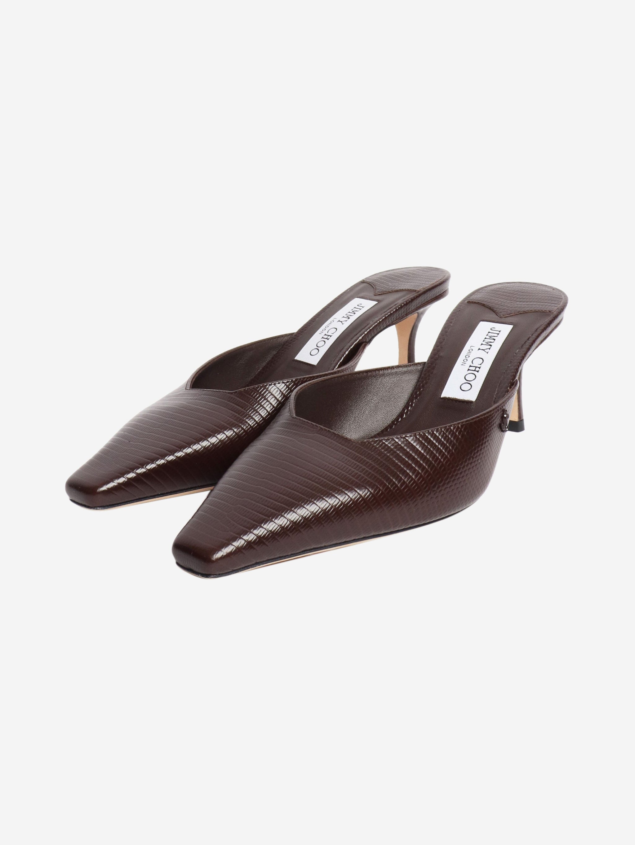 Brown Vivi lizard-embossed leather mules - size EU 39.5