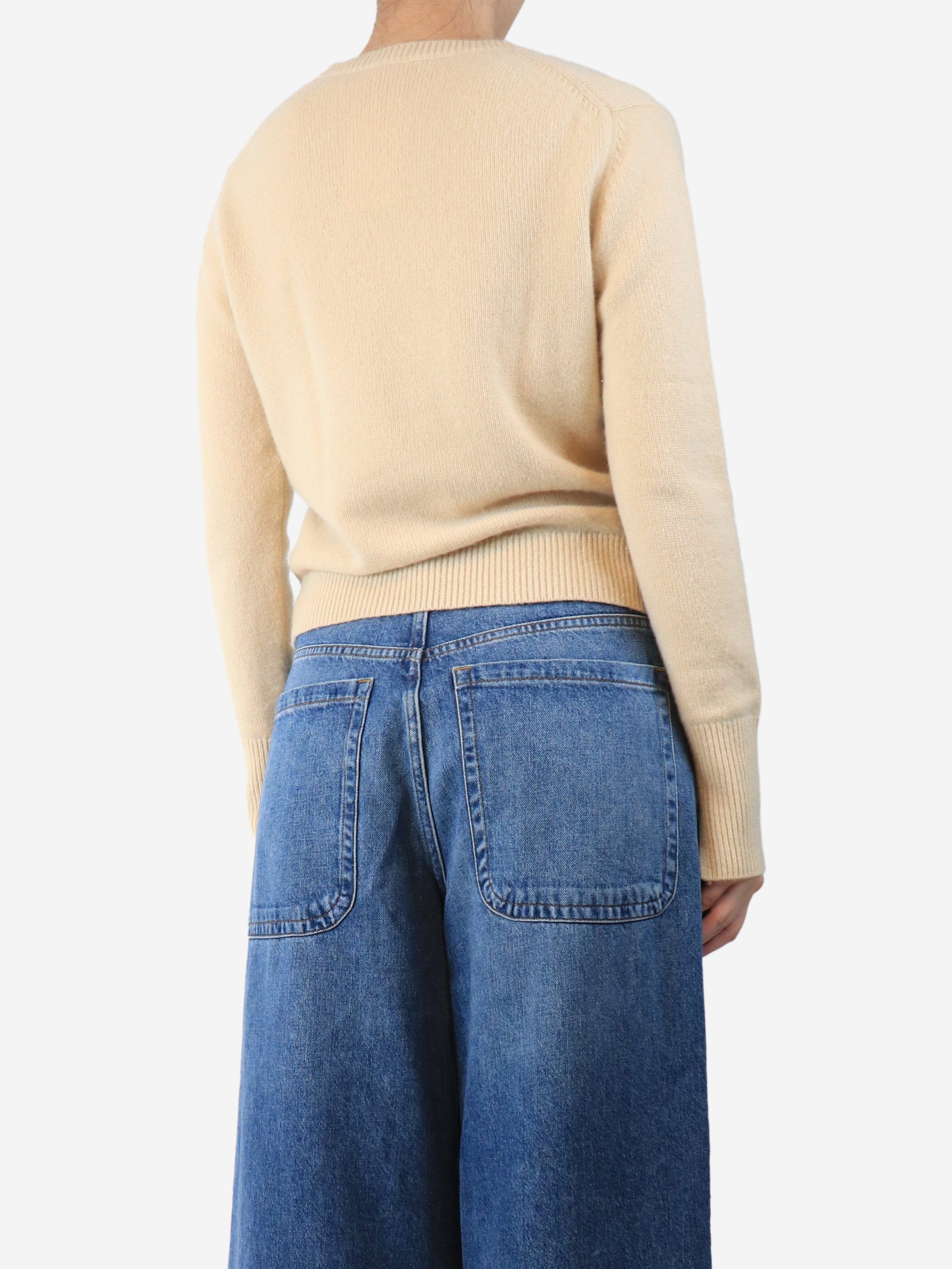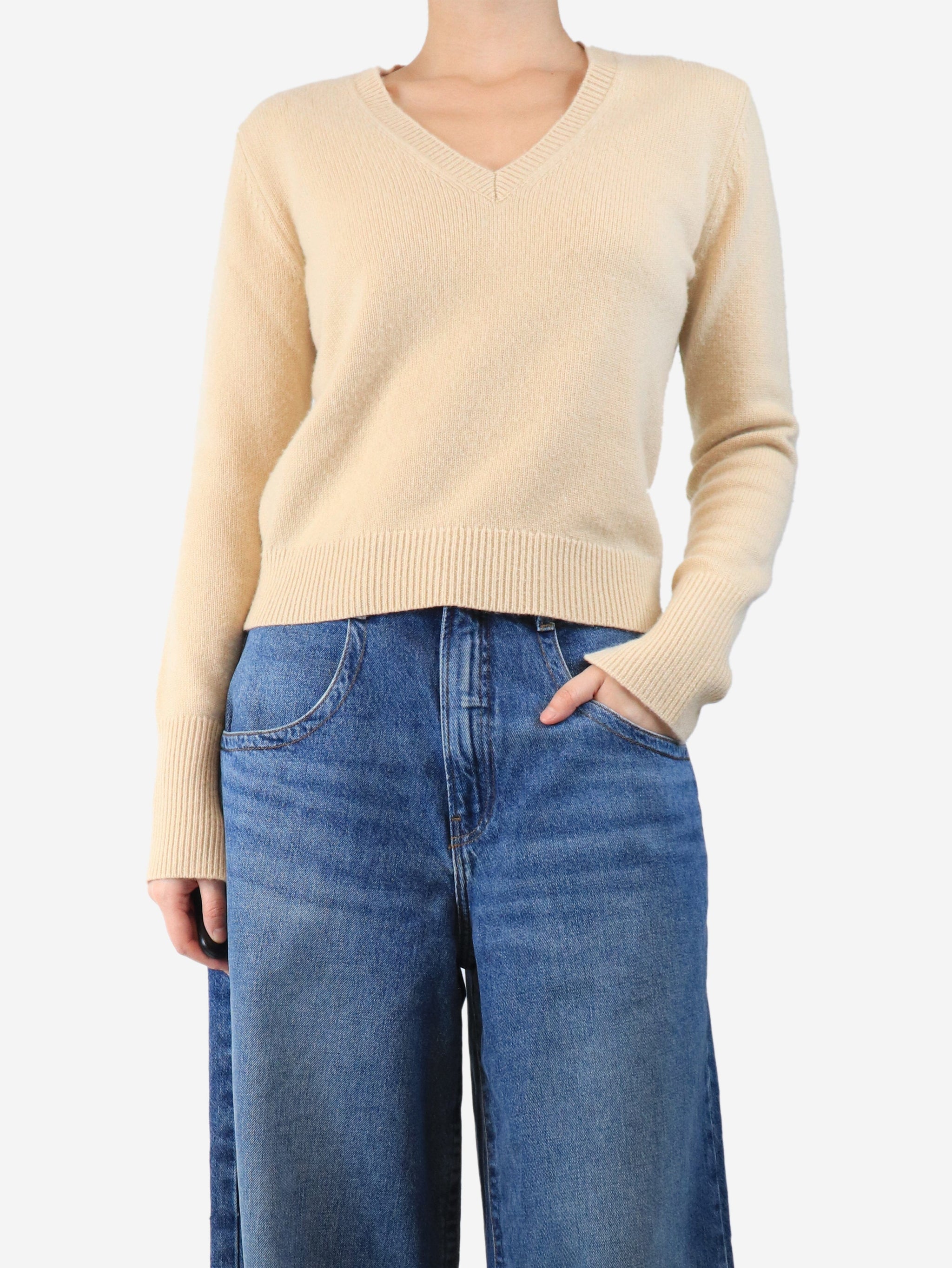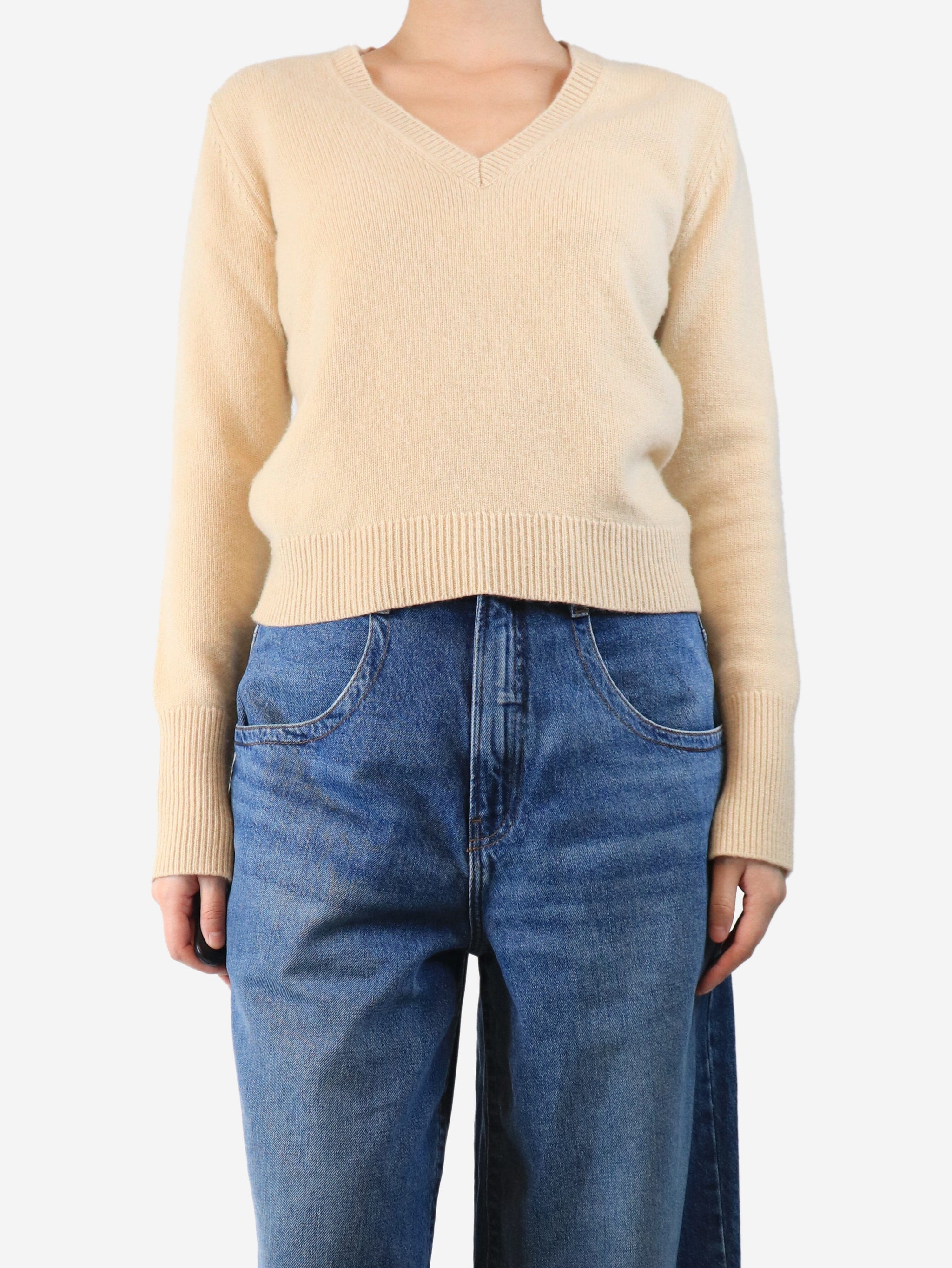 Beige cashmere v-neck jumper - size M